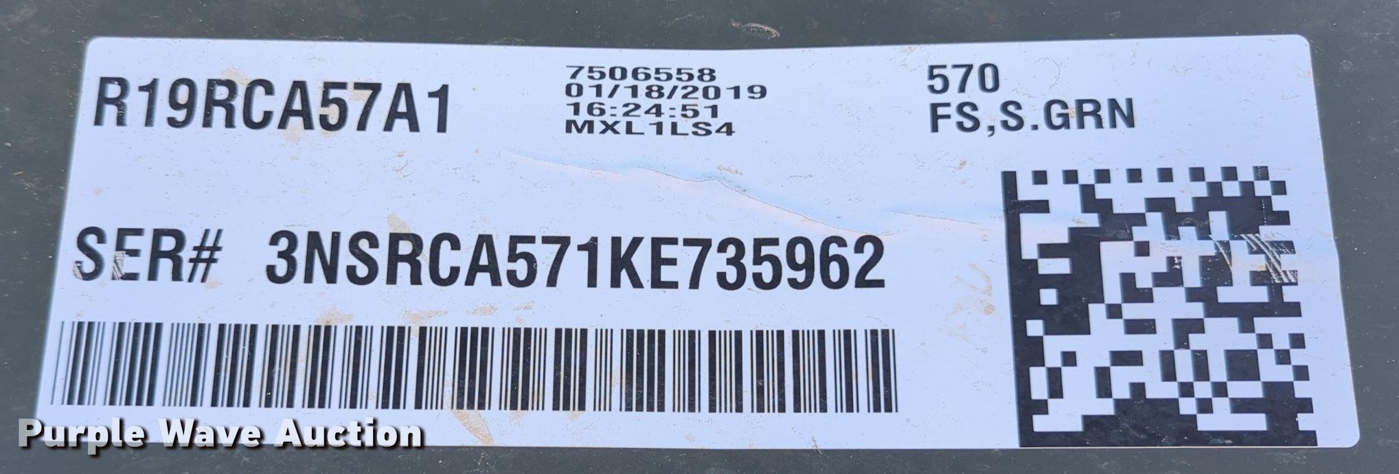 Purple Wave is selling a used Utility Vehicle in Oklahoma. This item is a 2019 Polaris Ranger 570 utility vehicle with the following: Miles: 1,940 on odometer, Hours: 542 on meter, VIN: 3NSRCA571KE735962