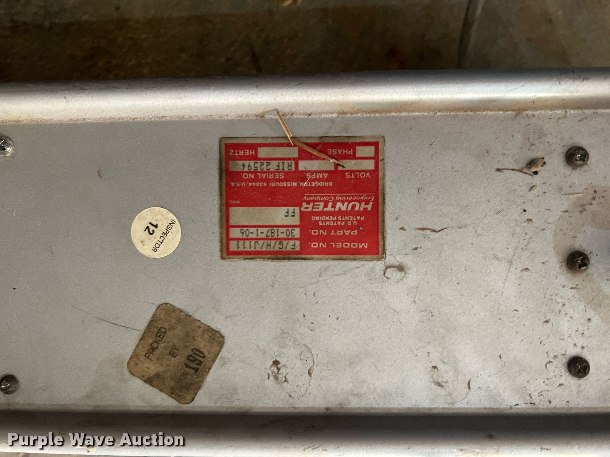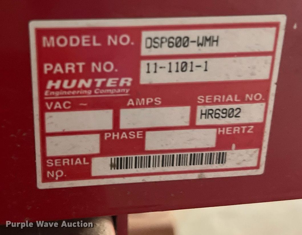 Hunter DSP600 alignment Machine. Serial: HR6902, S811 system stand 120 volts, 3.5 amps, Single Phase, Serial: HR9152, Software, HP6940 printer, Acer Monitor. Notes Non-operational computer power button. Dempsey Farms. Middletown, MO 63359