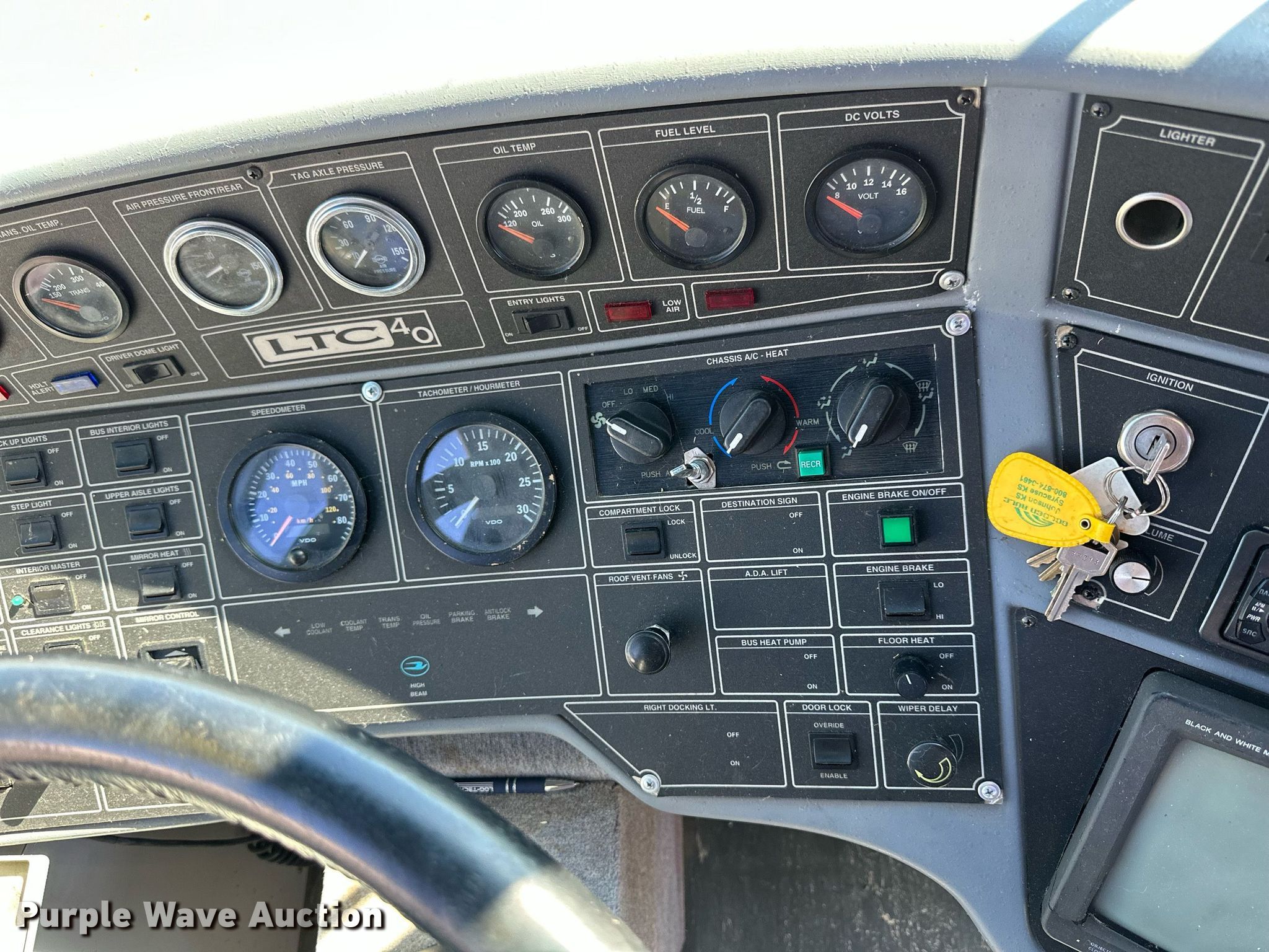 2000 Blue Bird LTC 40 coach bus. Miles: 180,855 on odometer, VIN: 1BAGNBJA5YF099436. Engine Cummins ISM, Serial: 35011224, Displacement: 11.0L, Cylinders: 6, Fuel type: Diesel. Transmission Allison, Automatic. Chassis Axles: Tandem, Suspension: Air, Brakes: Air, GVWR: 48,600 lbs. Interior AC, Heat, Heated mirrors, Cruise control, Brake controller, Electric passenger sliding door, On-board restroom, Passengers: 49. Tires Size: 315/80R22.5. Kansas title. Title distribution may be delayed up to 14 days from verification of funds. 1035 240th Avenue. Hays, KS 67601