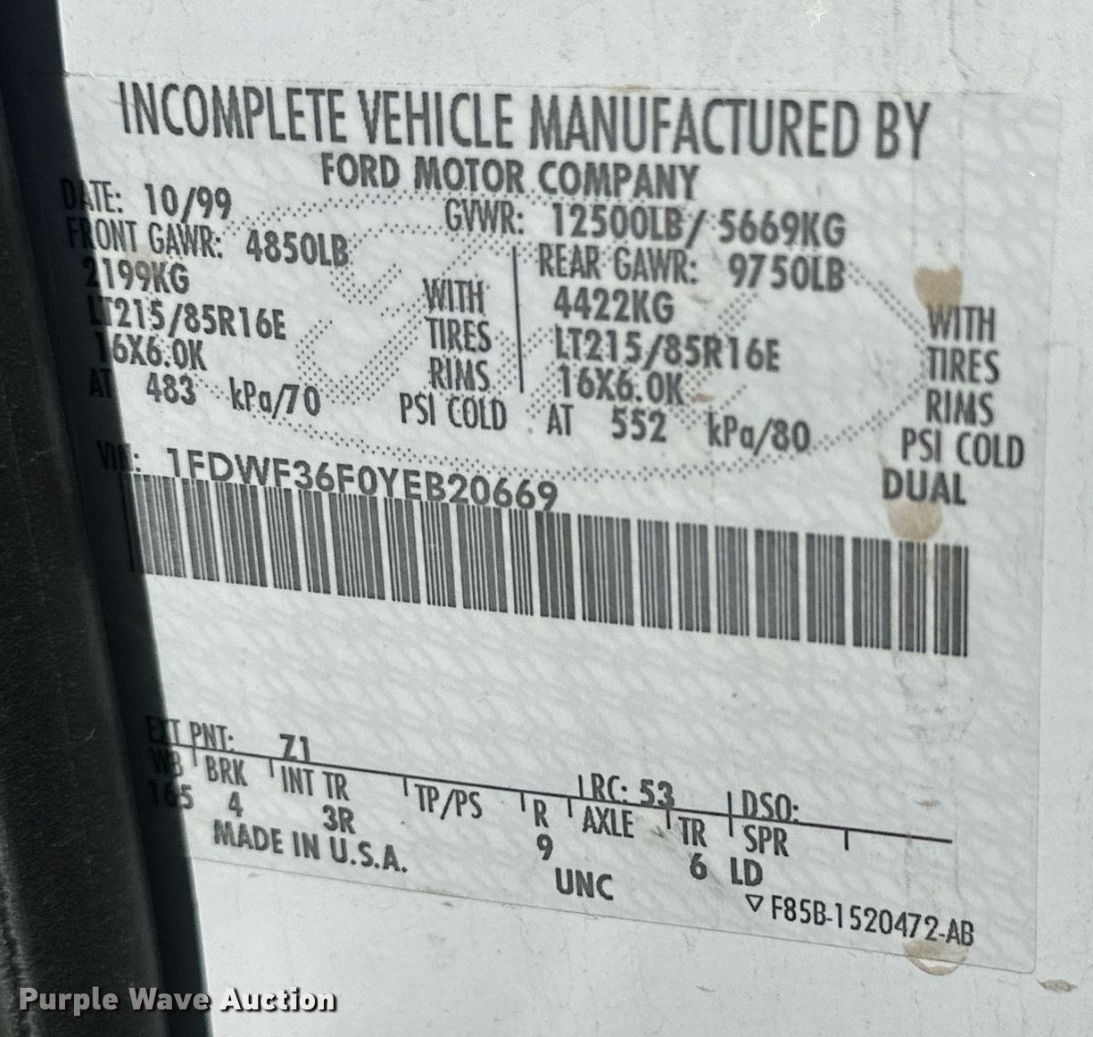 - VIN: 1FDWF36F0YEB20669