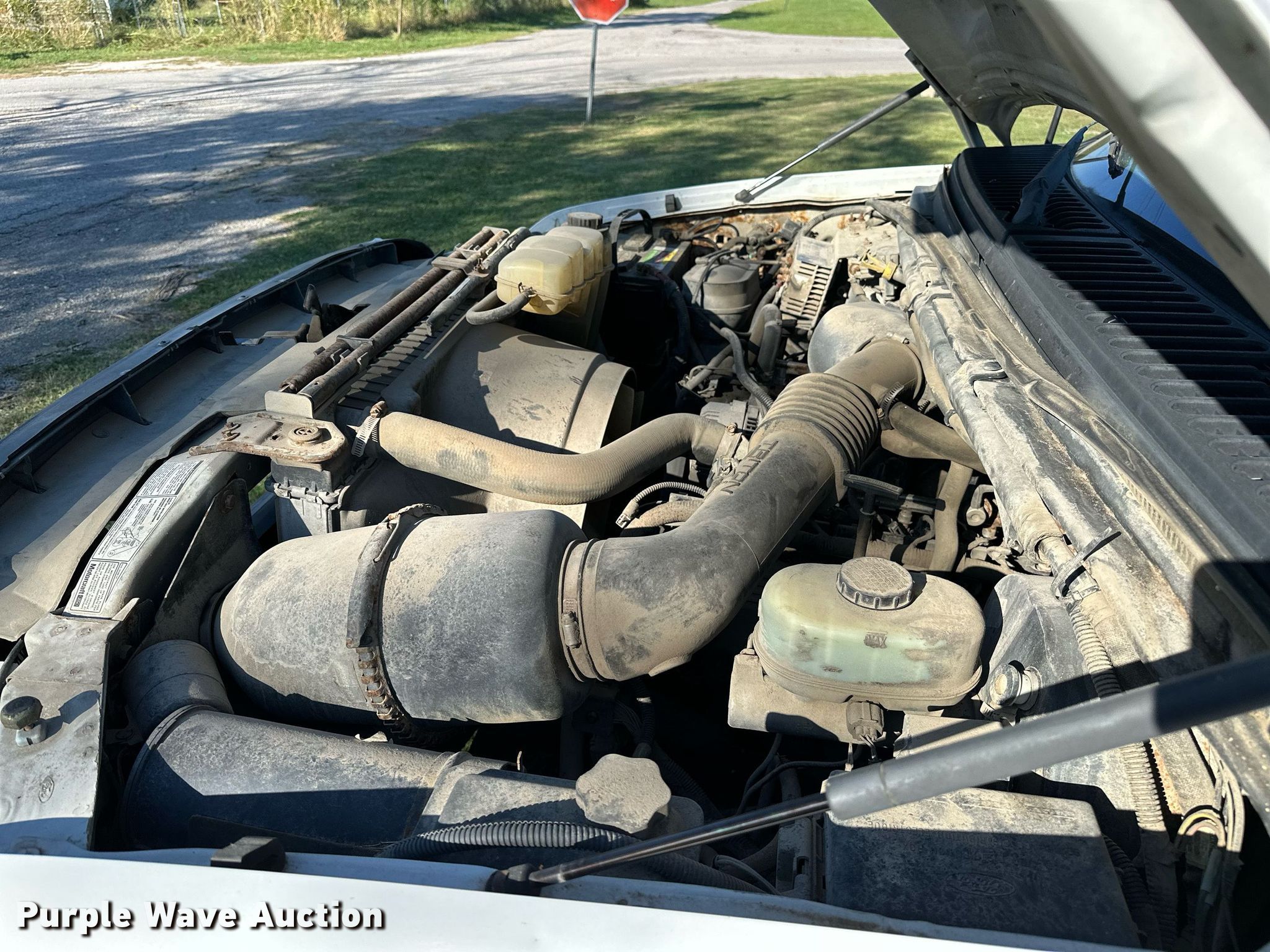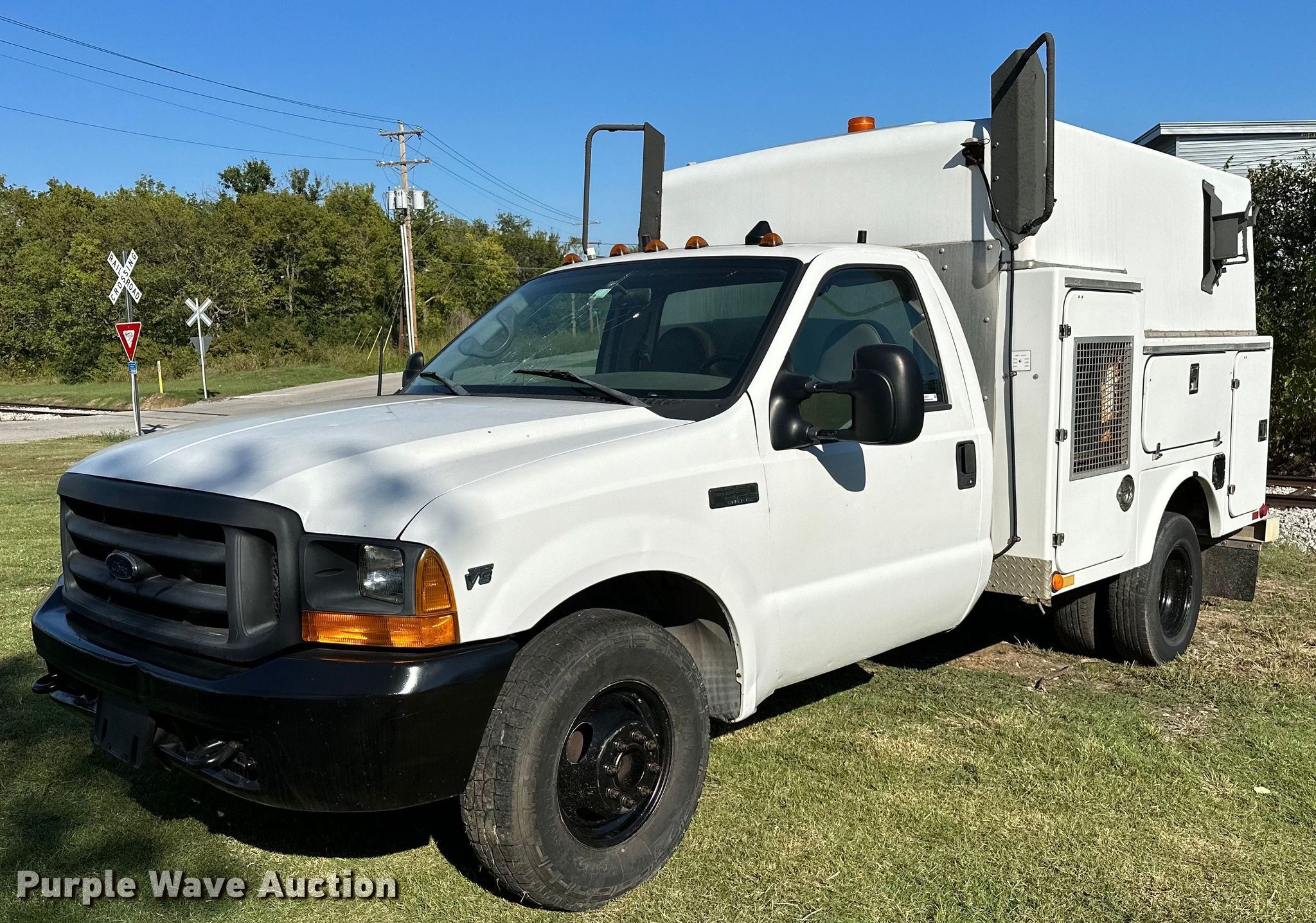 This 2000 Ford F350 Super Duty utility bed pickup truck will sell to the highest bidder regardless of price.