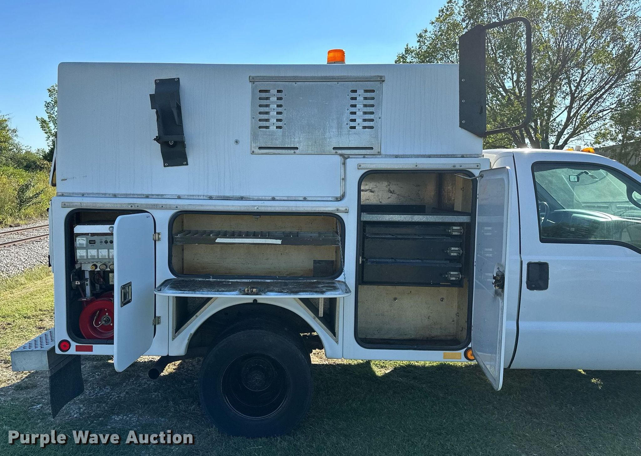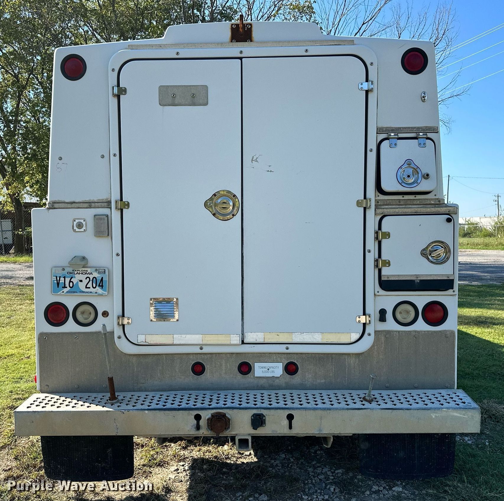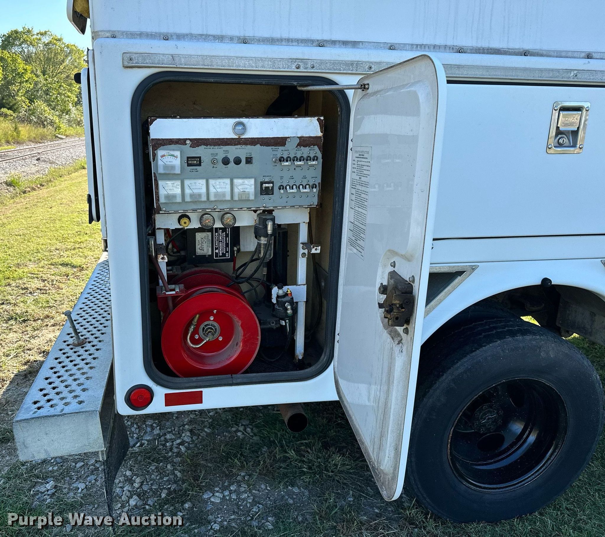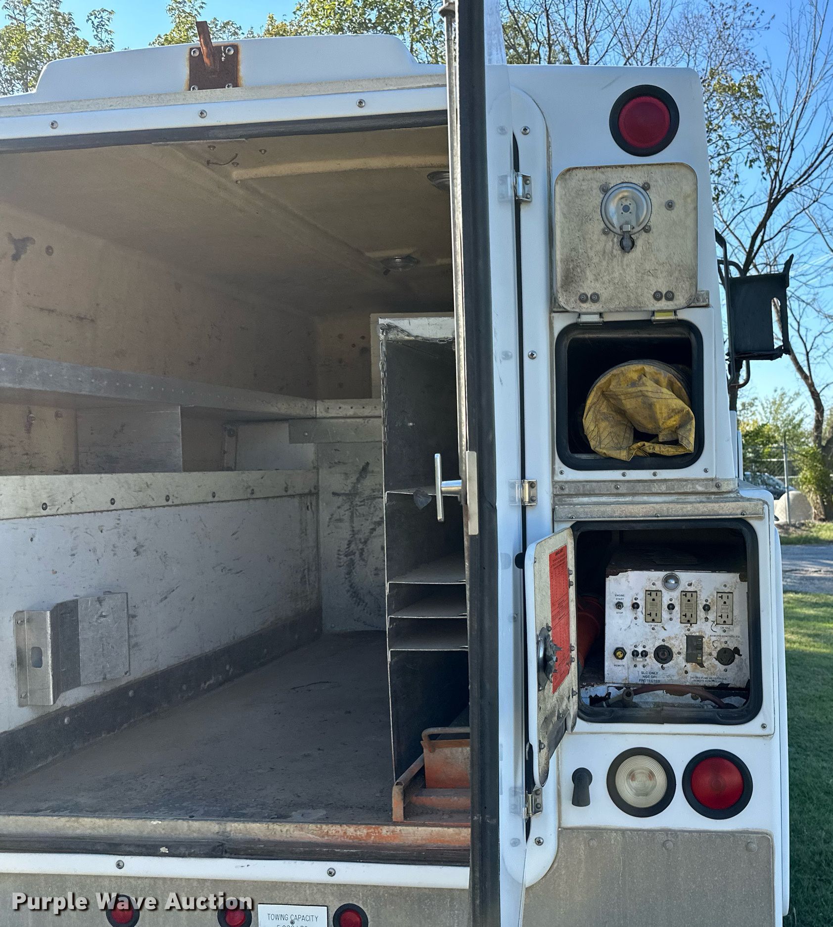 2000 Ford F350 Super Duty utility bed pickup truck. Miles: 173,888 on odometer, VIN: 1FDWF36L2YED75989. Engine Displacement: 5.4L V8 SOHC, Cylinders: 8, Fuel type: Gas. Transmission Automatic. Interior Heat. Features Fenex power unit control center, (2) hoses, (2) hose reels, Blower, Generator Volts: 120/240, Thomas vacuum pump Volts: 115/230, Phase: Single, HP: 1. Tires Front: 235/85R16, Rear: 215/85R16. Notes Windshield chipped or cracked, Hail damage, Dead battery. Oklahoma title. Seller is an Oklahoma licensed motor vehicle dealer. Title will be assigned and distributed by the dealer. Please contact the seller for distribution questions. 4150 W 55th Pl S. Tulsa, OK 74107