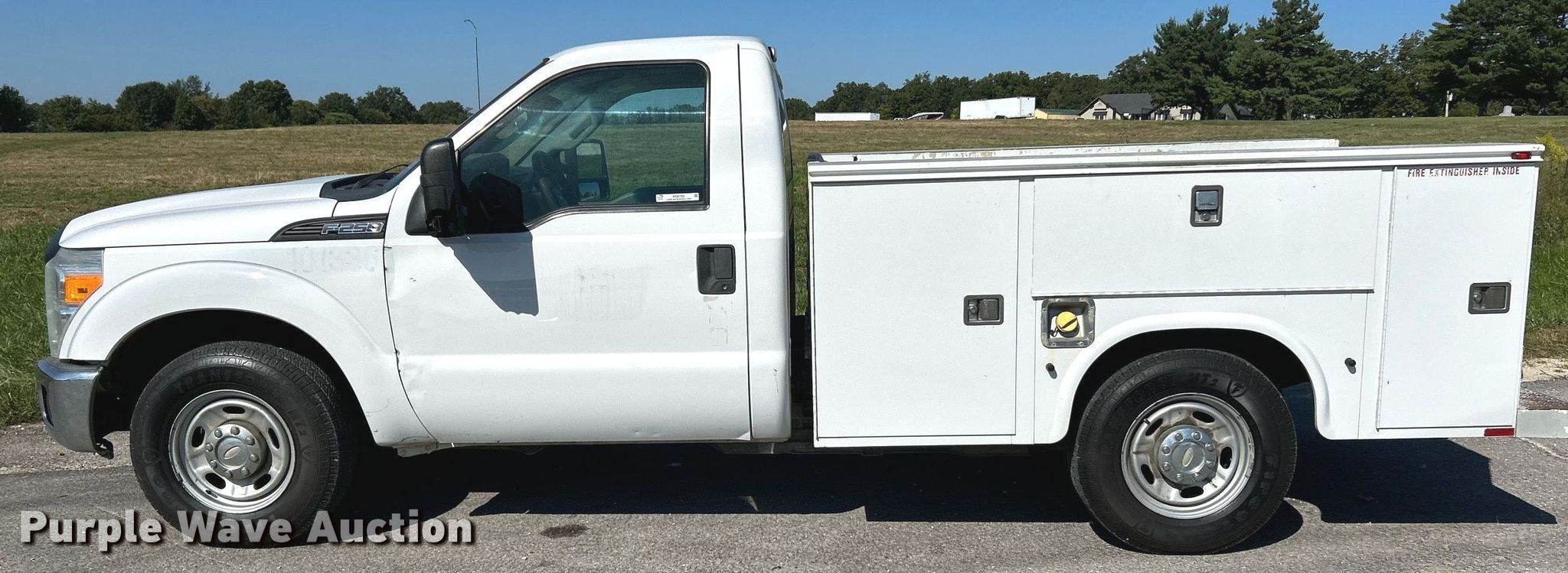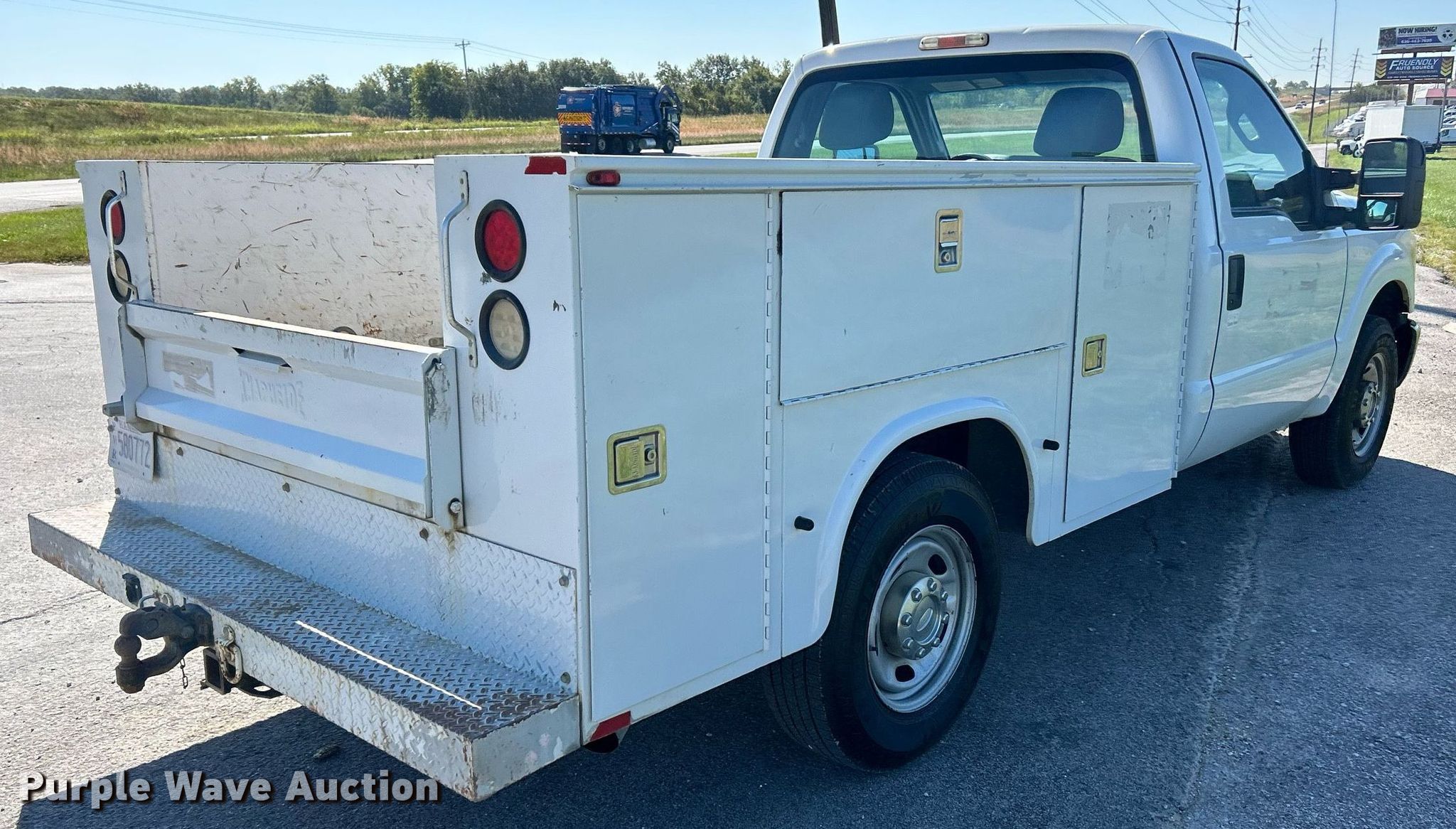 This 2014 Ford F250 Super Duty XL utility bed pickup truck will sell to the highest bidder regardless of price.
