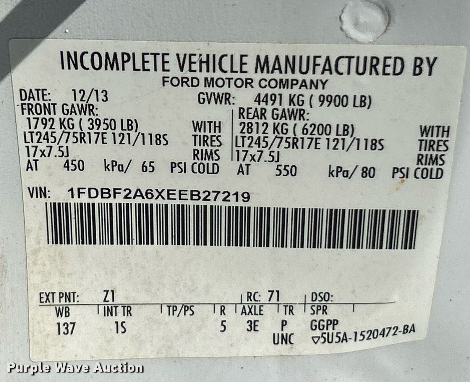 - VIN: 1FDBF2A6XEEB27219