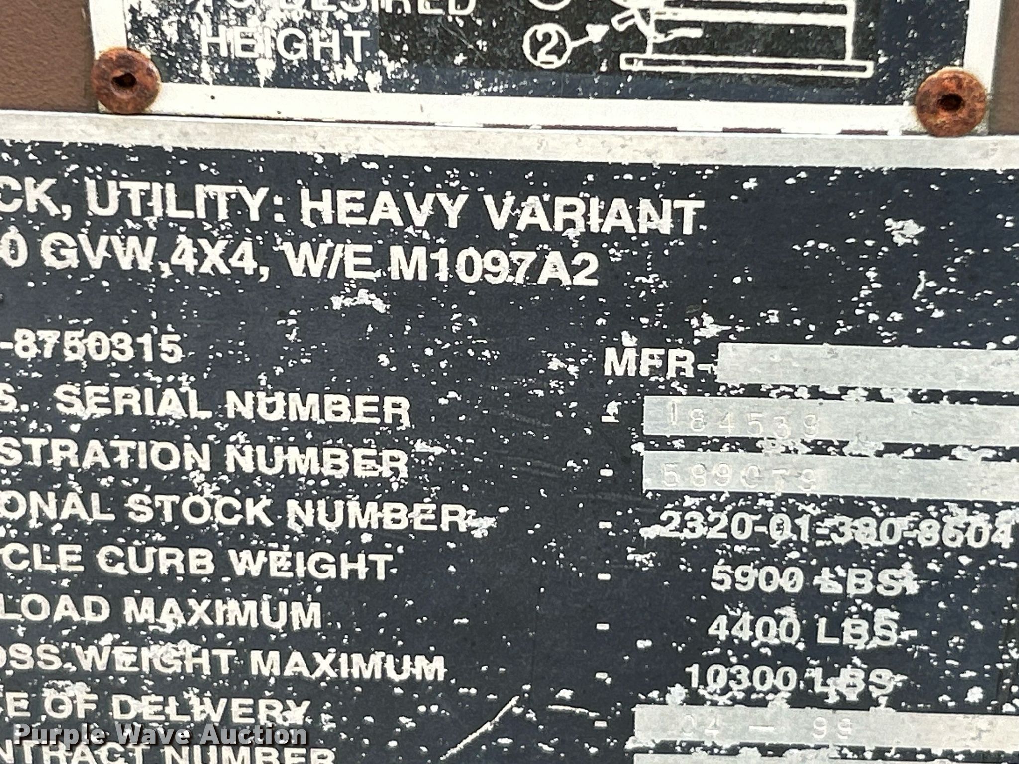 1999 Am General M1097A2 HMMWV SUV | SOLD! October 25 Vehicles and Equipment Auction