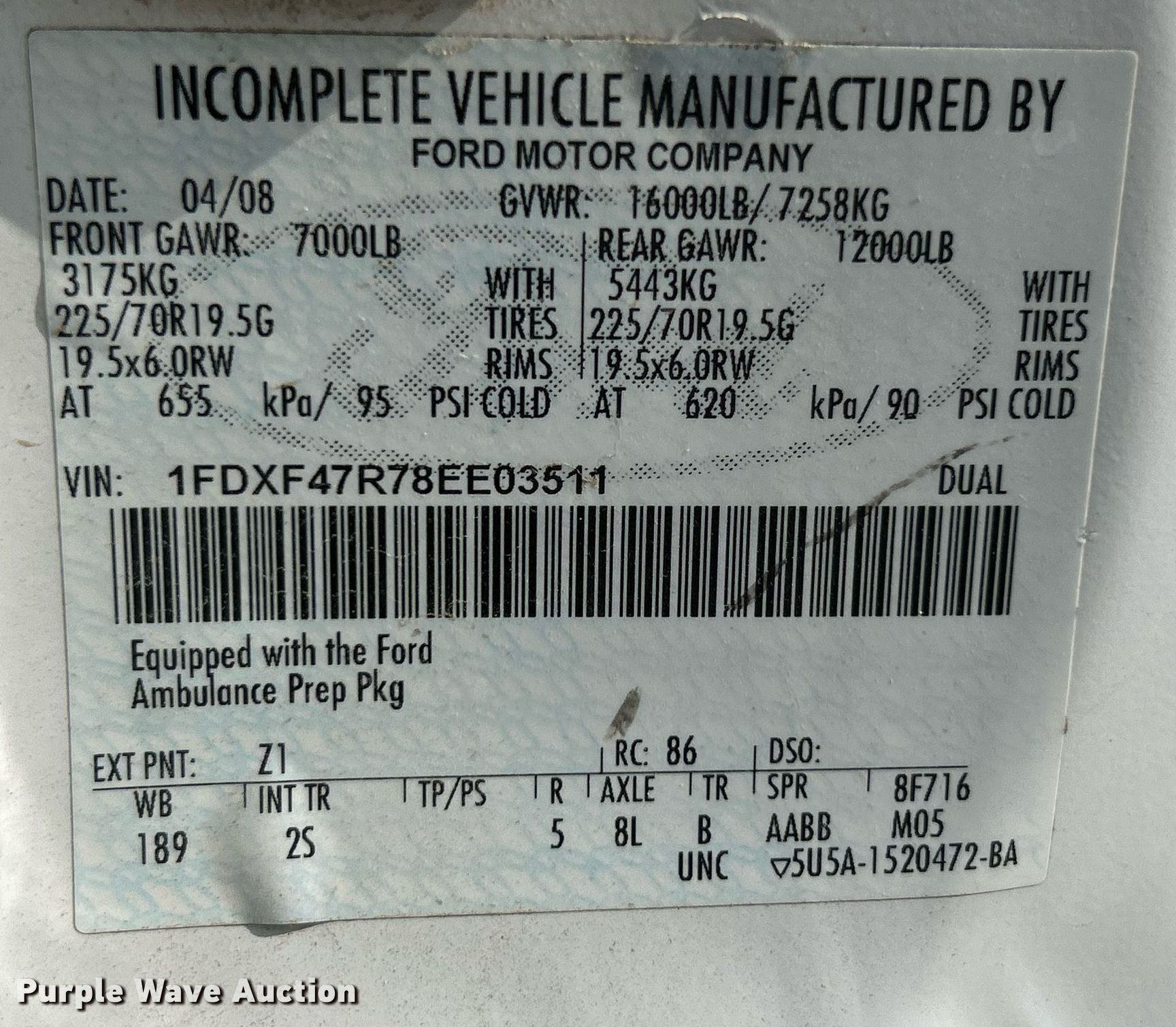 2008 Ford F450 Super Duty XLT flatbed truck. Miles: 115,785 on ECM, Non-operational odometer, VIN: 1FDXF47R78EE03511. Engine Displacement: 6.4L V8 OHV, Cylinders: 8, Fuel type: Diesel. Transmission Automatic, Four wheel drive. Interior AC, Heat, Heated mirrors, Power windows, Power locks, Cruise control. Features Flatbed 11' 4" L x 96" W. Tires Size: 225/70R19.5. Notes Dash warning indicator: Check engine, ABS, Airbag, Windshield chipped or cracked. Missouri title. Mileage has not been verified. Odometer discrepancy will be marked on the title. Title distribution may be delayed up to 14 days from verification of funds. Bluegrass Landscape & Snow Management. Bridgeton, MO 63044