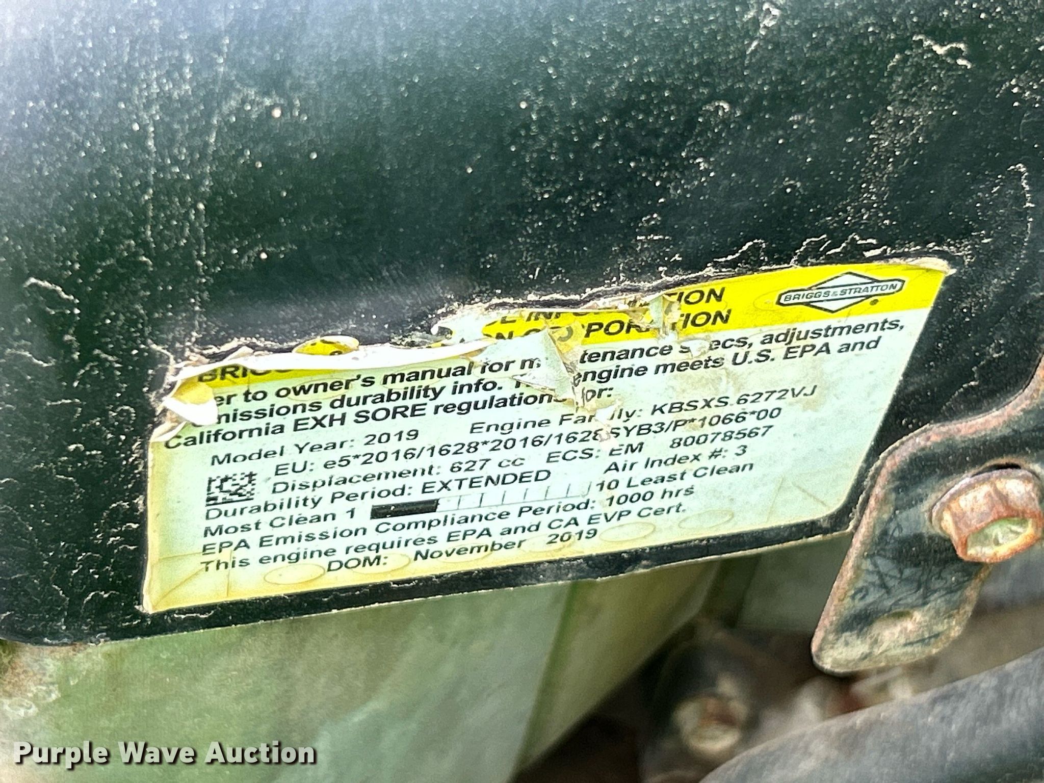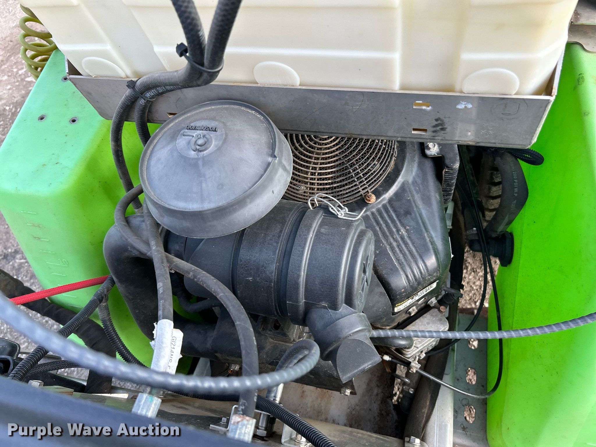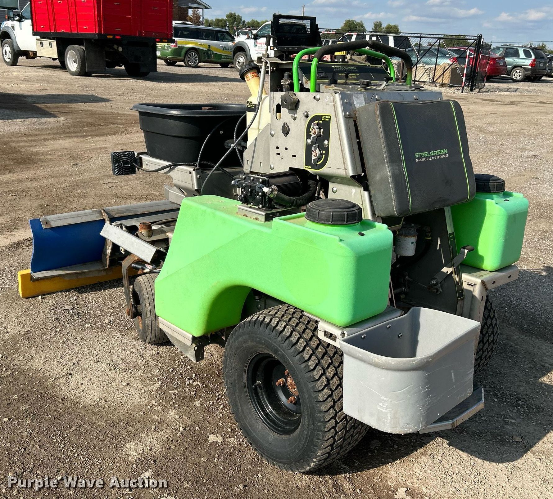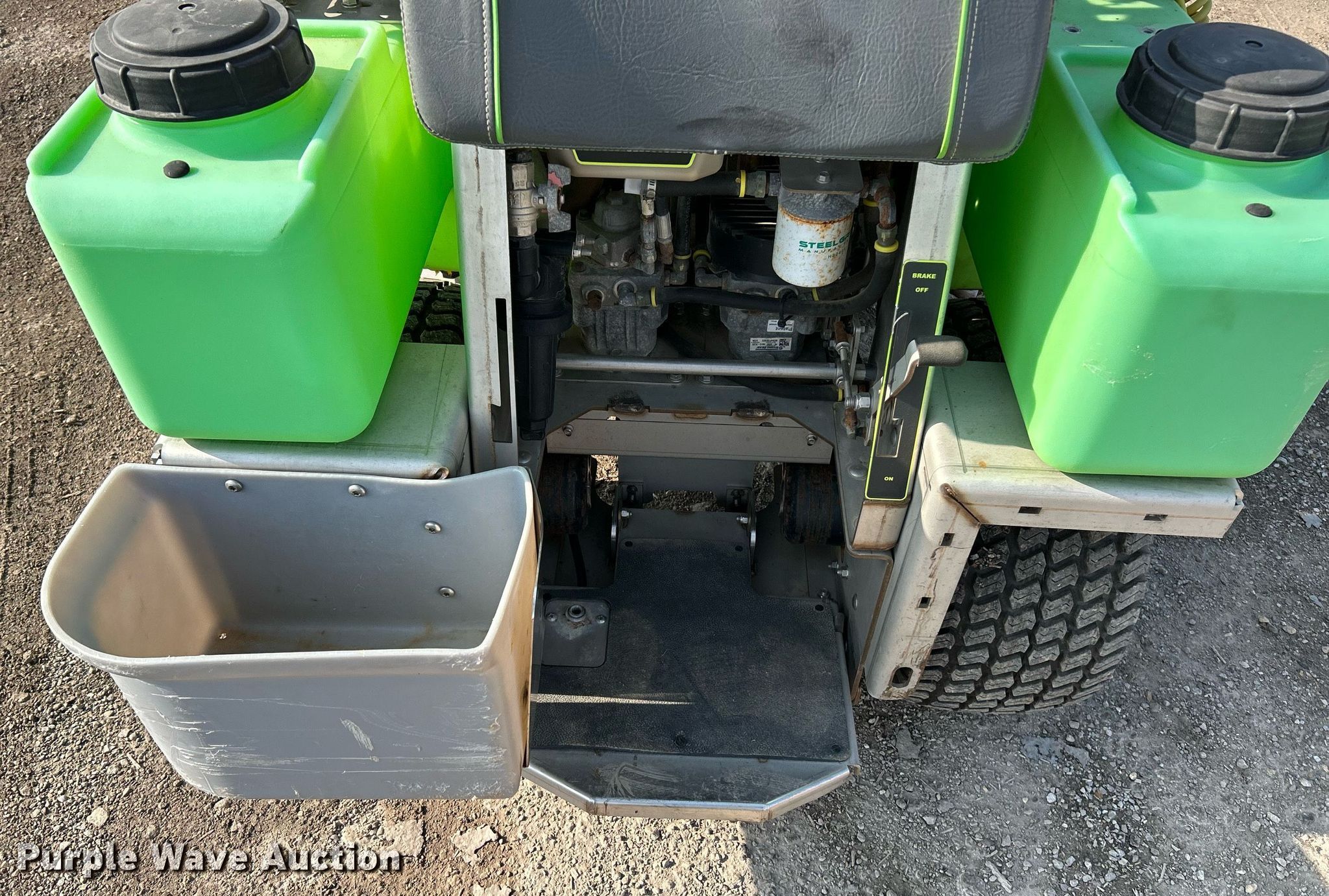 Steel Green SG42 applicator. Hours: 128 on meter, Serial: SG42-20002. Engine Briggs & Stratton , Displacement: 627cc, Cylinders: 1, Fuel type: Gas. Transmission Hydrostatic. Features (2) 15 gal spray tanks, Spreader hopper, 56" snow plow. Tires Front: 13x6.50-6, Rear: 22x11.00-10. Bluegrass Landscape & Snow Management. Bridgeton, MO 63044