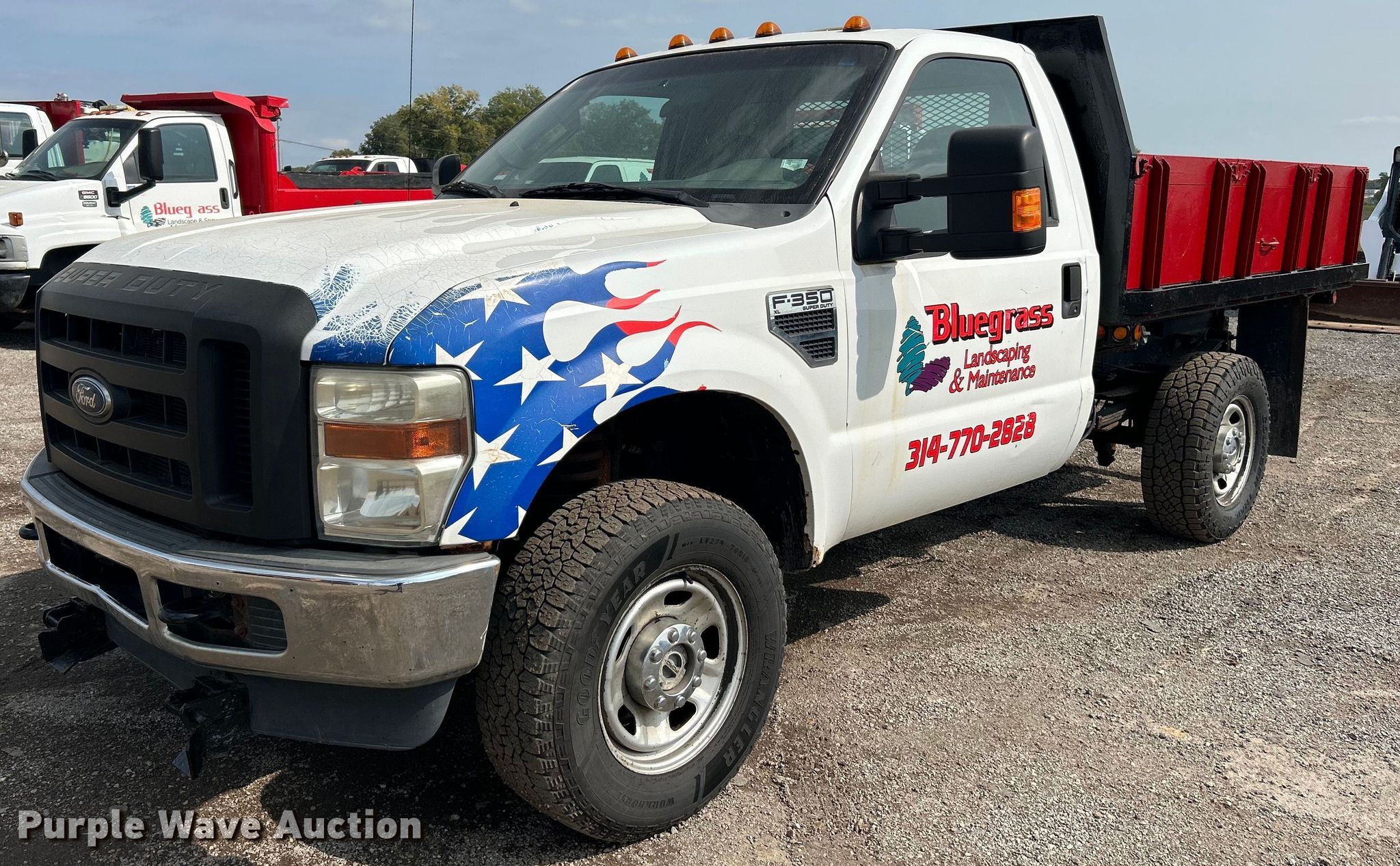2010 Ford F350 Super Duty XL flatbed pickup truck. Miles: 166,705 on odometer, VIN: 1FTSF3B50AEB20208. Engine Displacement: 5.4L V8 SOHC , Cylinders: 8, Fuel type: Gas. Transmission Automatic, Four wheel drive. Interior AC, Heat, Cruise control. Features Dump flatbed 8' 9" L x 84" W. Tires Size: 275/70R18. Notes Hydraulic line issues, leaks, Dash warning indicator: TPMS, Non-operational dump bed. Missouri title. Title distribution may be delayed up to 14 days from verification of funds. Bluegrass Landscape & Snow Management. Bridgeton, MO 63044
