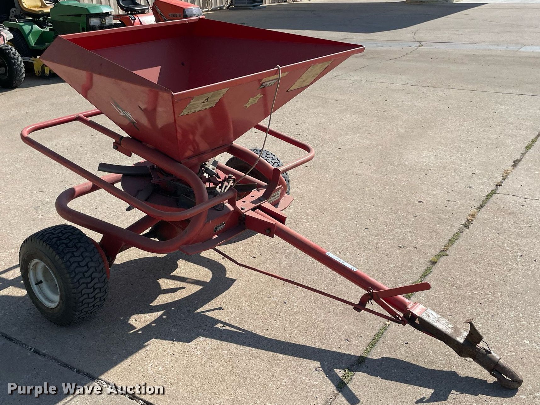 Lely W spreader. Serial: 10130672. Features Ball hitch size: 2". Tires Size: 18x8.50-8. Noble Research Institute - Open Inspection Oct. 24th. 2510 Sam Noble Parkway. Ardmore, OK 73401