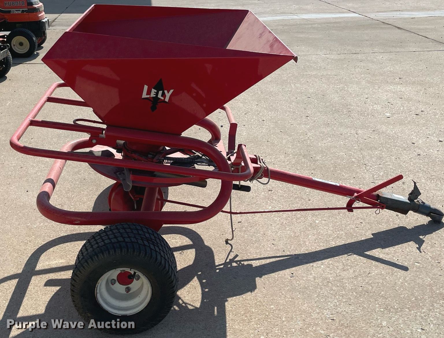 Lely W spreader. Features. Ball hitch size: 2". Tires Size: 28x9.50-8. Noble Research Institute - Open Inspection Oct. 24th. 2510 Sam Noble Parkway. Ardmore, OK 73401