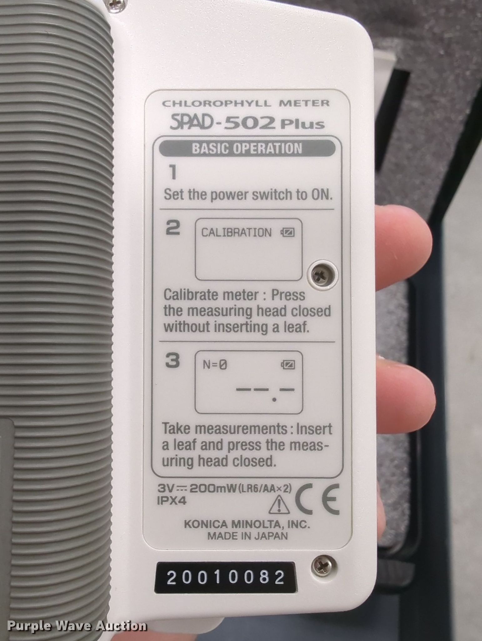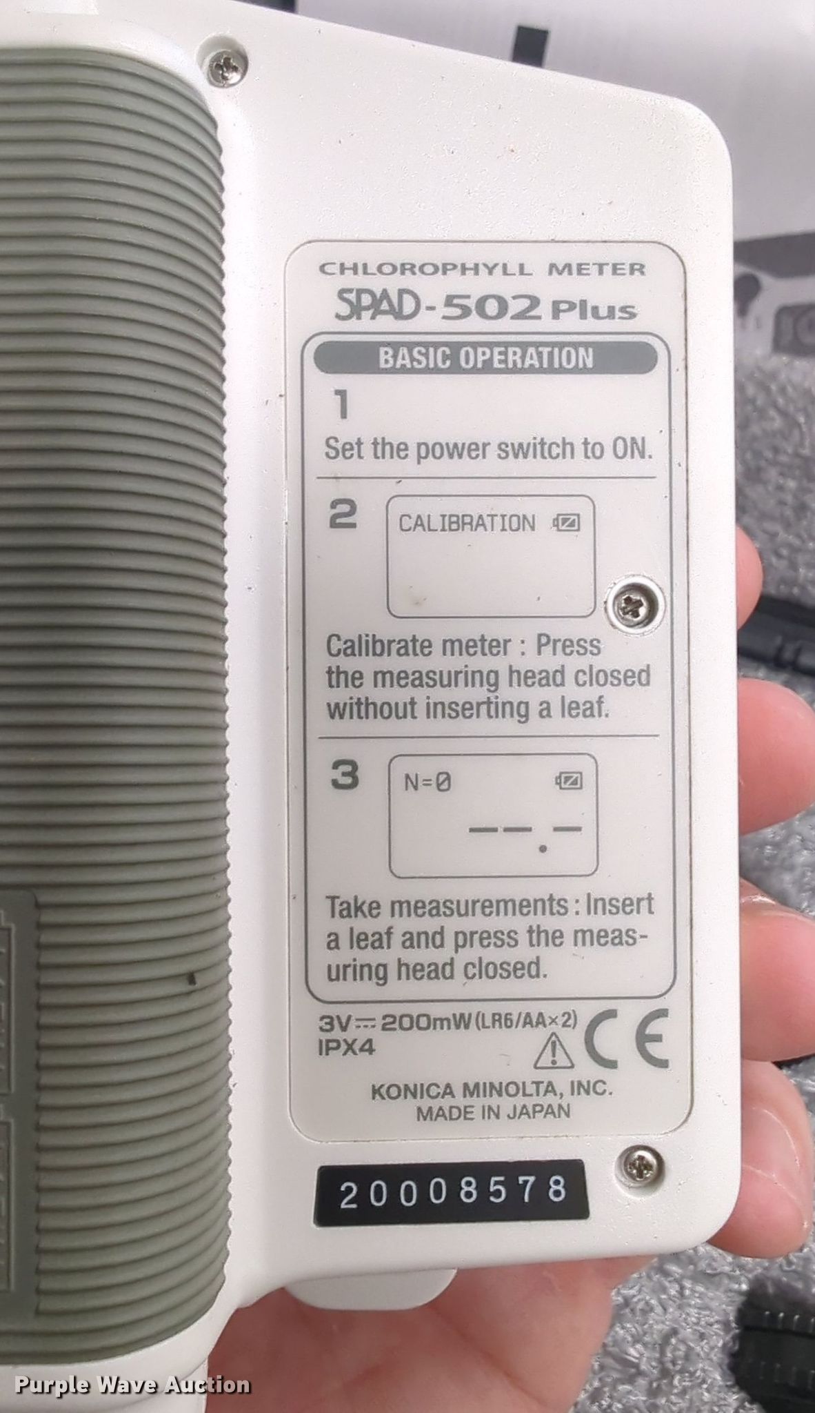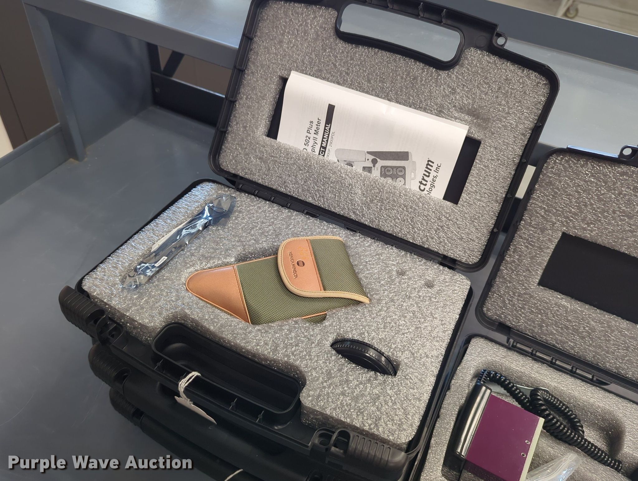 Purple Wave is selling a used Ag Electronics in Oklahoma. This item is a (7) chlorophyll soil moisture meters with the following: (4) Spectrum Technologies FieldScout SPAD 502, (2) Spectrum Technologies FieldScout TDR 150, Opti-Sciences OS-30p