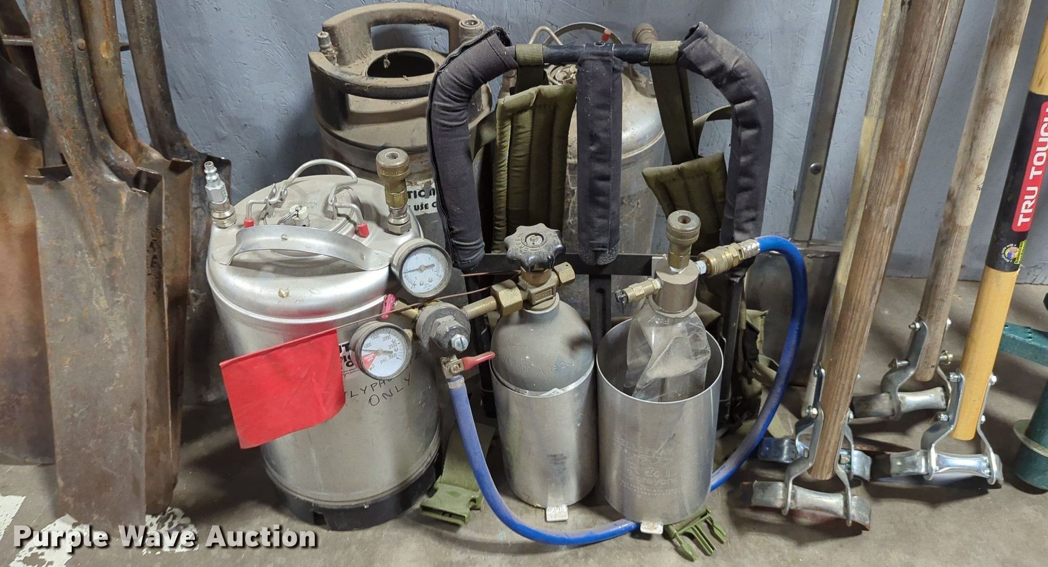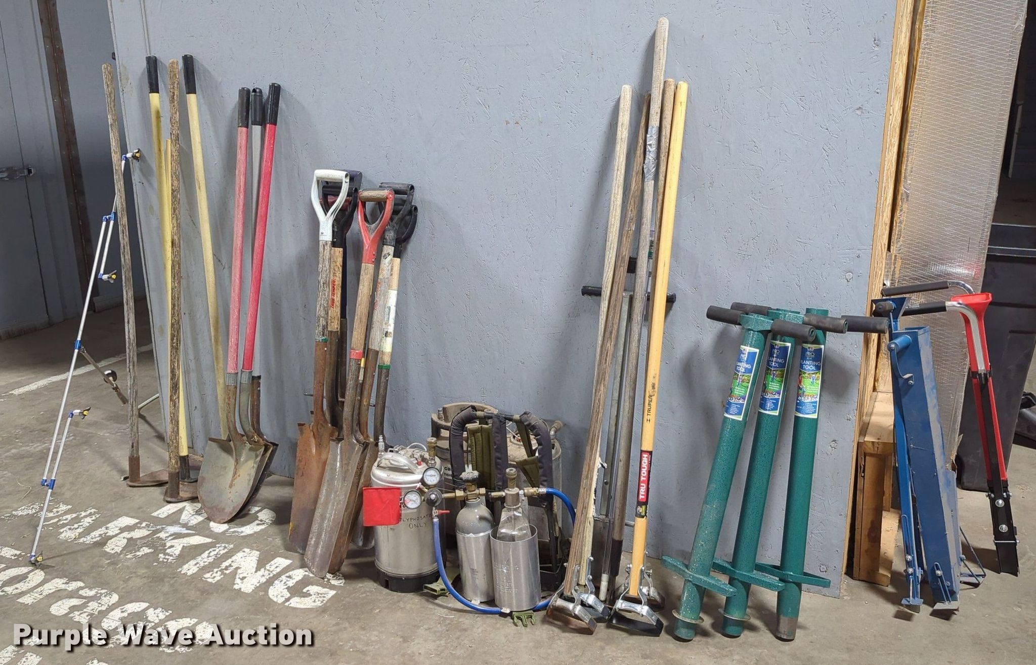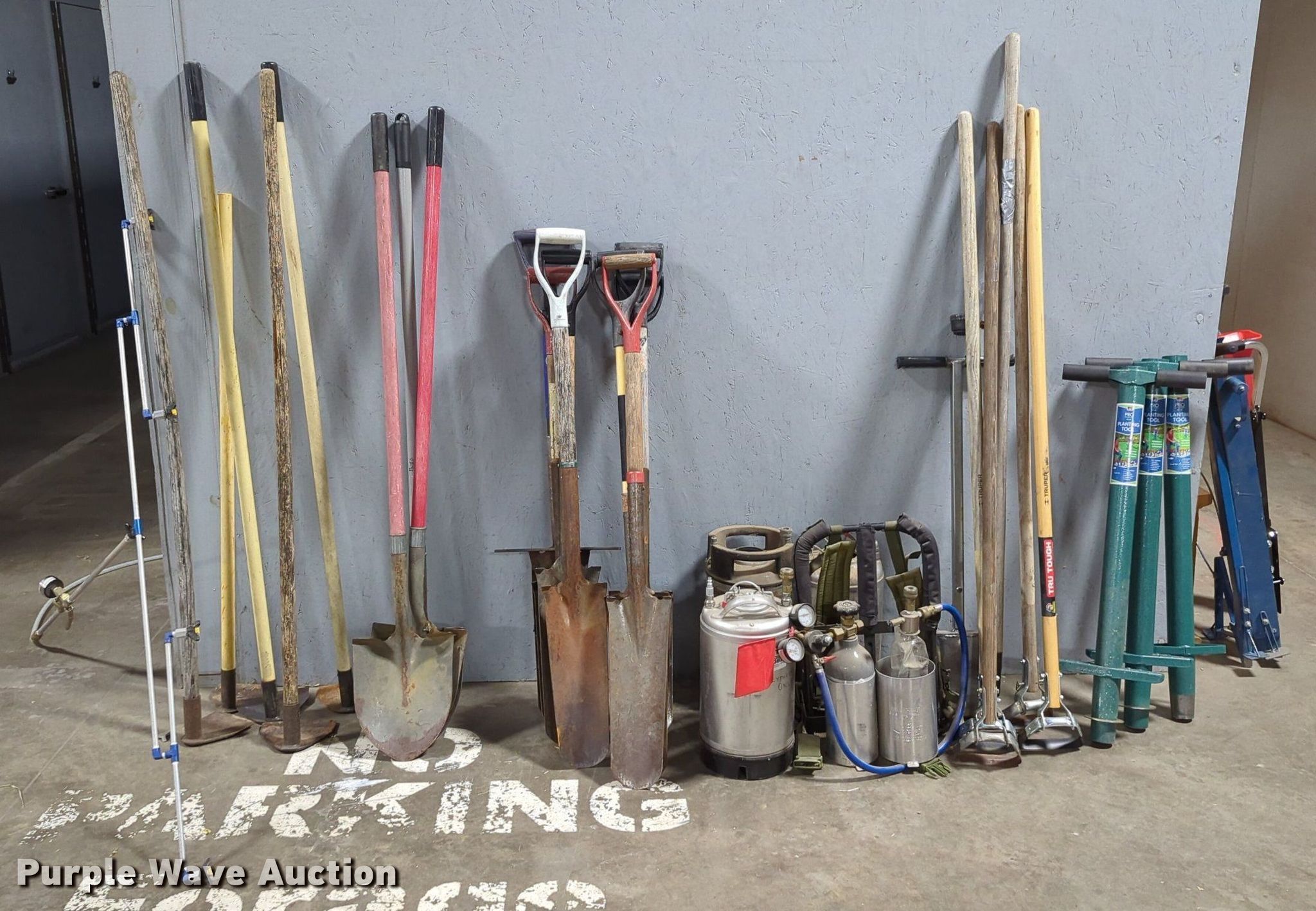 Purple Wave is selling a used Lawn and Garden in Oklahoma. This item is a Lawn tools with the following: Planters, Transplanters, Shovels, Hoes, Backpack sprayers