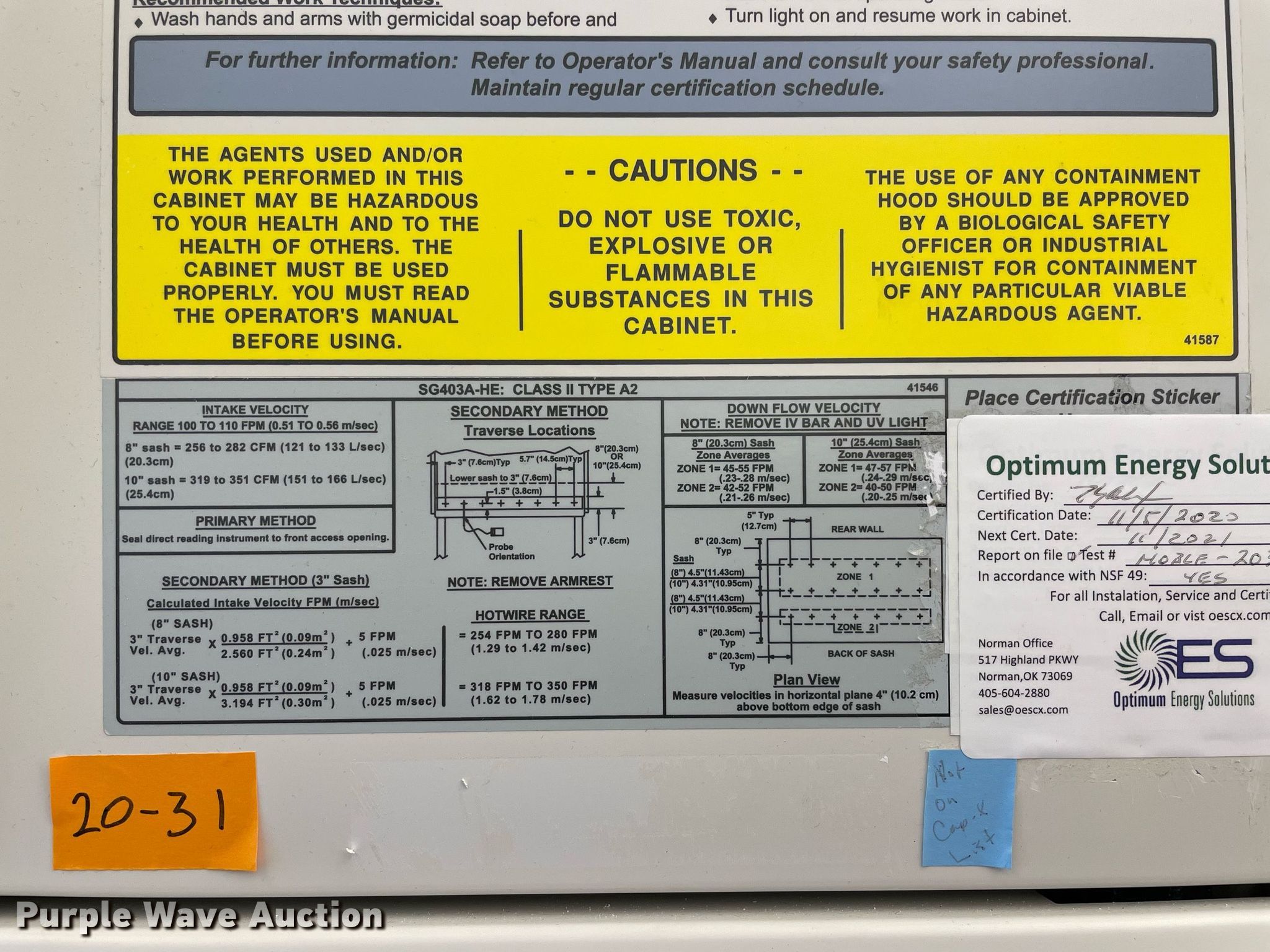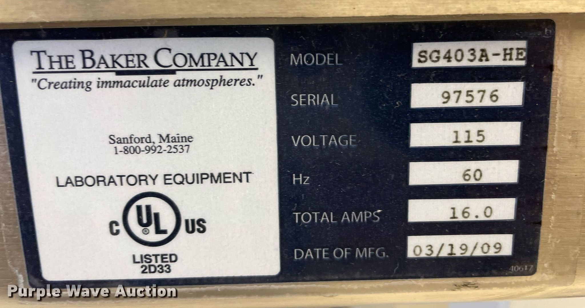 Purple Wave is selling a used Other Industrial or Business in Oklahoma. This item is a The Baker Company SteriGard biological safety cabinet with the following: Serial: 97576