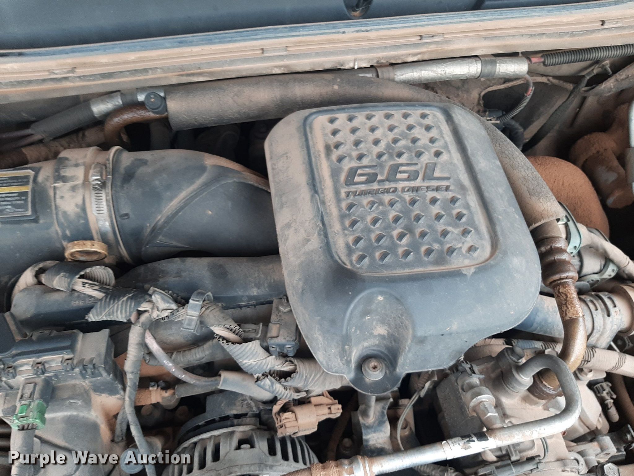 2009 Chevrolet Silverado 3500HD Ext. Cab bale bed pickup truck. Miles: 205,620 on odometer, VIN: 1GBJK89679E122136. Engine Displacement: 6.6L V8 OHV, Cylinders: 8, Fuel type: Diesel. Transmission Automatic, Four wheel drive. Interior AC, Heat, Seat: Power driver, Power passenger, Power windows, Power locks, Cruise control. Features Hydraulic bale bed 9' 4" L x 91" W, Bale arm, Hitch: Gooseneck. Tires Size: 235/80R17. Notes Both bale spinners included, Dash warning indicator: Check engine, ABS, Reduced power, Clean exhaust filter Error code: P0101, Possible exhaust issues, Possible DPF issues. Oklahoma title. Title distribution may be delayed up to 14 days from verification of funds. OKC Farms. 26869 County Road 900. Medford, OK 73759