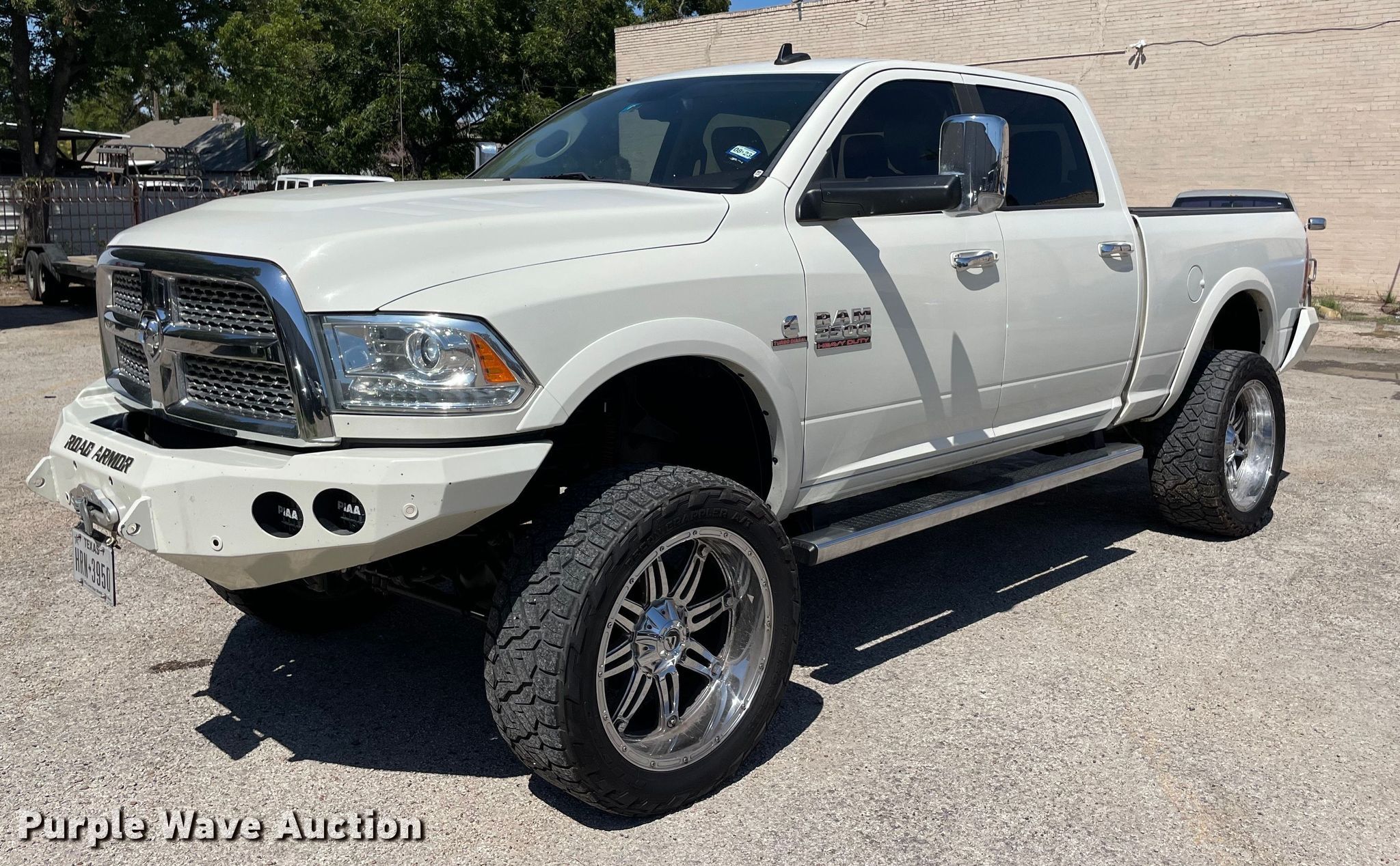 2016 Dodge Ram 2500 Crew Cab pickup truck. Miles: 166,711 on odometer, VIN: 3C6UR5FL0GG236960. Engine Displacement: 6.7L L6 OHV, Cylinders: 6, Fuel type: Diesel. Transmission Automatic, Four wheel drive. Interior AC, Heat, Seat: Heated, Cooled, Power driver, Power passenger, Heated mirrors, Power windows, Power locks, Cruise control, Backup camera. Features X2O Winch Capacity: 12,000lbs. Tires Size: 37x13.50R24LT. Notes Dash warning indicator: TPMS. Texas title. Title distribution may be delayed up to 14 days from verification of funds. 5107 East Grand Avenue. Dallas, TX 75223