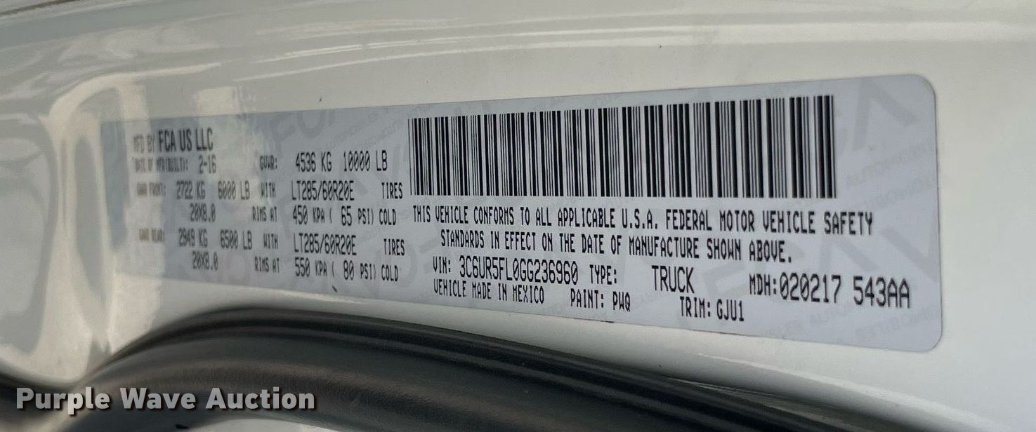 - VIN: 3C6UR5FL0GG236960