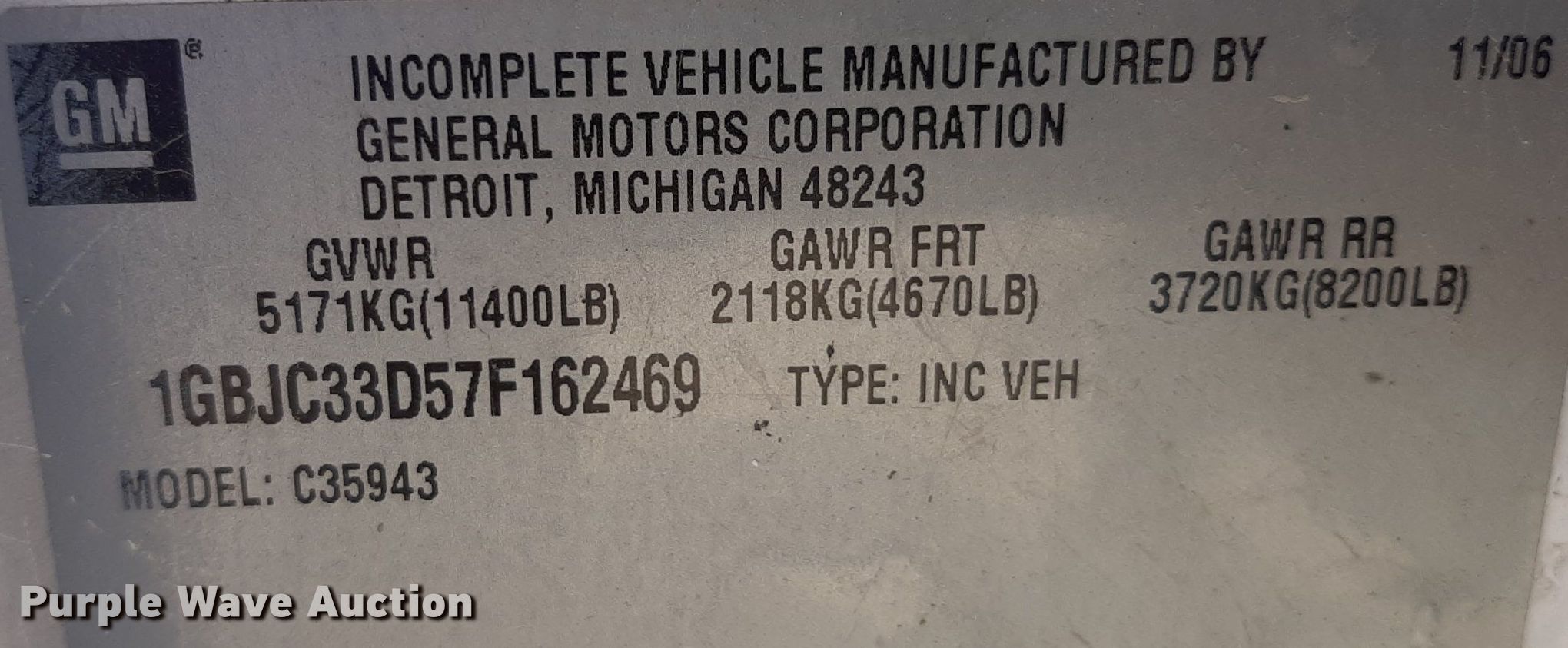 Purple Wave is selling a used 3/4 or 1 Ton Pickup or Van in Kansas. This item is a 2007 Chevrolet Silverado 3500 Crew Cab flatbed pickup truck with the following: Miles: 202,902 on odometer, VIN: 1GBJC33D57F162469