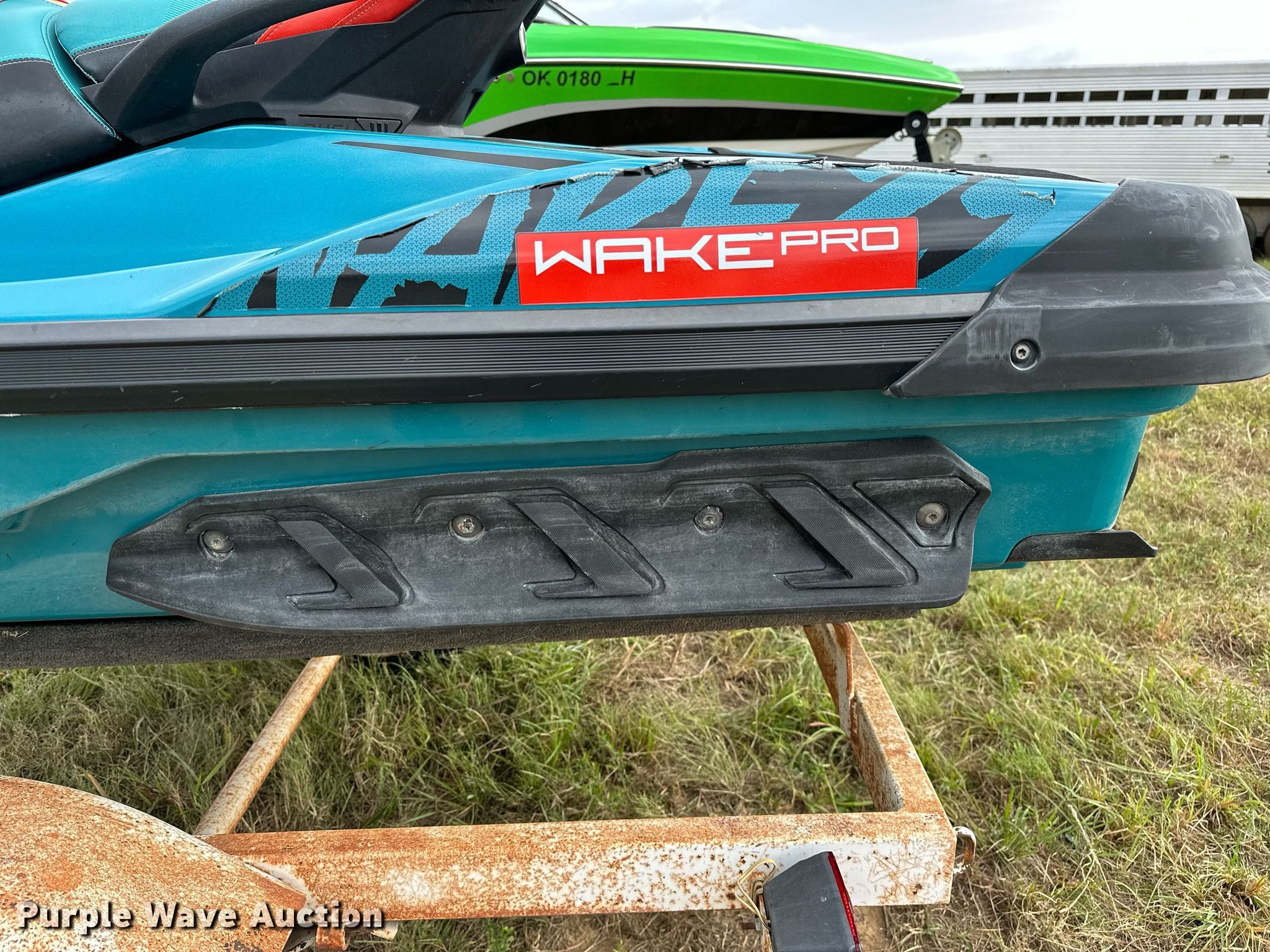 Purple Wave is selling a used Boat in Oklahoma. This item is a 2018 Sea Doo Wake Pro 230 personal watercraft with the following: Hours: 159 on meter, Length: 11' 6", Hull ID: YDV12738C818, Claim #: 3-814300