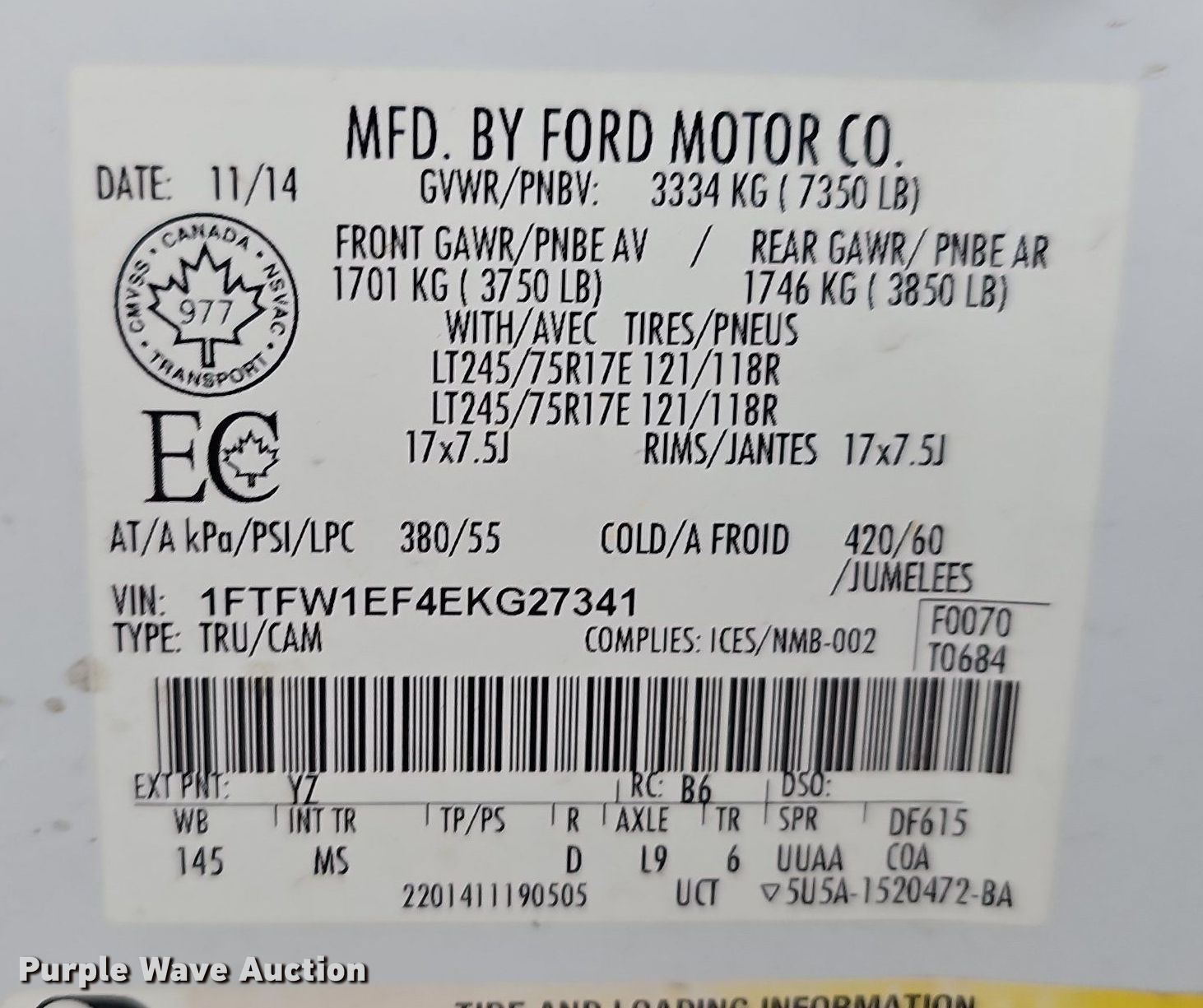 2014 Ford F150 XLT SuperCrew pickup truck | SOLD! October 25 Vehicles and Equipment Auction