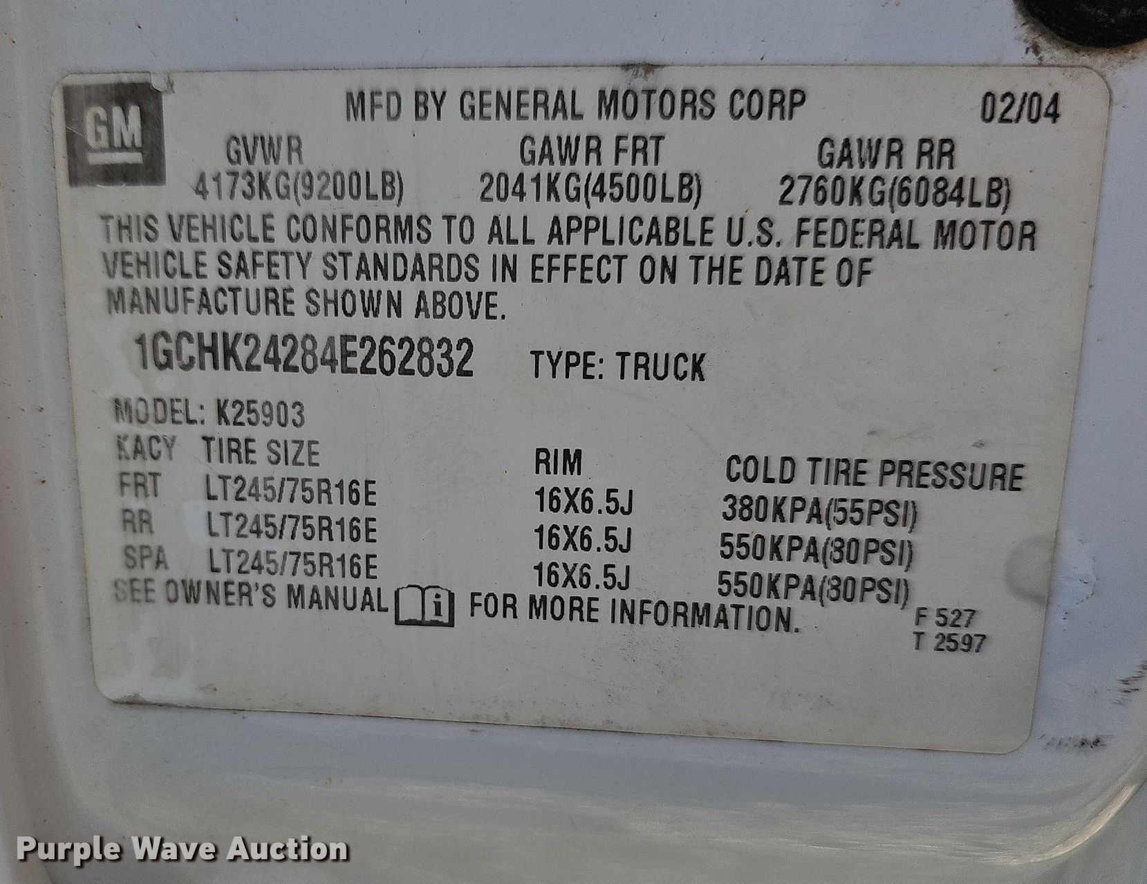 Purple Wave is selling a used 3/4 or 1 Ton Pickup or Van in Missouri. This item is a 2004 Chevrolet Silverado 2500HD pickup truck with the following: Miles: 123,512 on odometer, VIN: 1GCHK24284E262832