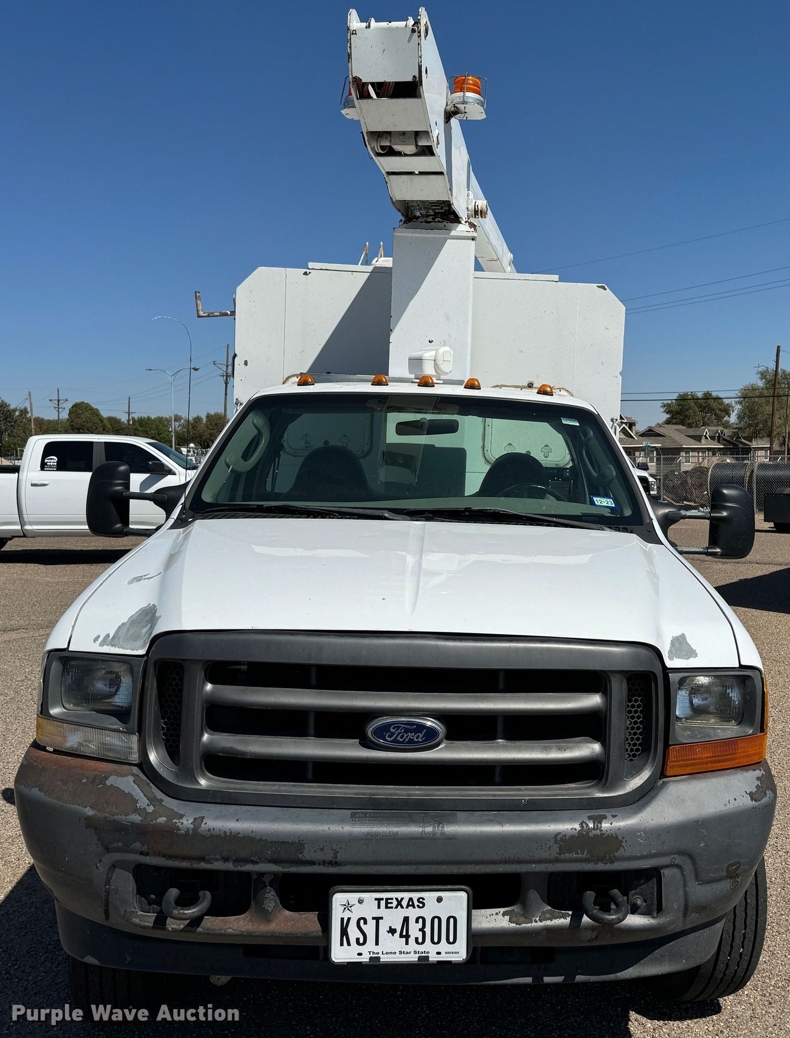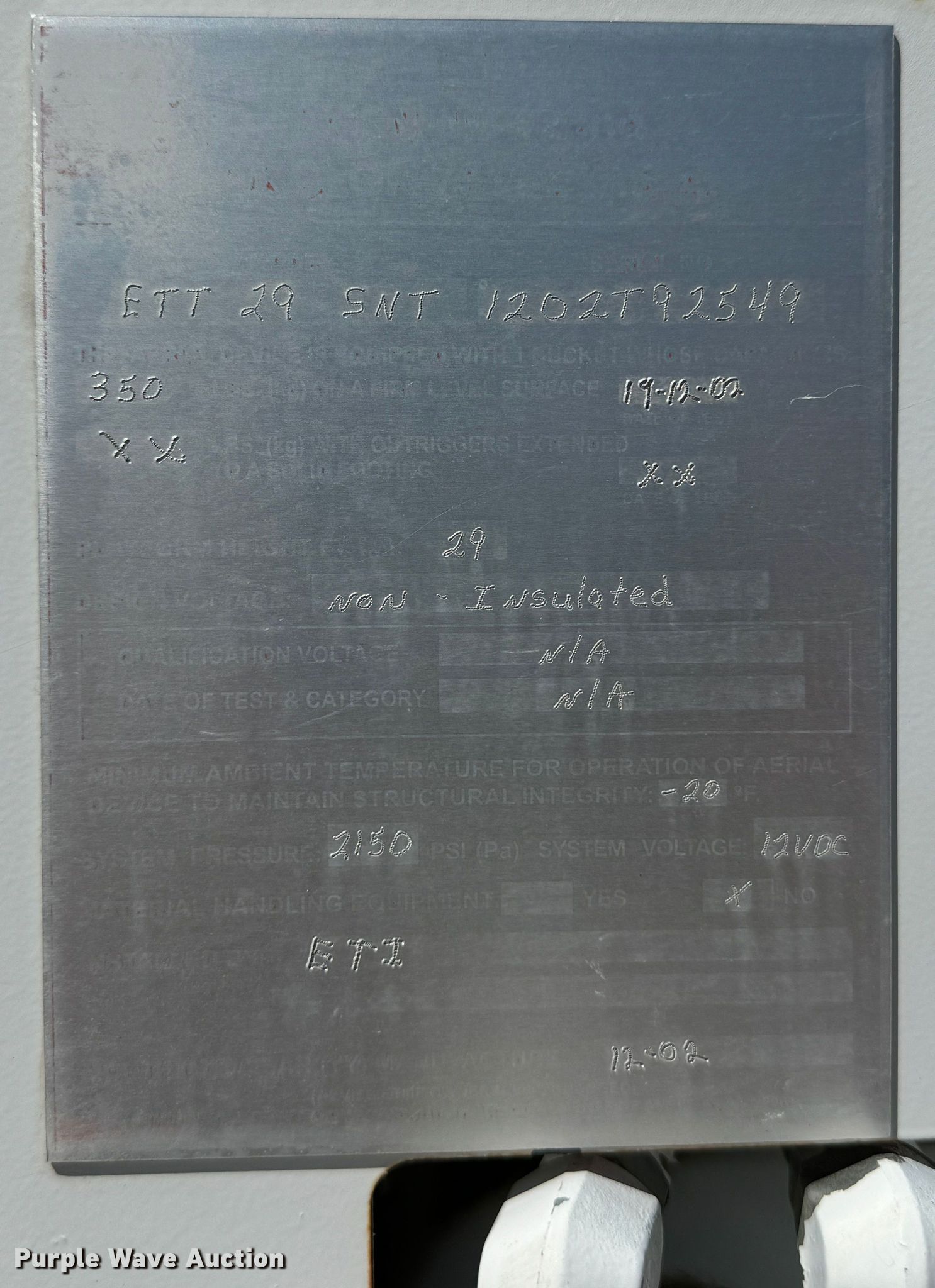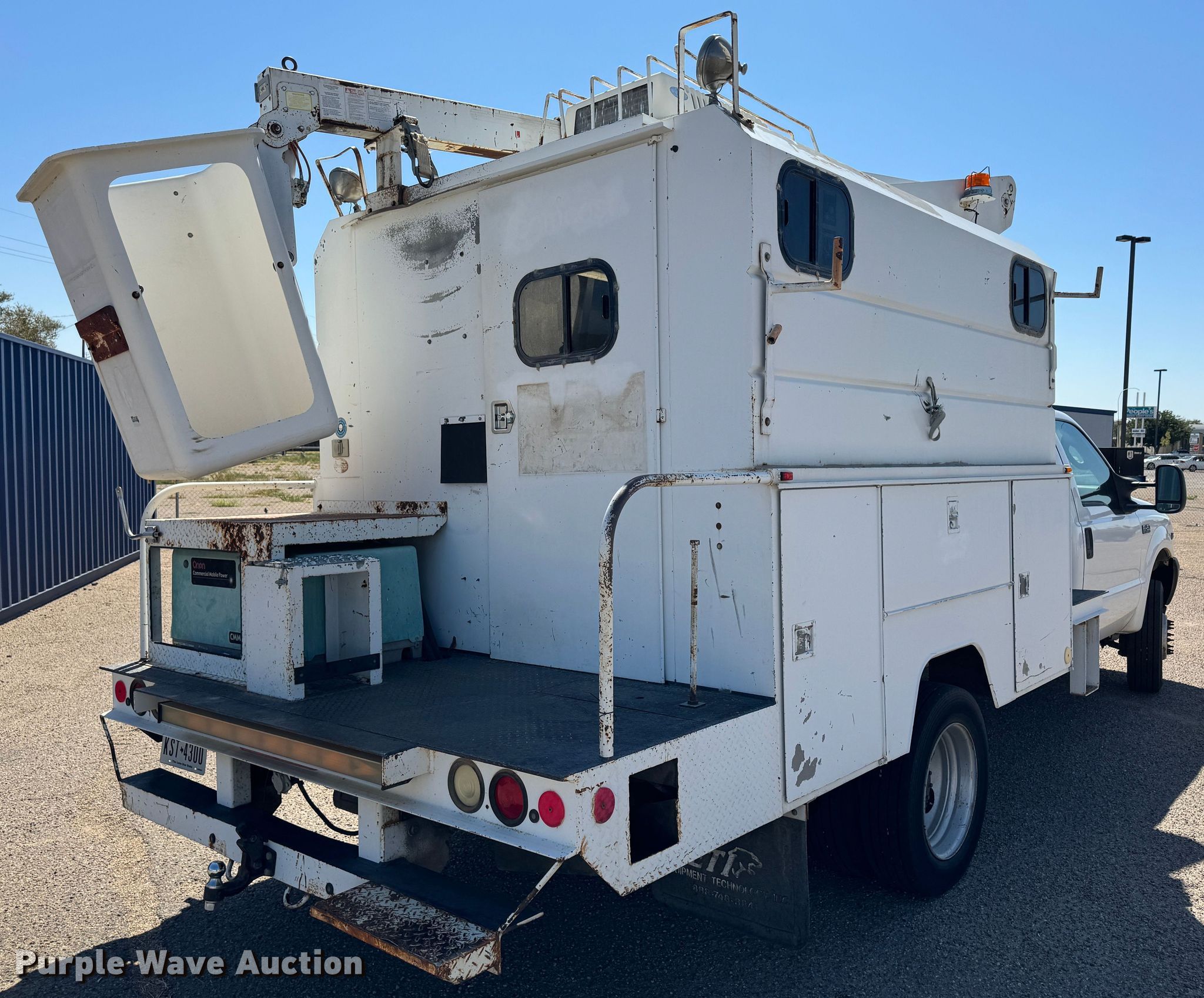 2003 Ford F450 Super Duty fiber optic splicing truck. Miles: 170,067 on odometer, VIN: 1FDXF46S63EB32275, Unit #: 25. Engine Displacement: 6.8L, Cylinders: 10, Fuel type: Gas. Transmission Automatic. Chassis Axles: Single, Suspension: Spring, Brakes: Hydraulic, GVWR: 15,000 lbs, Wheelbase: 165". Interior AC, Heat, Auxiliary controls. Features Bed ETI SB108WSB Canopy, Serial: 84421, 14' L x 93.5" W, Carrier AC, Boom 2002 ETI ETT-29-SNT, Serial: 1202T92549, Maximum lift capacity: 350 lbs, Maximum lift height: 29', Boom type: Articulating, Telescopic, Man basket, Boom controls Ground, Platform/ basket, Onan CMM 5500 generator. Tires Size: 225/70R19.5. Texas title. Title distribution may be delayed up to 14 days from verification of funds. AW Broadband. 3433 Plains Boulevard. Amarillo, TX 79102
