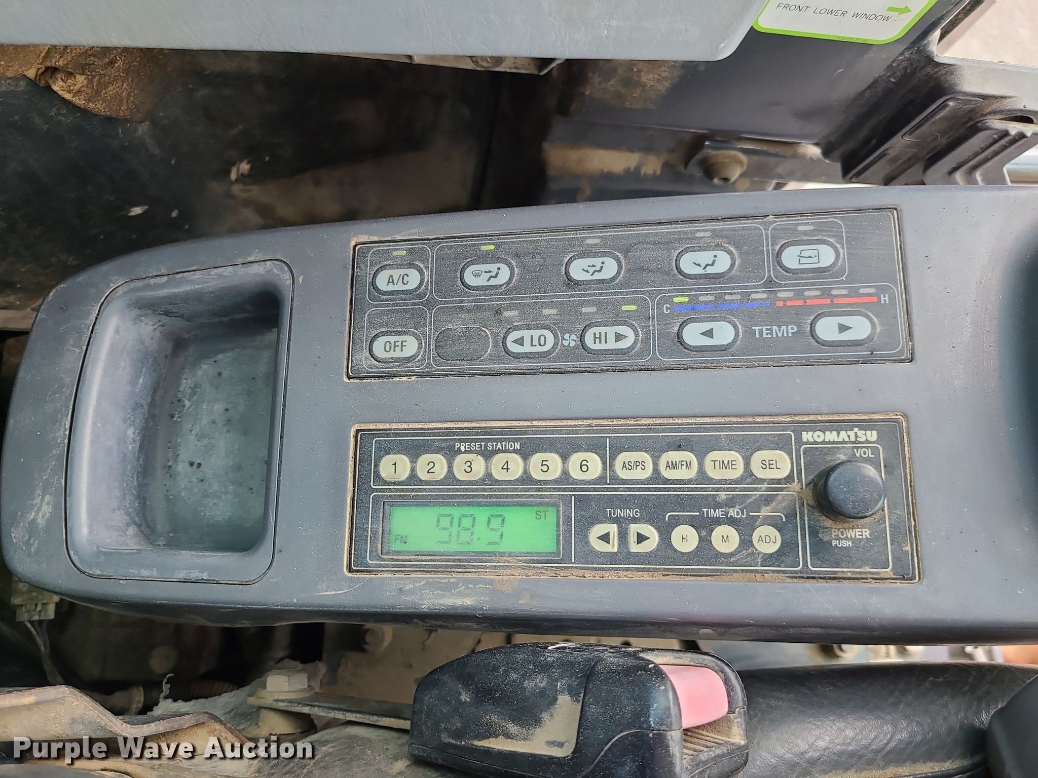 2008 Komatsu PC78MR-6 mini excavator. Hours: 4,838 on meter, Serial: KMTPC029P01003456. Engine Cylinders: 4, Fuel type: Diesel. Transmission Hydrostatic. Operators station Enclosed cab, AC, Heat. Features Auxiliary hydraulics, Backfill blade Width: 92", Boom Swing, Stick Stick length: 88", Quick coupler: Hydraulic, Thumb: Hydraulic, Bucket WB, Width: 24", Bolt-on, Teeth: 5, Bucket WB, Width: 18", Bolt-on, Teeth: 4. Tracks Width: 18", Rubber. Wil-Pav Inc. 12900 E Kentucky Rd. Sugar Creek, MO 64050