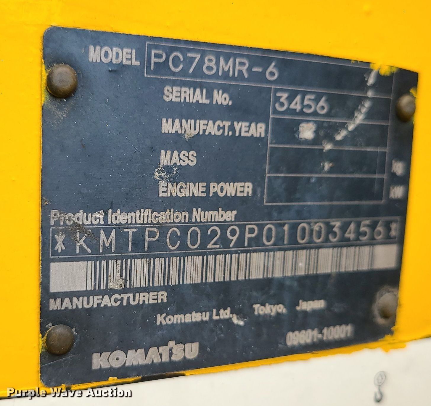 Purple Wave is selling a used Mini Excavator in Missouri. This item is a 2008 Komatsu PC78MR-6 mini excavator with the following: Hours: 4,838 on meter, Serial: KMTPC029P01003456