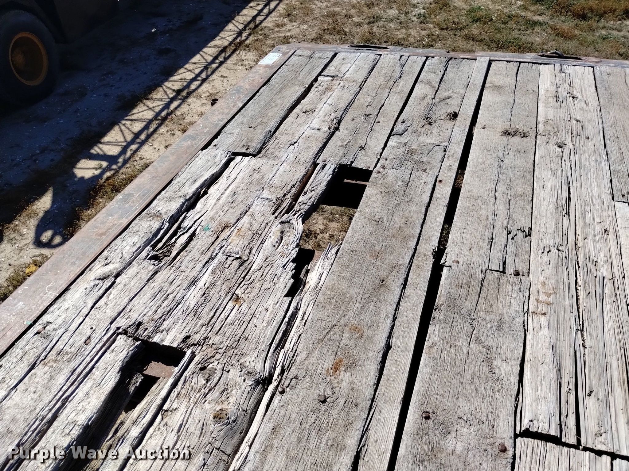 1978 Shop built flatbed trailer. VIN: 78081595. Dimensions Overall: 39' 6" L x 102" W. Features Deck type: Wood, Rolling tailboard. Chassis Landing gear: Dual, Suspension: Spring, Brakes: Air, Axles: Tandem. Tires Steel wheels, Size: 11R24.5. Notes Deck board damage. Colorado title. Title distribution may be delayed up to 14 days from verification of funds. All American Recycling LLC. 25722 County Road 40. Akron, CO 80720