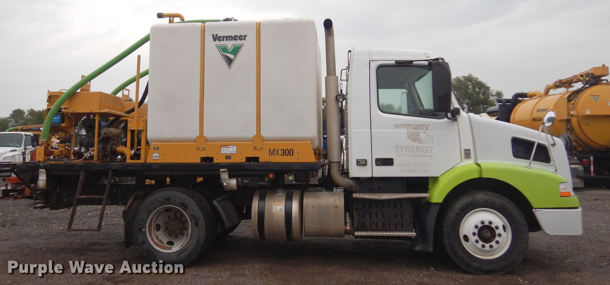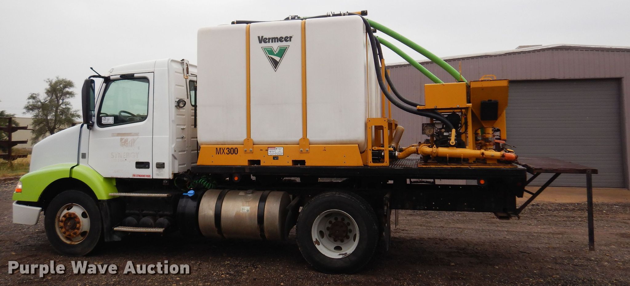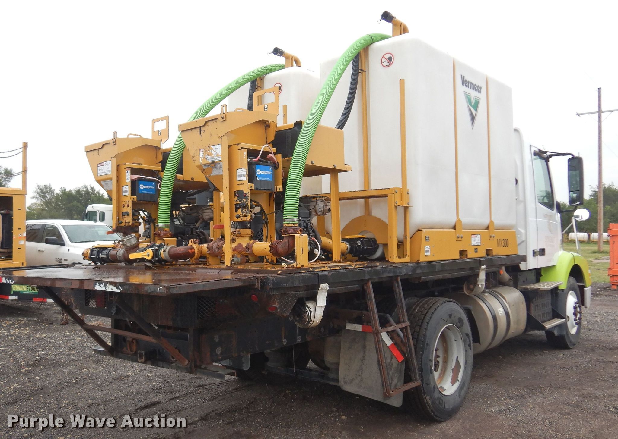 2012 Volvo VNM flatbed truck. Miles: 661,889 on odometer, VIN: 4V4M19DF3CN550662. Engine Volvo D11H365, Serial: 540494, Displacement: 10.8L, Cylinders: 6, Fuel type: Diesel. Transmission Eaton Fuller, Manual, Speed: 10. Chassis Axles: Single, Suspension: Air, Brakes: Air, GVWR: 32,000 lbs. Interior AC, Heat, Power locks, Cruise control. Features Flatbed 13' 6" L x 96" W, (2) 2019 Vermeer MX300 mud mixers Hours: 945 on meter, Hours: 282 on second meter, Capacity: 1,000 gallons, Kohler two cylinder gas engine. Tires Size: 295/75R22.5. Notes Dash warning indicator: Check engine. Oklahoma repo title. Seller is a licensed motor vehicle dealer. The buyer may be required to pay sales tax and/or registration fees to the dealer prior to taking possession. Title will be assigned and distributed by the dealer. Please contact the seller for distribution questions. Source: HDD. 1816 E. Wasp Road. Hutchinson, KS 67501