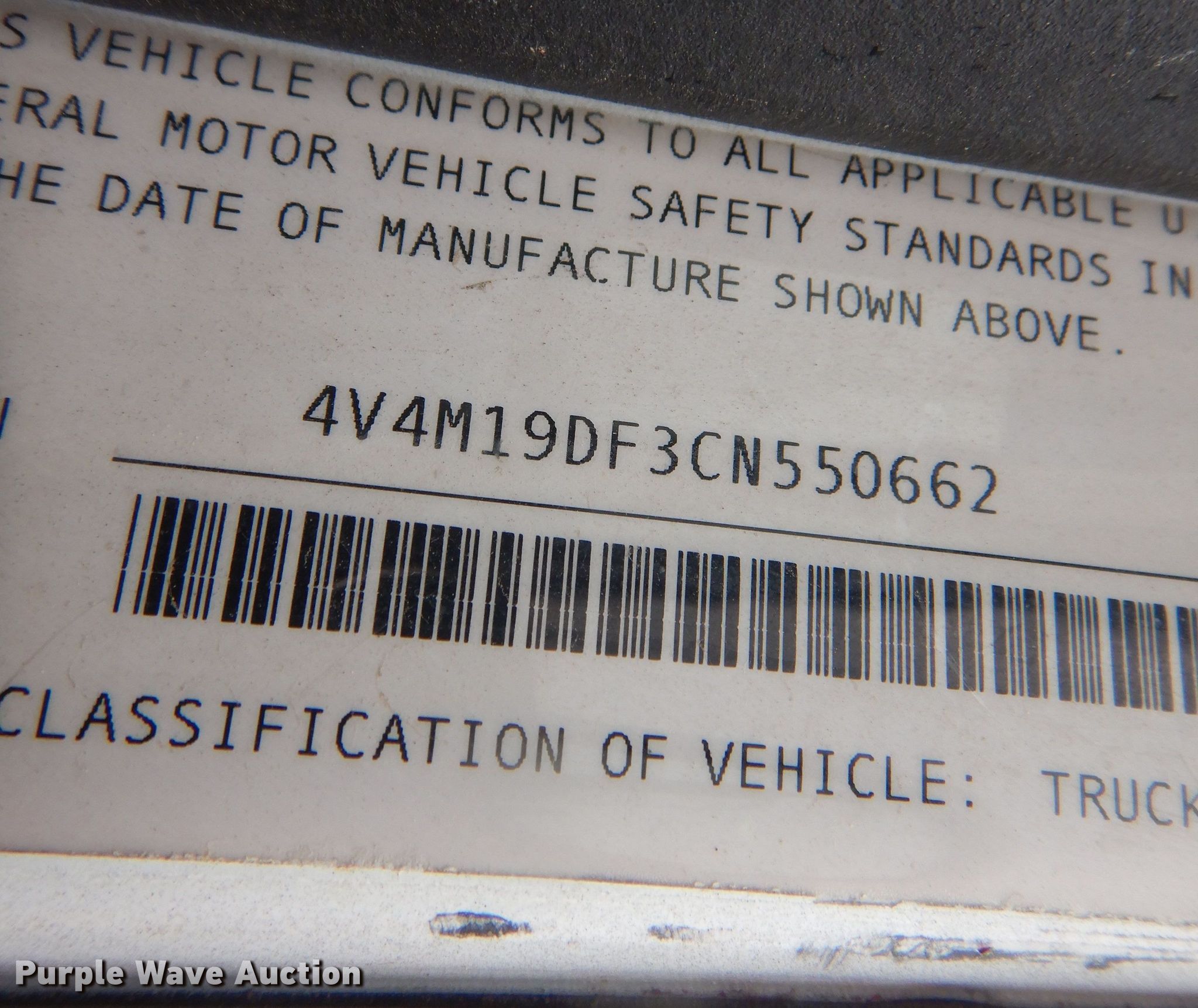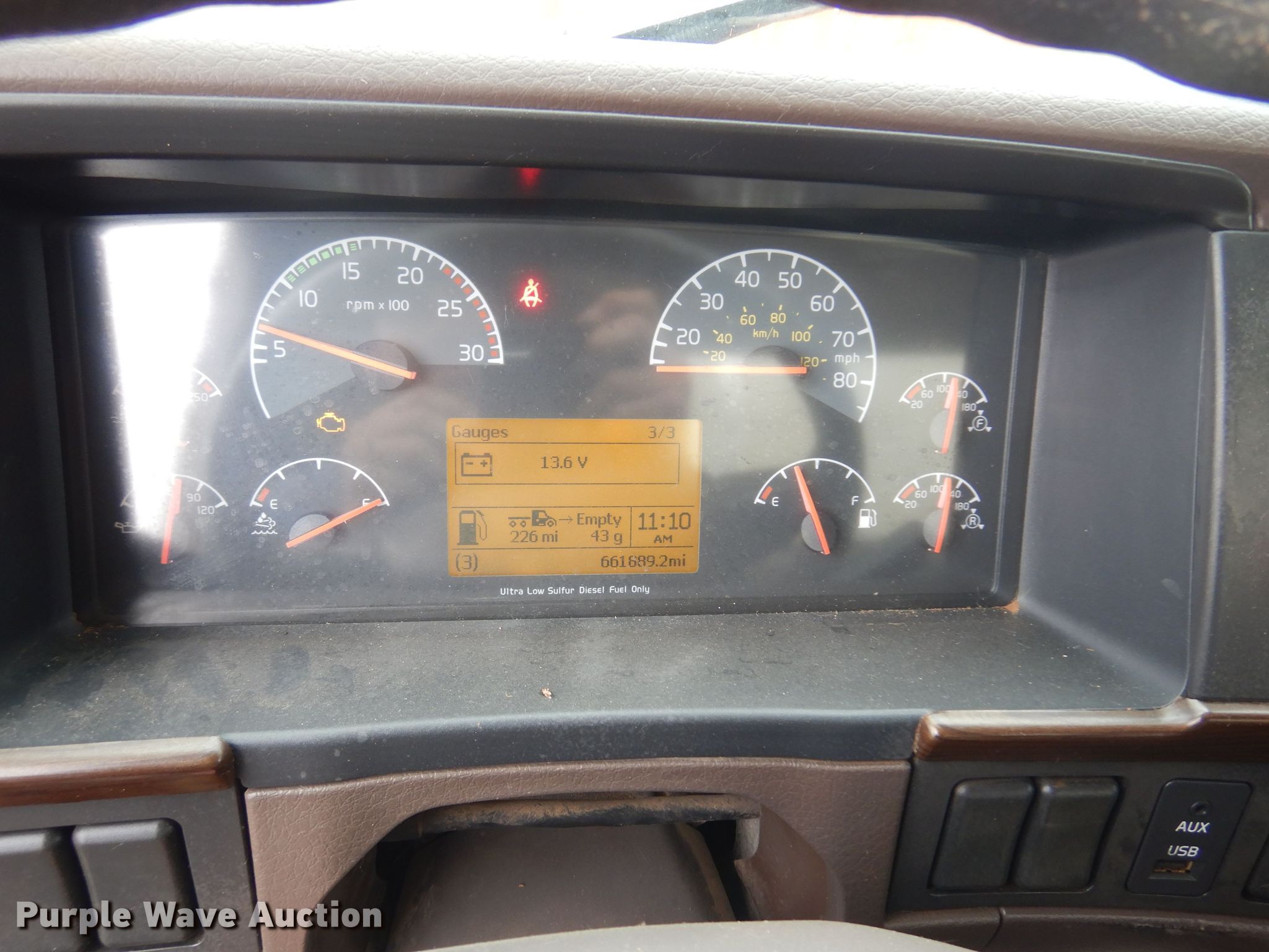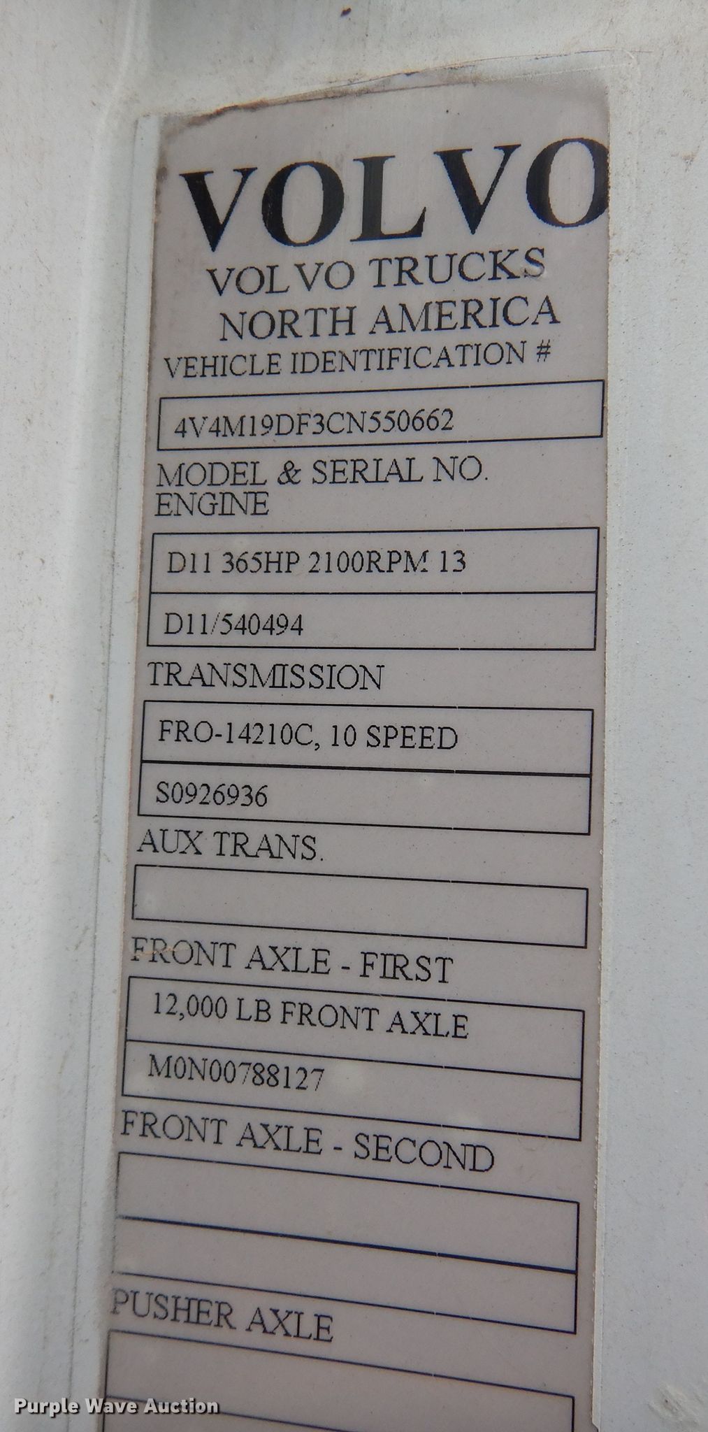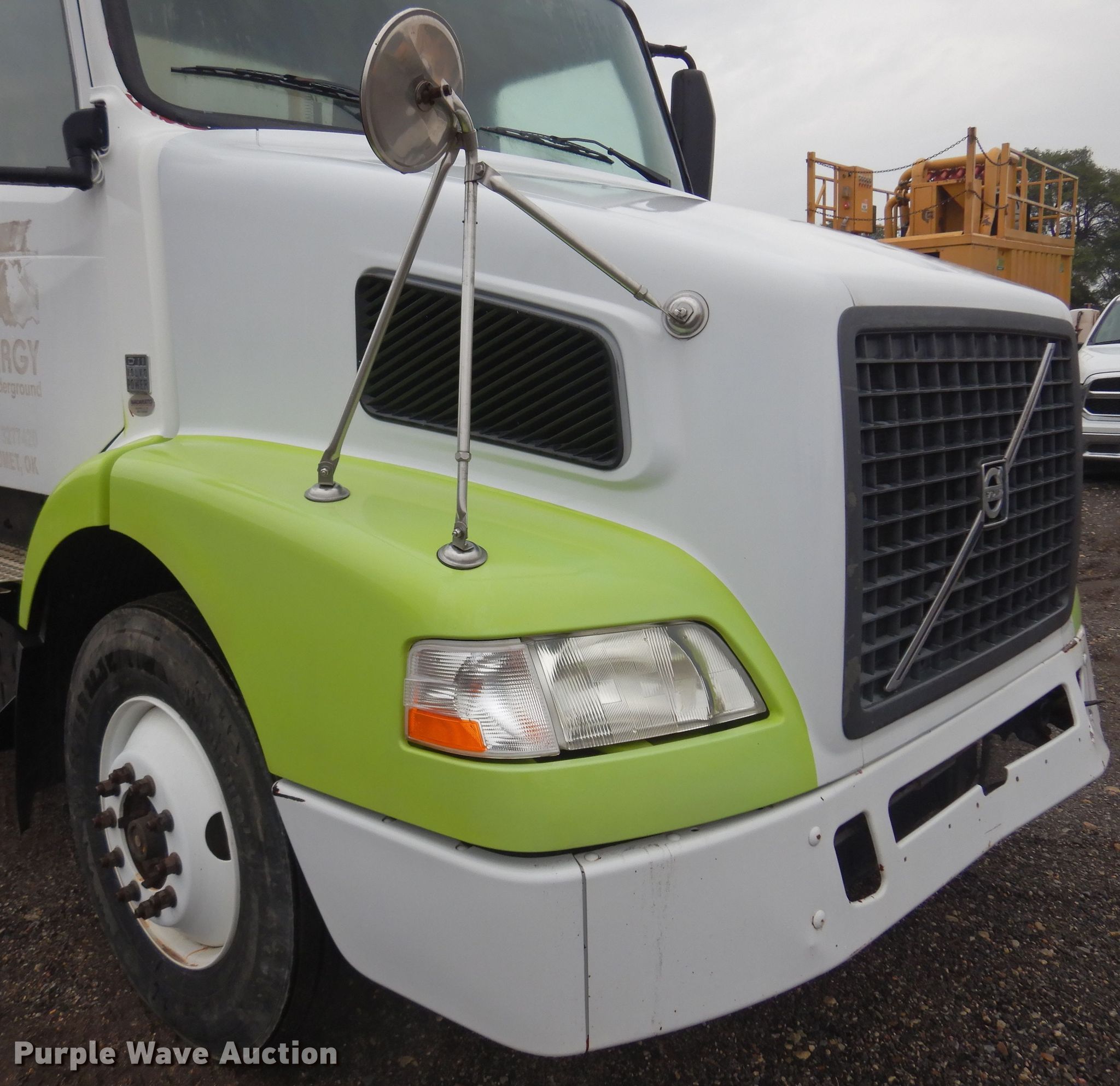 2012 Volvo VNM flatbed truck. Miles: 661,889 on odometer, VIN: 4V4M19DF3CN550662. Engine Volvo D11H365, Serial: 540494, Displacement: 10.8L, Cylinders: 6, Fuel type: Diesel. Transmission Eaton Fuller, Manual, Speed: 10. Chassis Axles: Single, Suspension: Air, Brakes: Air, GVWR: 32,000 lbs. Interior AC, Heat, Power locks, Cruise control. Features Flatbed 13' 6" L x 96" W, (2) 2019 Vermeer MX300 mud mixers Hours: 945 on meter, Hours: 282 on second meter, Capacity: 1,000 gallons, Kohler two cylinder gas engine. Tires Size: 295/75R22.5. Notes Dash warning indicator: Check engine. Oklahoma repo title. Seller is a licensed motor vehicle dealer. The buyer may be required to pay sales tax and/or registration fees to the dealer prior to taking possession. Title will be assigned and distributed by the dealer. Please contact the seller for distribution questions. Source: HDD. 1816 E. Wasp Road. Hutchinson, KS 67501