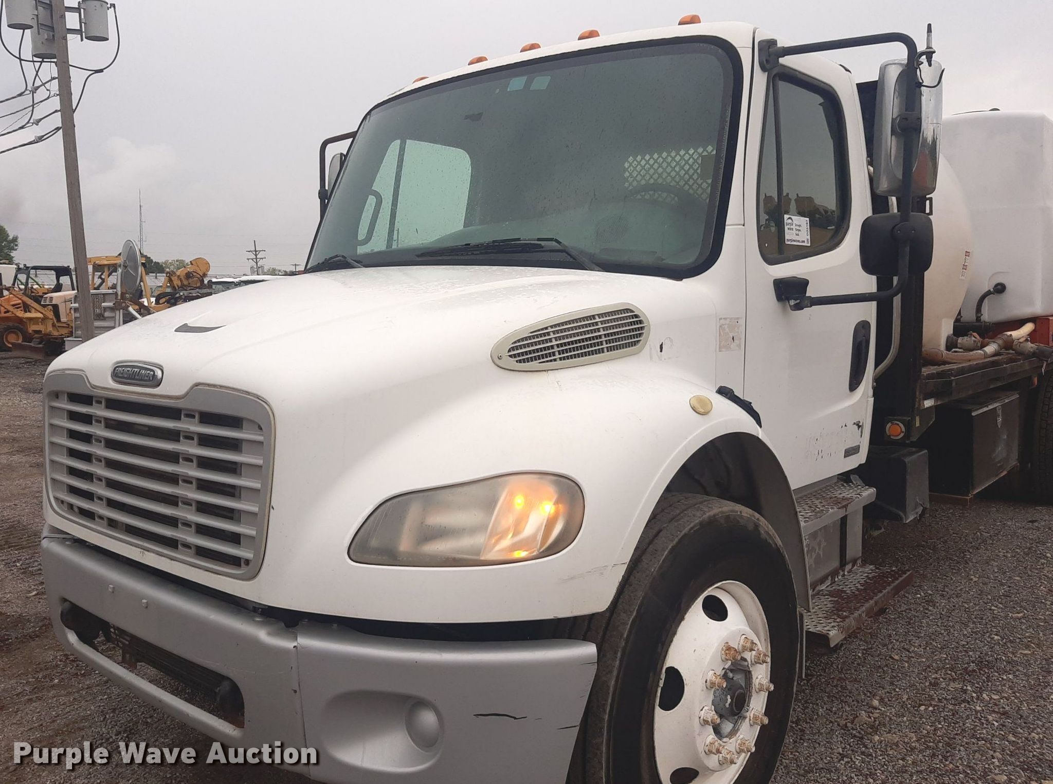 2007 Freightliner Business Classic M2 flatbed truck. Miles: 268,633 on odometer, VIN: 1FVHCYDC37HX72344. Engine Caterpillar C7, Cylinders: 6, Fuel type: Diesel. Transmission Manual, Speed: 9. Chassis Axles: Tandem, Suspension: Air, Brakes: Air, GVWR: 52,000 lbs. Interior AC, Heat, Heated mirrors, Power windows, Cruise control. Features Flatbed 26' 4" L x 96" W, Ditch Witch FM13 mud mixer system, (2) 1000 gallon poly tanks, (2) 535 gallon poly tanks, (2) Honda GX390 engines Unknown operating condition. Tires Size: 295/75R22.5. Florida title. Seller is a licensed motor vehicle dealer. The buyer may be required to pay sales tax and/or registration fees to the dealer prior to taking possession. Title will be assigned and distributed by the dealer. Please contact the seller for distribution questions. Source: HDD. 1816 E. Wasp Road. Hutchinson, KS 67501