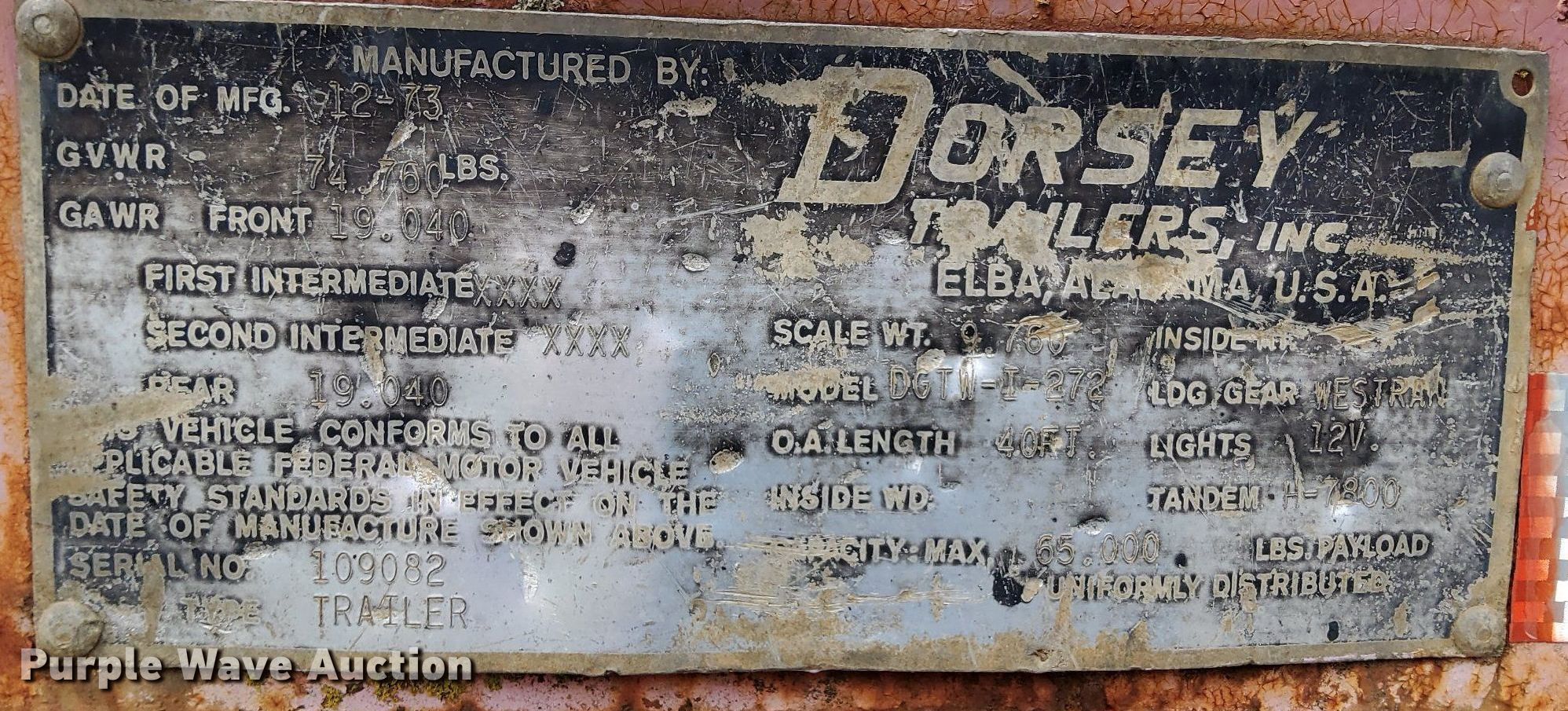 Purple Wave is selling a used Flat or Drop Deck Trailer in Arkansas. This item is a 1974 Dorsey flatbed trailer with the following: VIN: 109082