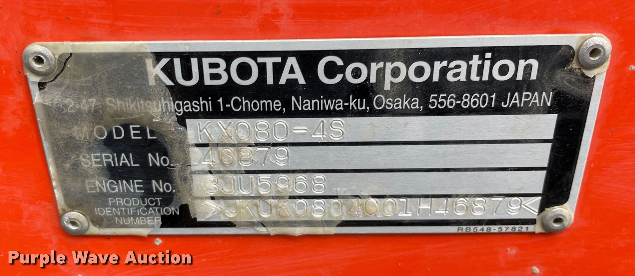 Purple Wave is selling a used Mini Excavator in Illinois. This item is a 2019 Kubota KX080-4 mini excavator with the following: Hours: 731 on meter, Serial: 46879