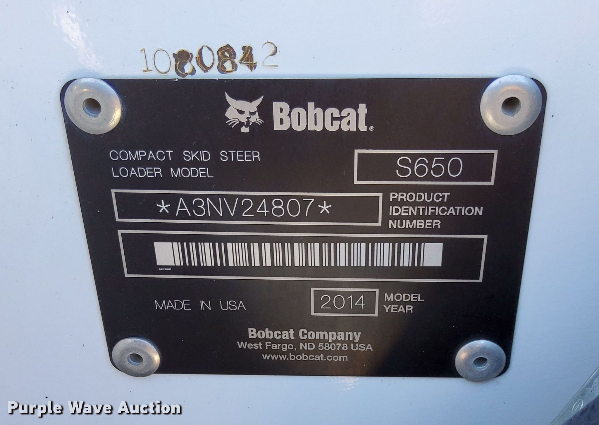 Purple Wave is selling a used Skid Steer Loader in Colorado. This item is a 2014 Bobcat S650 skid steer loader with the following: Hours: 724 on meter, Serial: A3NV24807