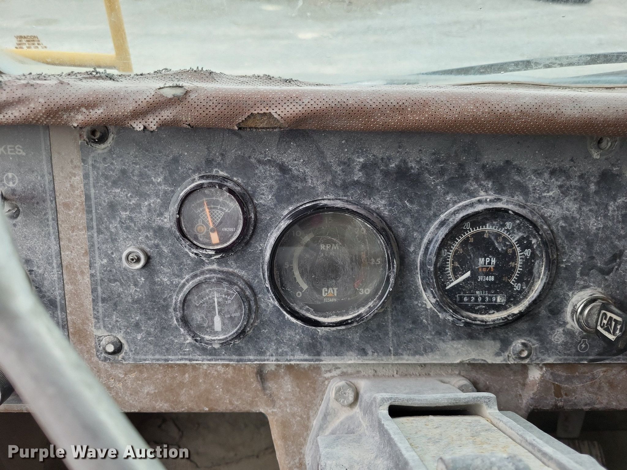 1991 Caterpillar 769C haul truck. Miles: 62,039 on odometer, Serial: 01X05778, Unit #: 57. Engine Caterpillar, Cylinders: 8, Fuel type: Diesel. Transmission Powershift, 7F - 1R. Interior AC, Heat, Retarder. Features Dump bed Capacity: 40 tons, Bed heater. Tires Size: 18.00R33. Notes Windshield chipped or cracked, Dead battery, Intermittent dash warning light illumination, Transmission issues. Atlas Asphalt, Inc. 8895 Cord Rd. Newark, AR 72562