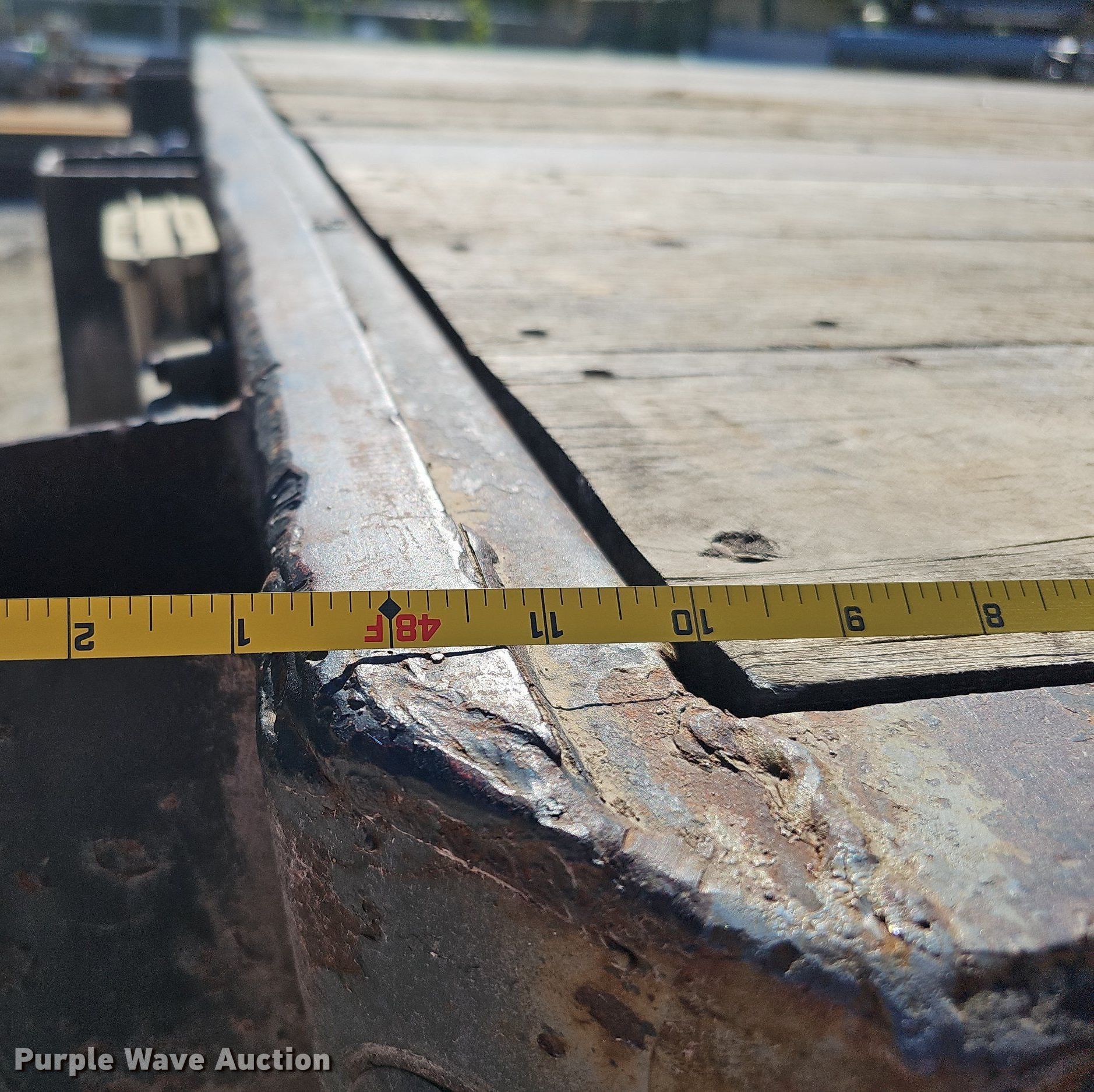 1993 Fontaine FTW-5-8048SL flatbed trailer. VIN: 13N1482C3P1557385. Dimensions Overall: 48' L x 96" W. Features Deck type: Wood. Chassis Landing gear: Dual, Suspension: Spring, Brakes: Air, Axles: Tandem, Sliding, GVWR: 85,982 lbs, GAWR: 22,500 lbs. Tires Steel wheels, Size: 295/75R22.5, Driver rear: 275/80R22.5. Notes Sliding axle rail rust damage. Nebraska title. Title distribution may be delayed up to 14 days from verification of funds. CL Construction. 3415 North 44th Street. Lincoln, NE 68504