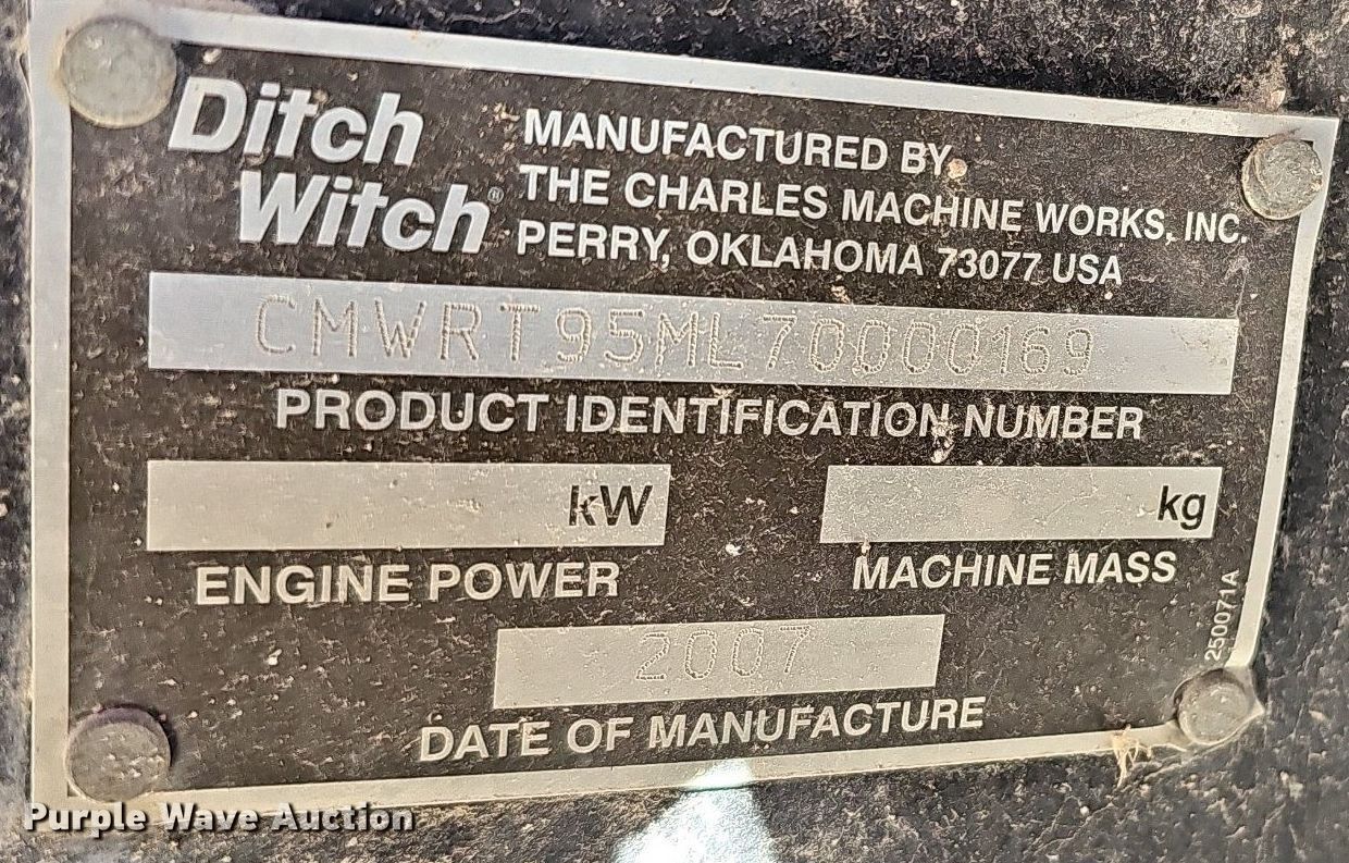 Purple Wave is selling a used Trencher or Rock Saw in Nebraska. This item is a 2007 Ditch Witch RT95 trencher with the following: Hours: 1,915 on meter, Serial: CMWRT95ML70000169