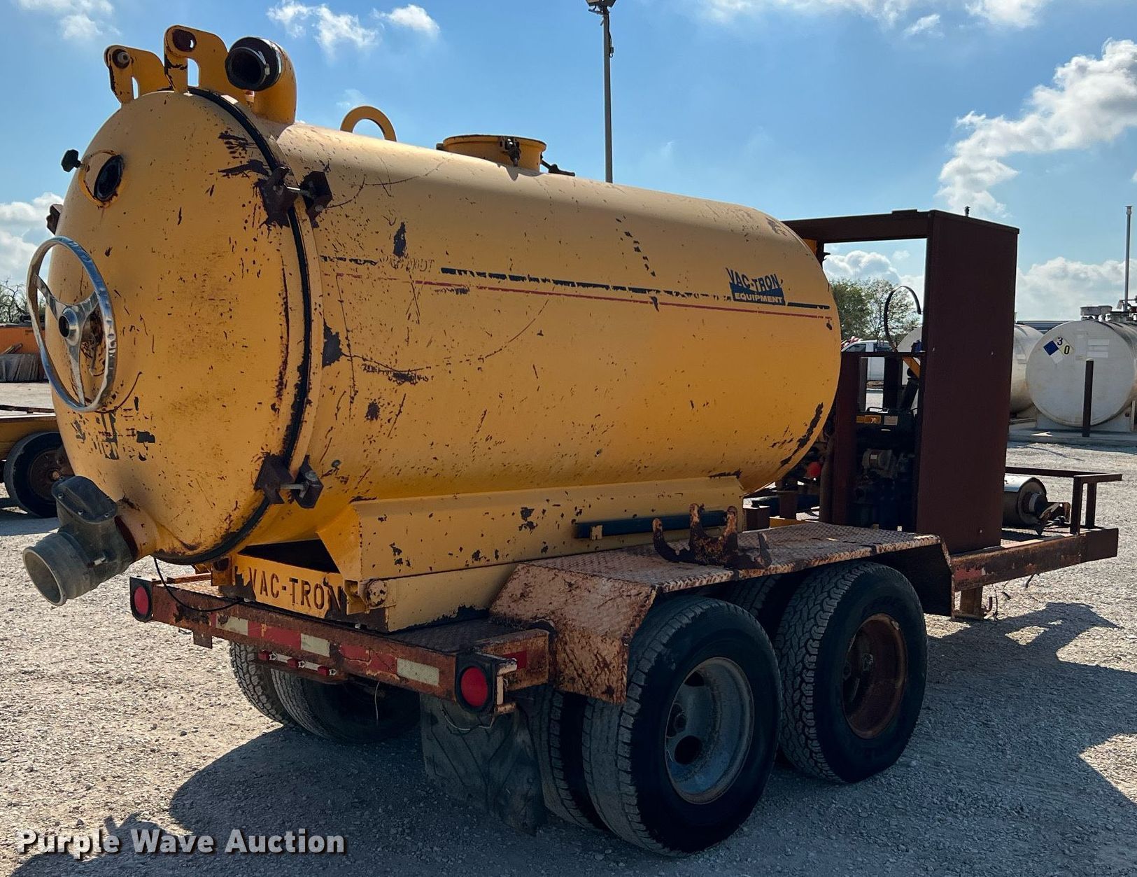Vac-Tron PMD-00 vacuum excavator. Hours: Unknown. Engine Kubota V1505, Serial: YG3150, Cylinders: 4, Fuel type: Diesel, kW: 26.5. Trailer 19' L x 83" W, Hitch: Pintle, Suspension: Spring, Brakes: Electric, Axles: Tandem, Tire size: 235/85R16. Notes Non-operational hour meter, Non-operational unit. This is worksite support equipment and will not come with a title. Transfer of ownership documentation will be a bill of sale. Bartek Construction. 7196 South WW White Road. San Antonio, TX 78222
