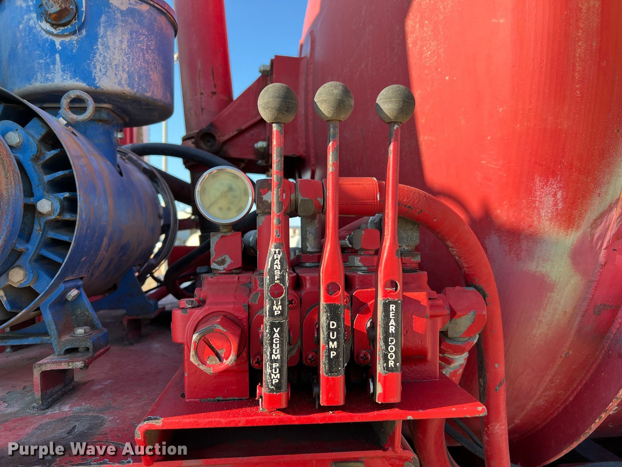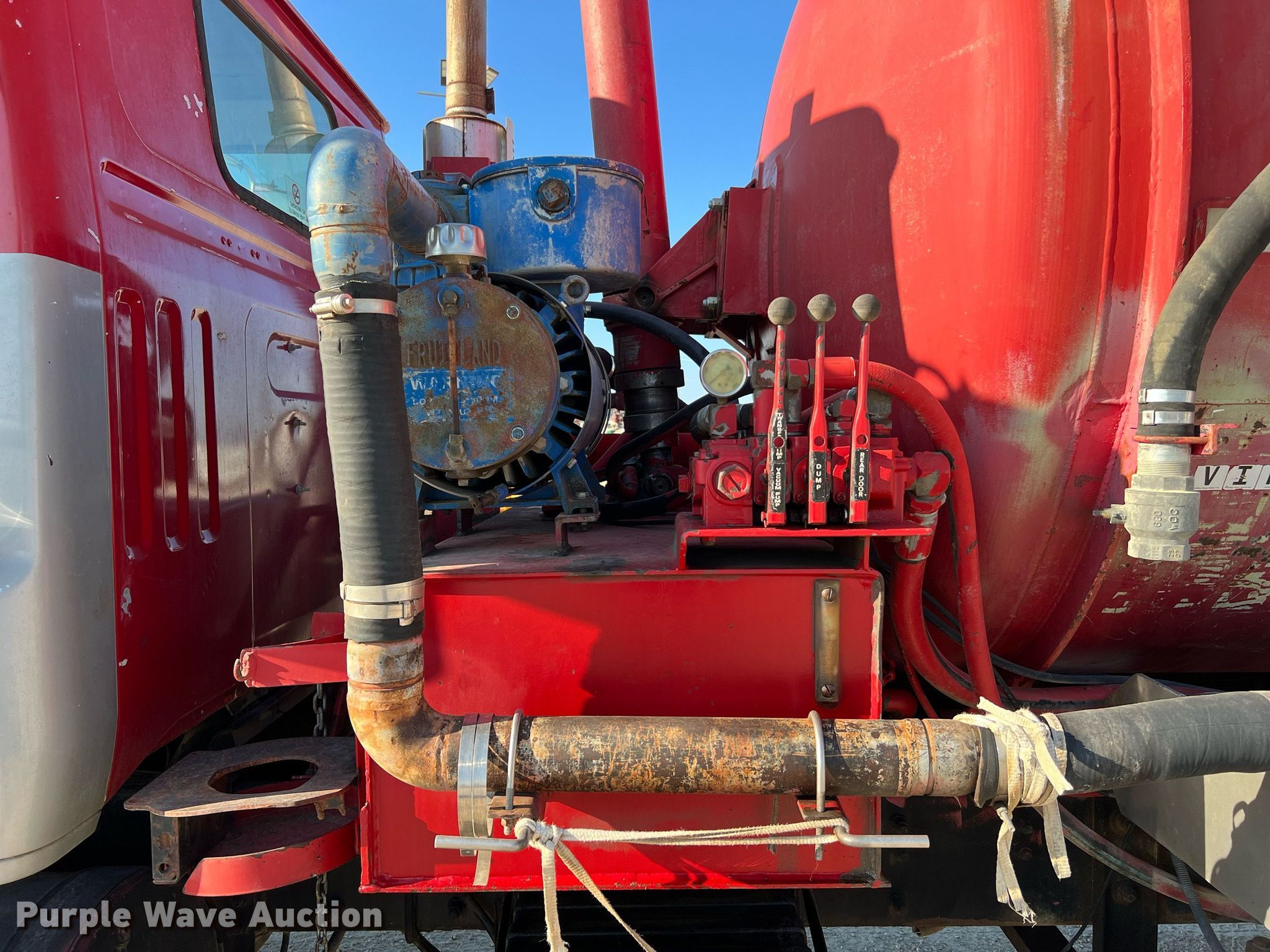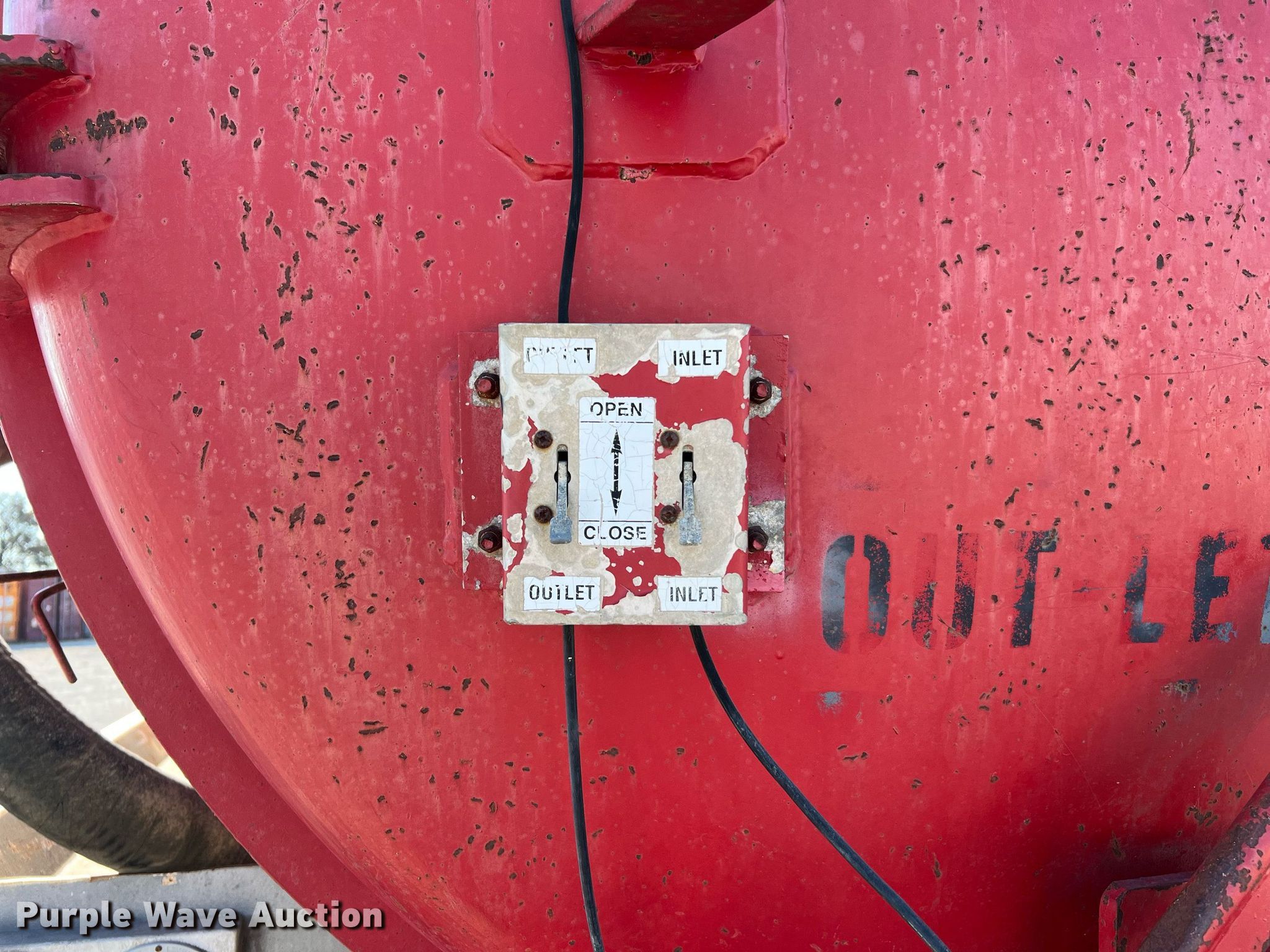 1995 White GMC vacuum truck. Hours: 699 on meter, Miles: Unknown, VIN: 4V2JCBBE5SR832686, Unit #: TR9586. Engine Caterpillar 3306C, Serial: CA9TL01998, Cylinders: 6, Fuel type: Diesel. Transmission Eaton Fuller, Manual, Speed: 10. Chassis Axles: Tandem, Suspension: Spring over walking beam, Brakes: Air, PTO, Wet kit, GVWR: 56,000 lbs. Interior AC, Heat. Features Tank bed 1995 Cusco Fab, Serial: 95-3529, Capacity: 3,150 gallons, Top hatches: 1, Rear outlet: 4", Vacuum pump Fruitland. Tires Front: 315/80R22.5, Rear: 11R22.5. Notes Windshield chipped or cracked, Non-operational odometer. Texas title. Title distribution may be delayed up to 30 days from verification of funds. Bartek Construction. 7196 South WW White Road. San Antonio, TX 78222