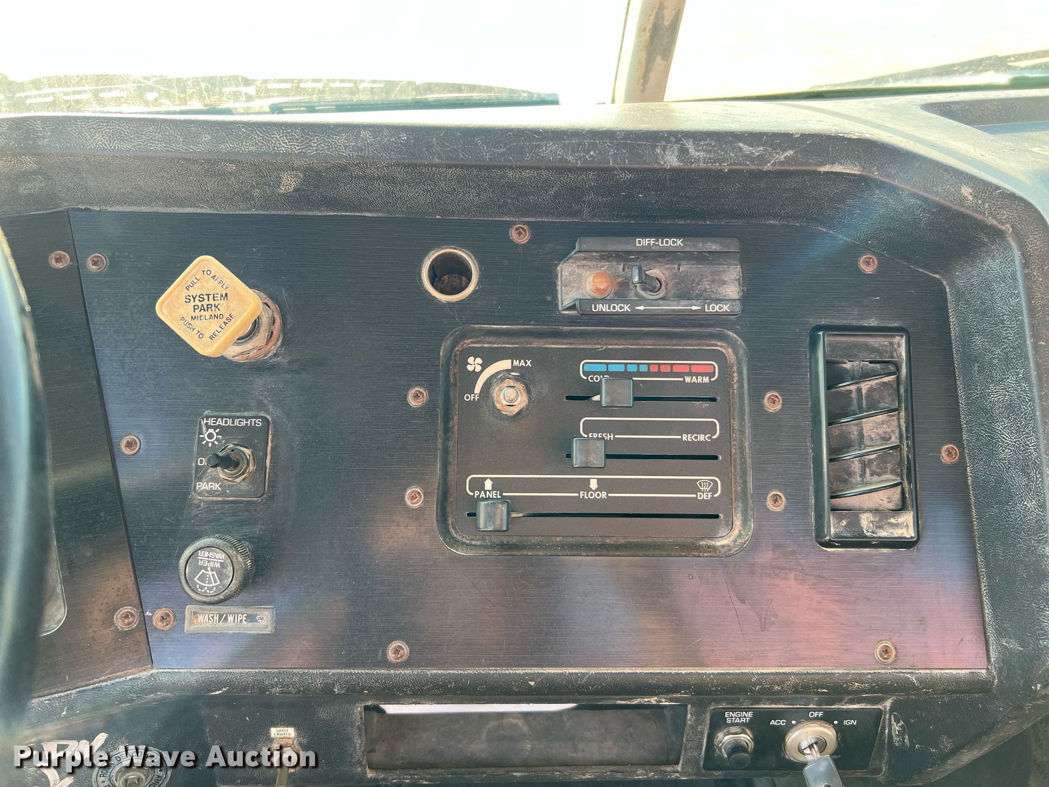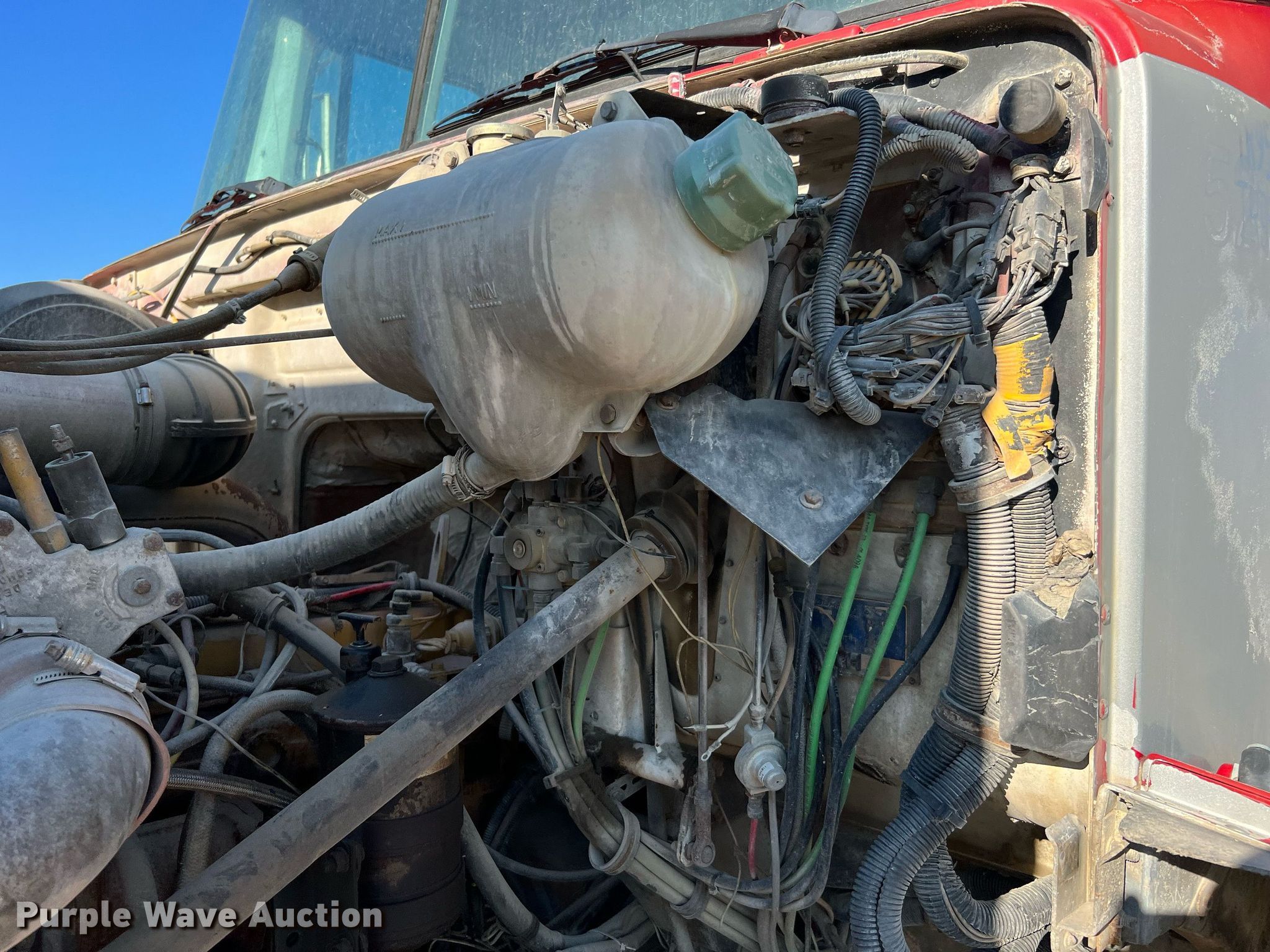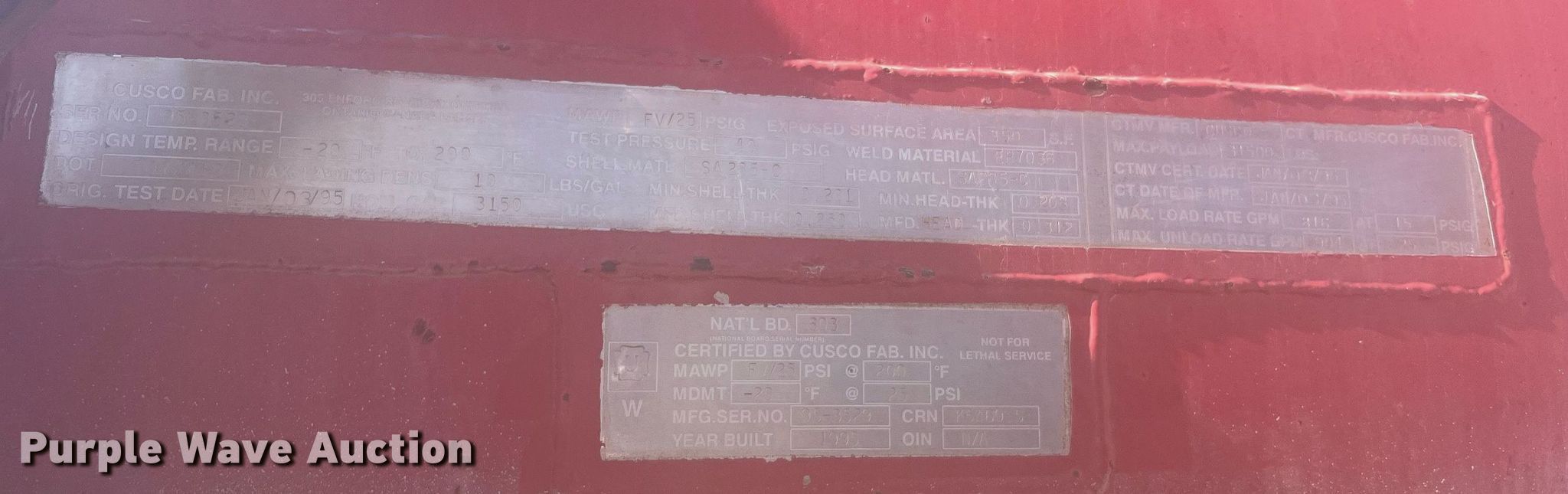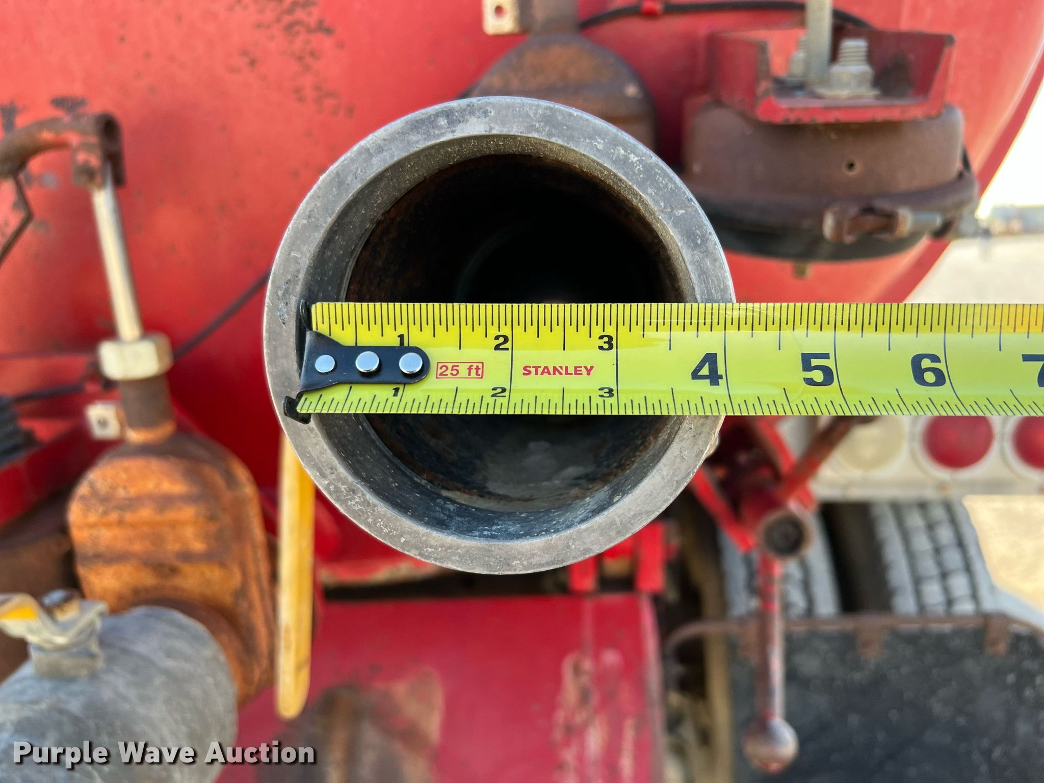1995 White GMC vacuum truck. Hours: 699 on meter, Miles: Unknown, VIN: 4V2JCBBE5SR832686, Unit #: TR9586. Engine Caterpillar 3306C, Serial: CA9TL01998, Cylinders: 6, Fuel type: Diesel. Transmission Eaton Fuller, Manual, Speed: 10. Chassis Axles: Tandem, Suspension: Spring over walking beam, Brakes: Air, PTO, Wet kit, GVWR: 56,000 lbs. Interior AC, Heat. Features Tank bed 1995 Cusco Fab, Serial: 95-3529, Capacity: 3,150 gallons, Top hatches: 1, Rear outlet: 4", Vacuum pump Fruitland. Tires Front: 315/80R22.5, Rear: 11R22.5. Notes Windshield chipped or cracked, Non-operational odometer. Texas title. Title distribution may be delayed up to 30 days from verification of funds. Bartek Construction. 7196 South WW White Road. San Antonio, TX 78222