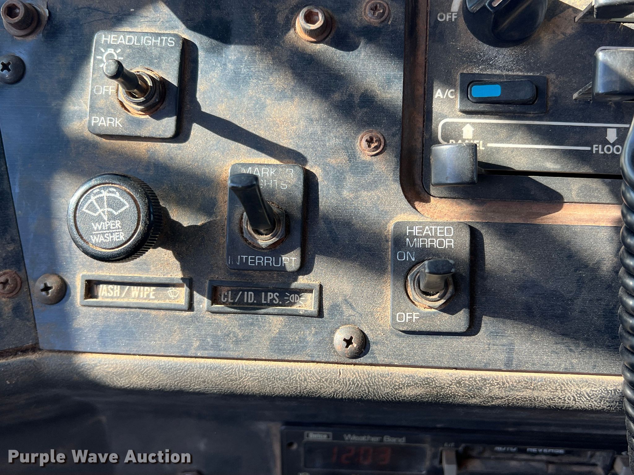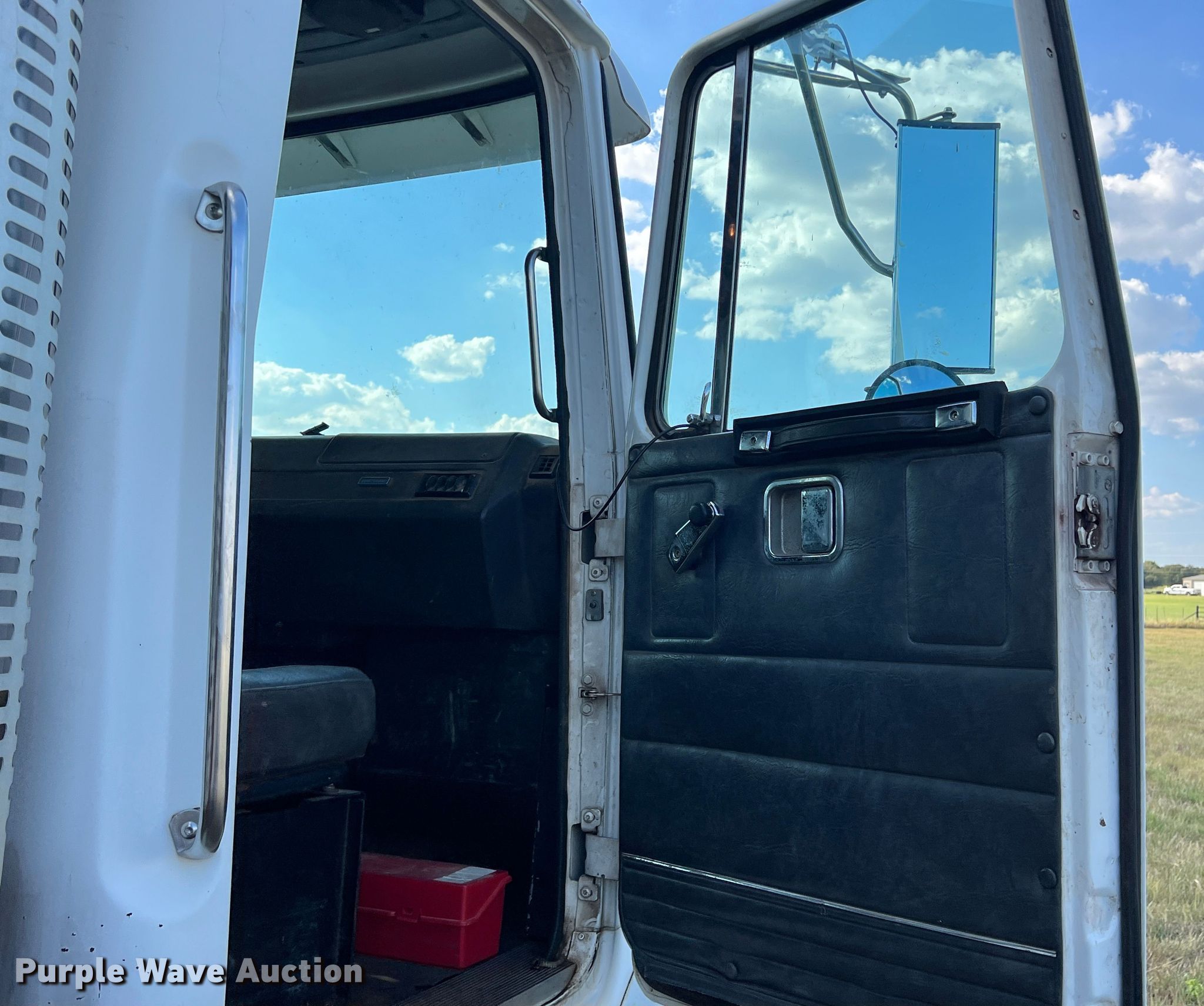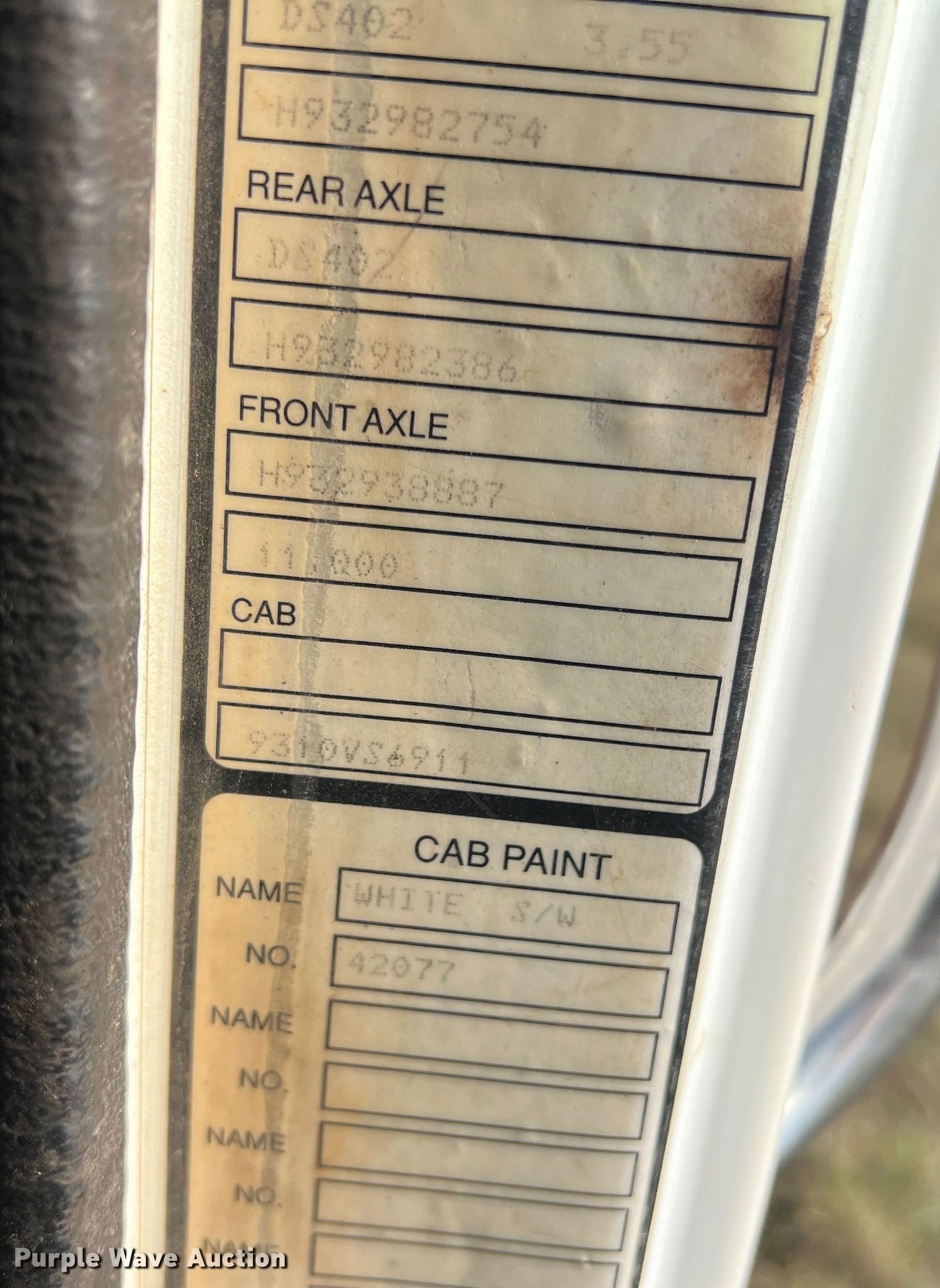 1994 White GMC WG dump truck. Miles: 74 on odometer Actual miles unknown, VIN: 4V1JDBJF1RR827880. Engine Cummins N14, Displacement: 14.0L, Cylinders: 6, Fuel type: Diesel, HP: 330. Transmission Eaton Fuller , Manual, Speed: 9. Chassis Axles: Tandem, Differential lock: Inter-axle, Suspension: Spring, Brakes: Air, PTO, GVWR: 49,000 lbs FAWR: 11,000 lbs, IAWR: 19,000 lbs, RAWR: 19,000 lbs. Interior AC, Heat, Heated mirrors. Features Dump bed SEI HST-14, Capacity: 14 cu.yd., 15' L x 8' W, Side height: 43", Bed type: Steel, Roll tarp, Ram: Single. Tires Size: 11R24.5. Notes Non-operational fuel gauge. Texas title. Title distribution may be delayed up to 14 days from verification of funds. 1275 Finney Drive. Weatherford, TX 76085