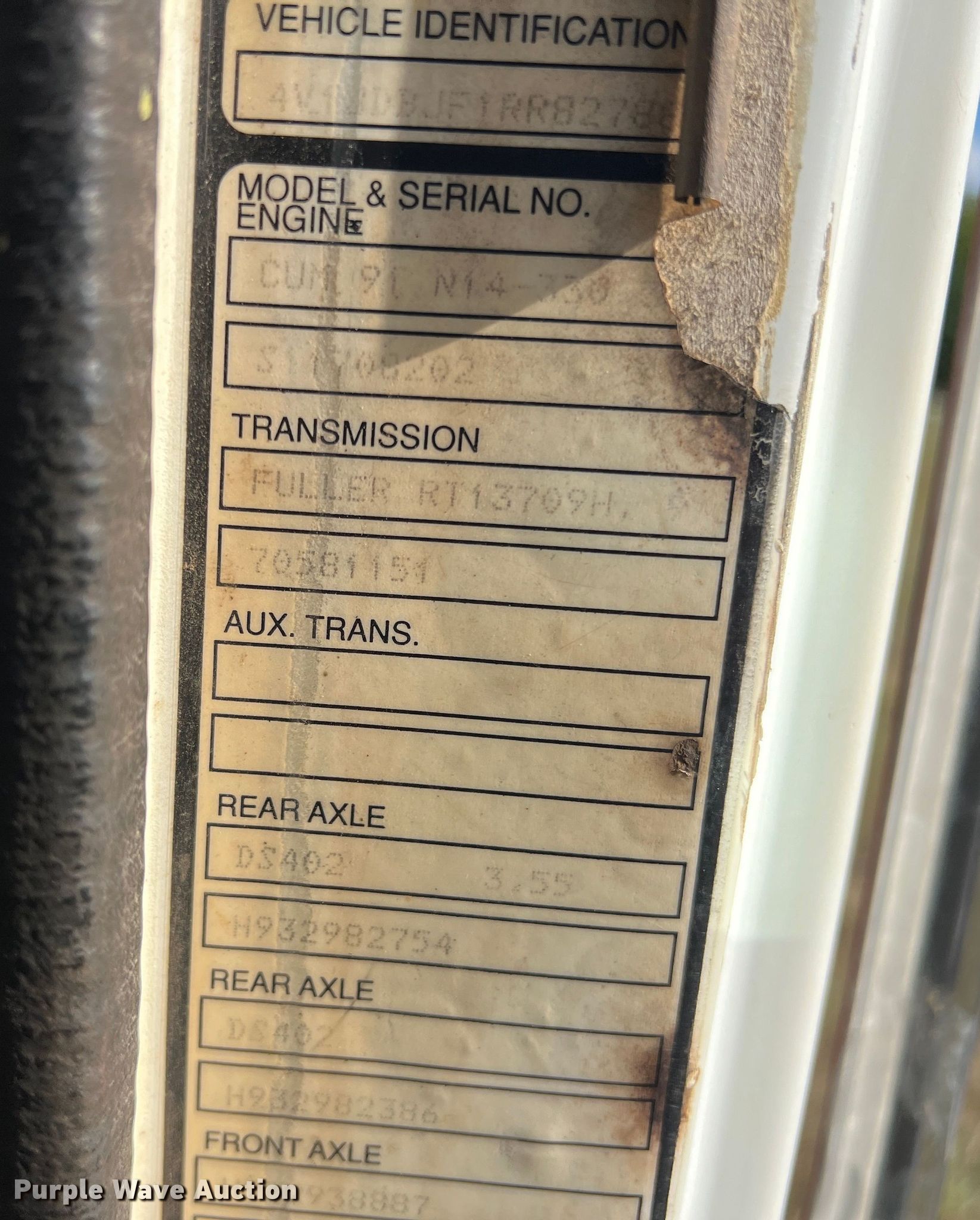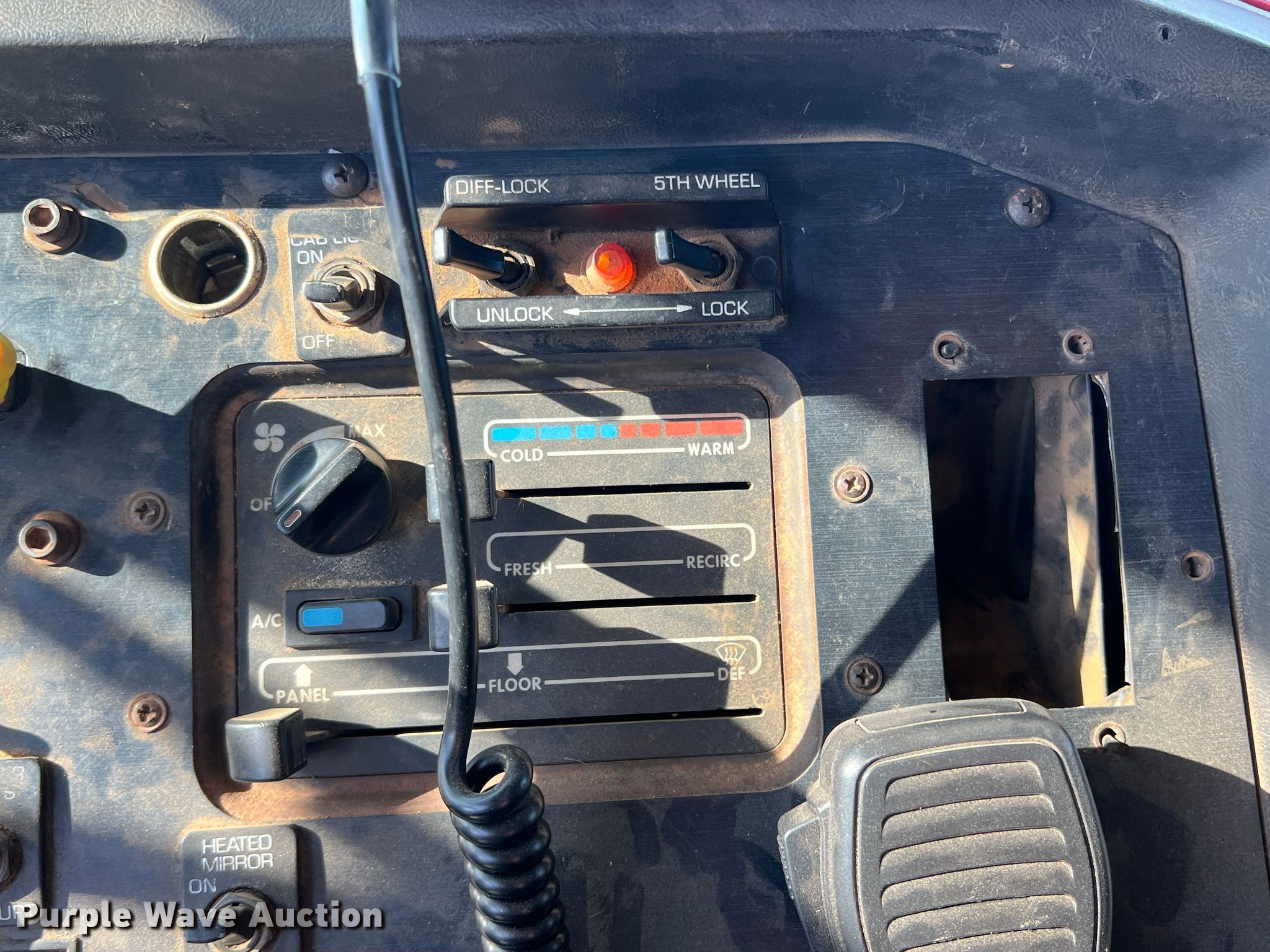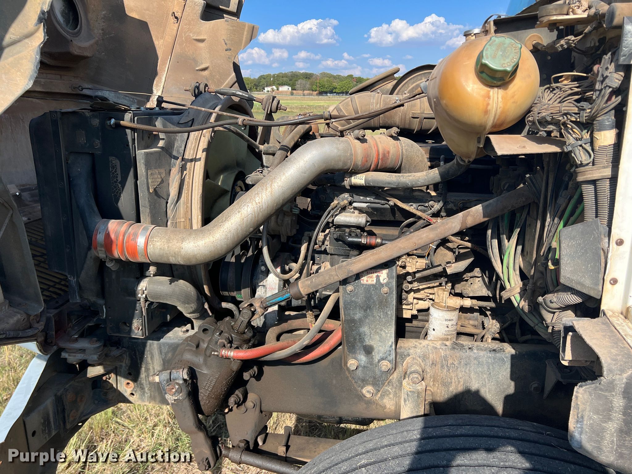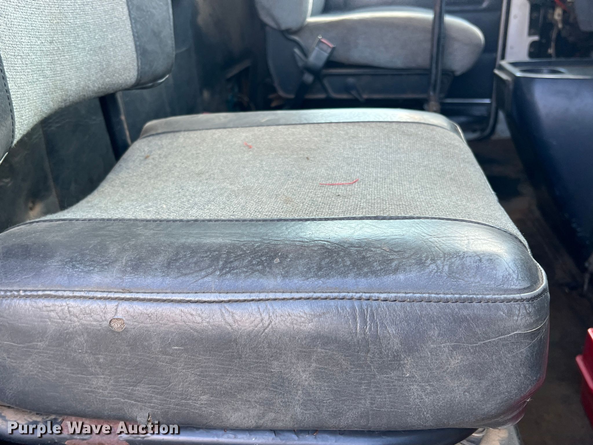 1994 White GMC WG dump truck. Miles: 74 on odometer Actual miles unknown, VIN: 4V1JDBJF1RR827880. Engine Cummins N14, Displacement: 14.0L, Cylinders: 6, Fuel type: Diesel, HP: 330. Transmission Eaton Fuller , Manual, Speed: 9. Chassis Axles: Tandem, Differential lock: Inter-axle, Suspension: Spring, Brakes: Air, PTO, GVWR: 49,000 lbs FAWR: 11,000 lbs, IAWR: 19,000 lbs, RAWR: 19,000 lbs. Interior AC, Heat, Heated mirrors. Features Dump bed SEI HST-14, Capacity: 14 cu.yd., 15' L x 8' W, Side height: 43", Bed type: Steel, Roll tarp, Ram: Single. Tires Size: 11R24.5. Notes Non-operational fuel gauge. Texas title. Title distribution may be delayed up to 14 days from verification of funds. 1275 Finney Drive. Weatherford, TX 76085