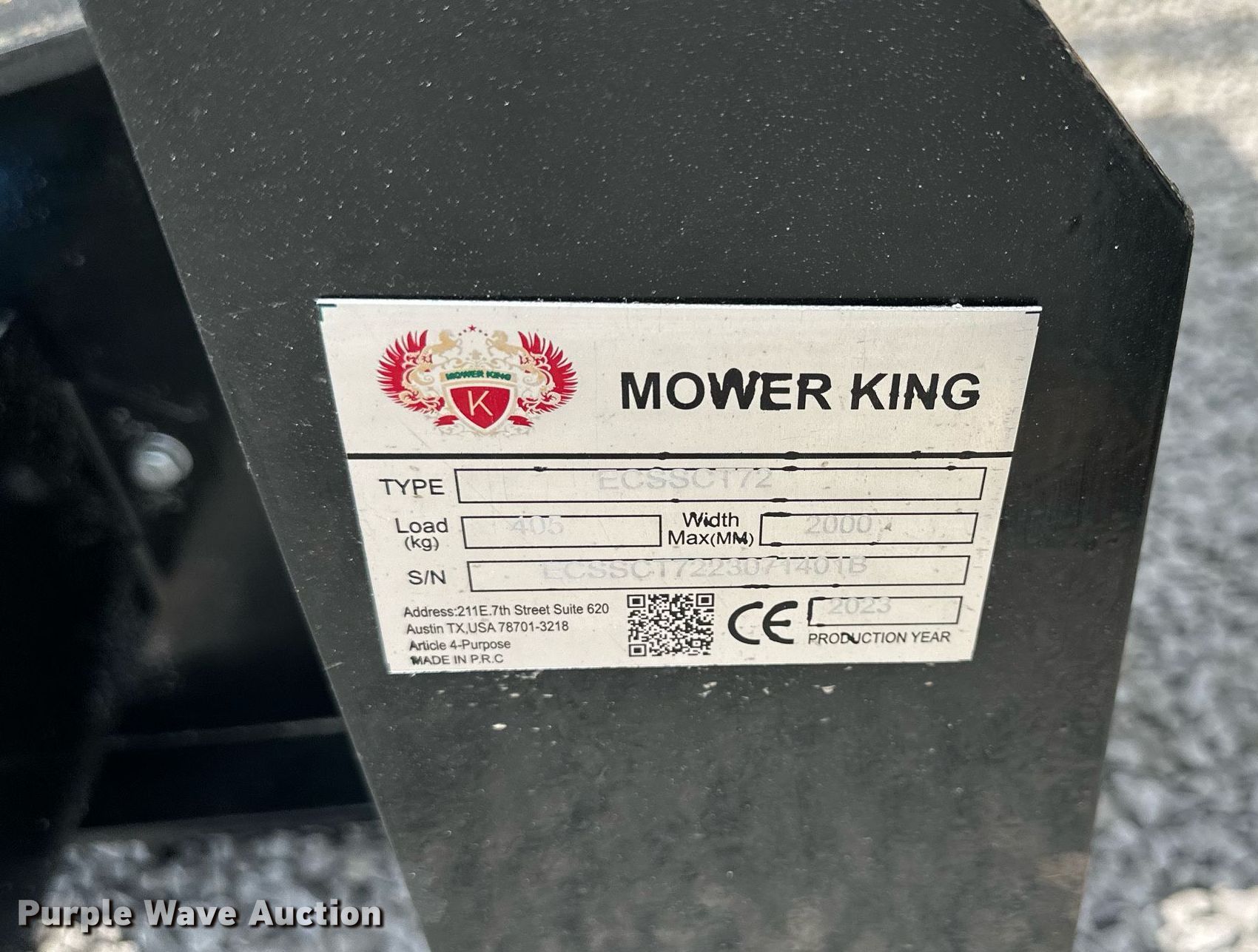 Purple Wave is selling a used Skid Steer Attach. in Kansas. This item is a 2023 Mower King ECSSCT72 skid steer trencher with the following: Serial: ECSSCT7223071401B, Width: 5", Length: 54", Unused