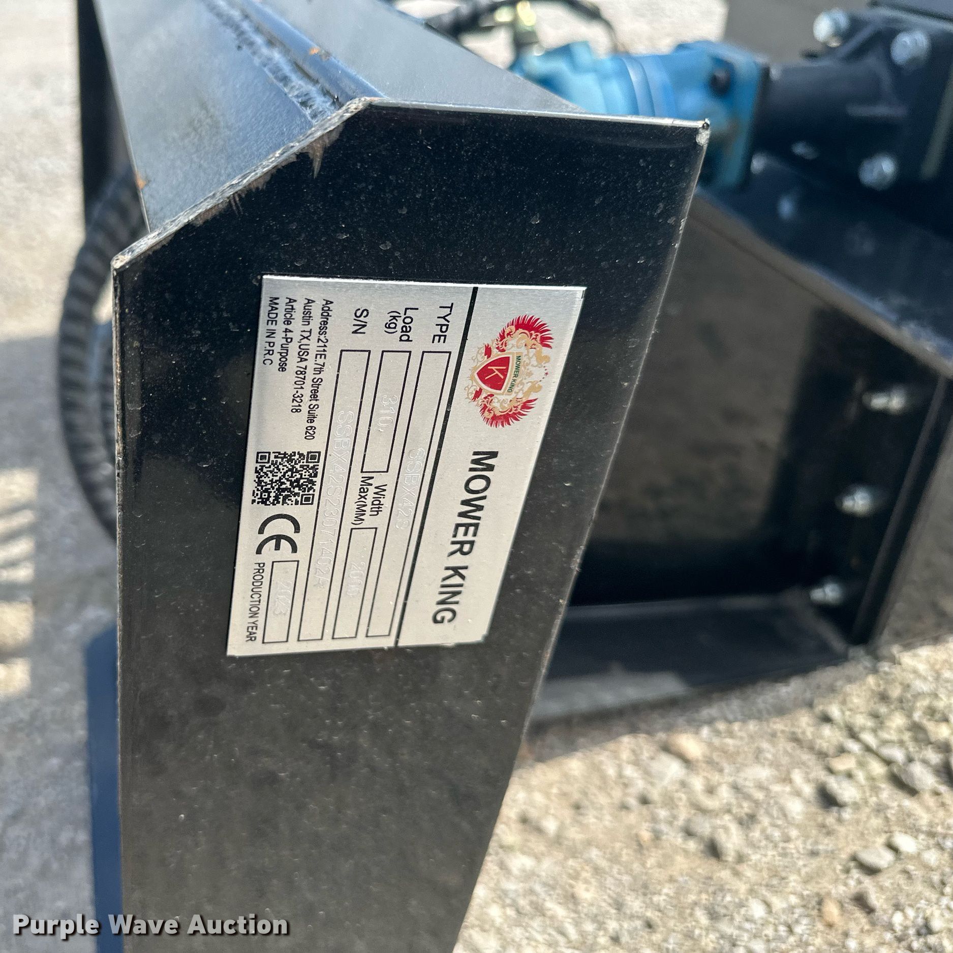 Purple Wave is selling a used Skid Steer Attach. in Kansas. This item is a 2023 Mower King SSBX42S skid steer wood chipper with the following: Serial: SSBX42S23071402A