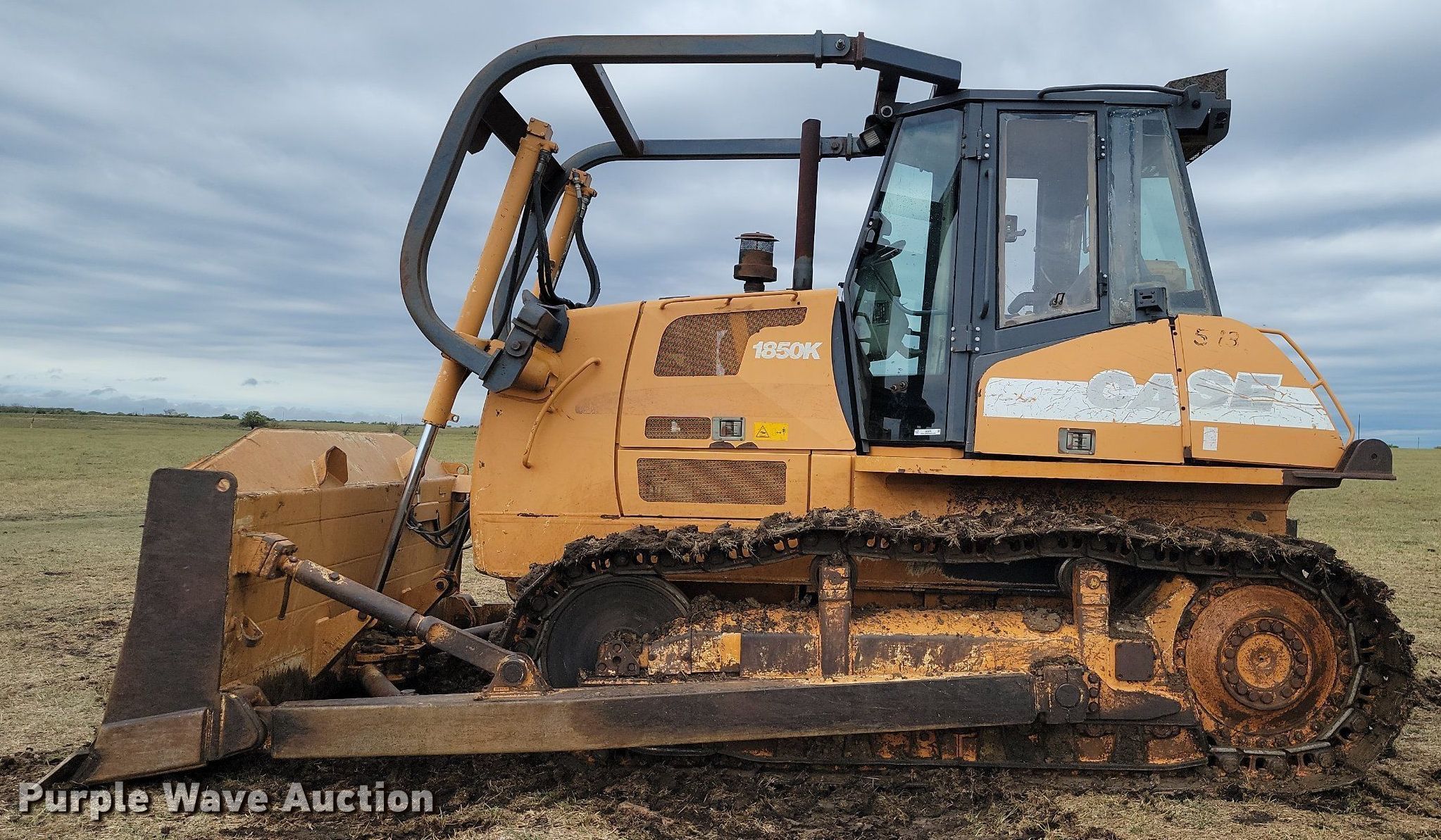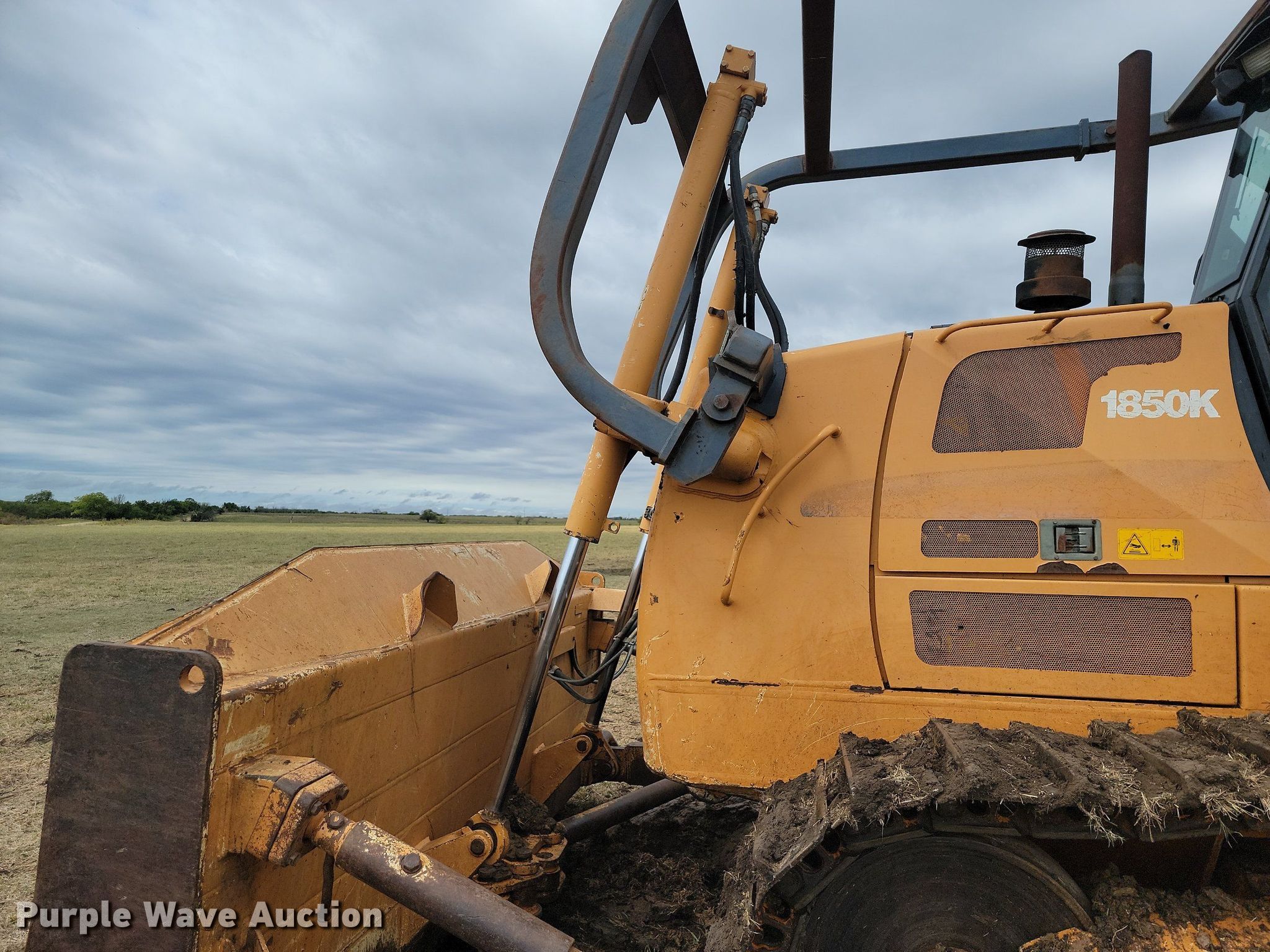Case 1850K dozer. Hours: 4,219 on meter. Engine Cylinders: 6, Fuel type: Diesel. Transmission Hydrostatic. Operators station Enclosed cab, AC, Heat, Electronic Monitoring System panel, Steering: Joystick. Features Sweeps, Dozer blade Type: 6-way, Width: 134". Tracks Width: 22", Grouser pads: Single, Bottom rollers: 7, Track guards. Andrew King. Yates Center, KS 66783