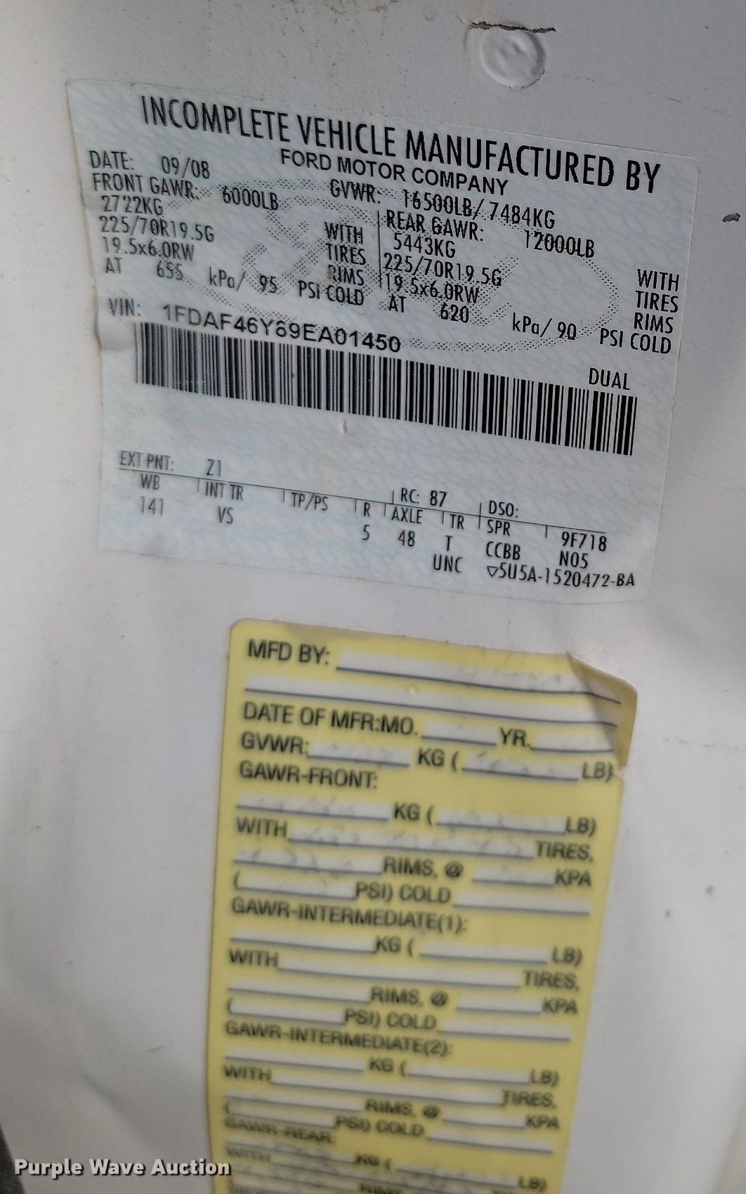 2009 Ford F450 Super Duty XL bucket truck. Miles: 187,018 on odometer, VIN: 1FDAF46Y89EA01450. Engine Ford, Displacement: 6.8L V10 SOHC, Cylinders: 10, Fuel type: Gas. Transmission Automatic. Chassis Axles: Single, Suspension: Spring, Brakes: Hydraulic, PTO. Interior AC, Heat, Cruise control. Features Bed Altec, Serial: 11411624, 137" L x 8' W, Compartments: 6, Boom 2009 Altec, Serial: 172114, Maximum lift capacity: 300 lbs, Maximum lift height: 30.6', Boom type: Articulating, Telescopic, Man basket, Boom controls Ground, Platform/ basket, Remote control, Power Invertor. Tires Size: 225/70R19.5. Notes Dash warning indicator: ABS, Brake. Oklahoma title. Title distribution may be delayed up to 14 days from verification of funds. Claremore, OK 74018