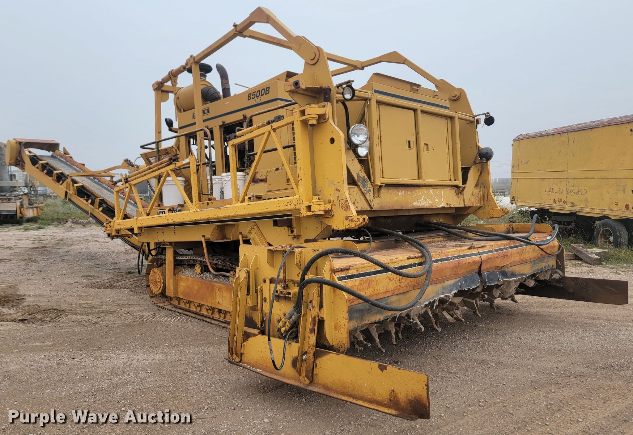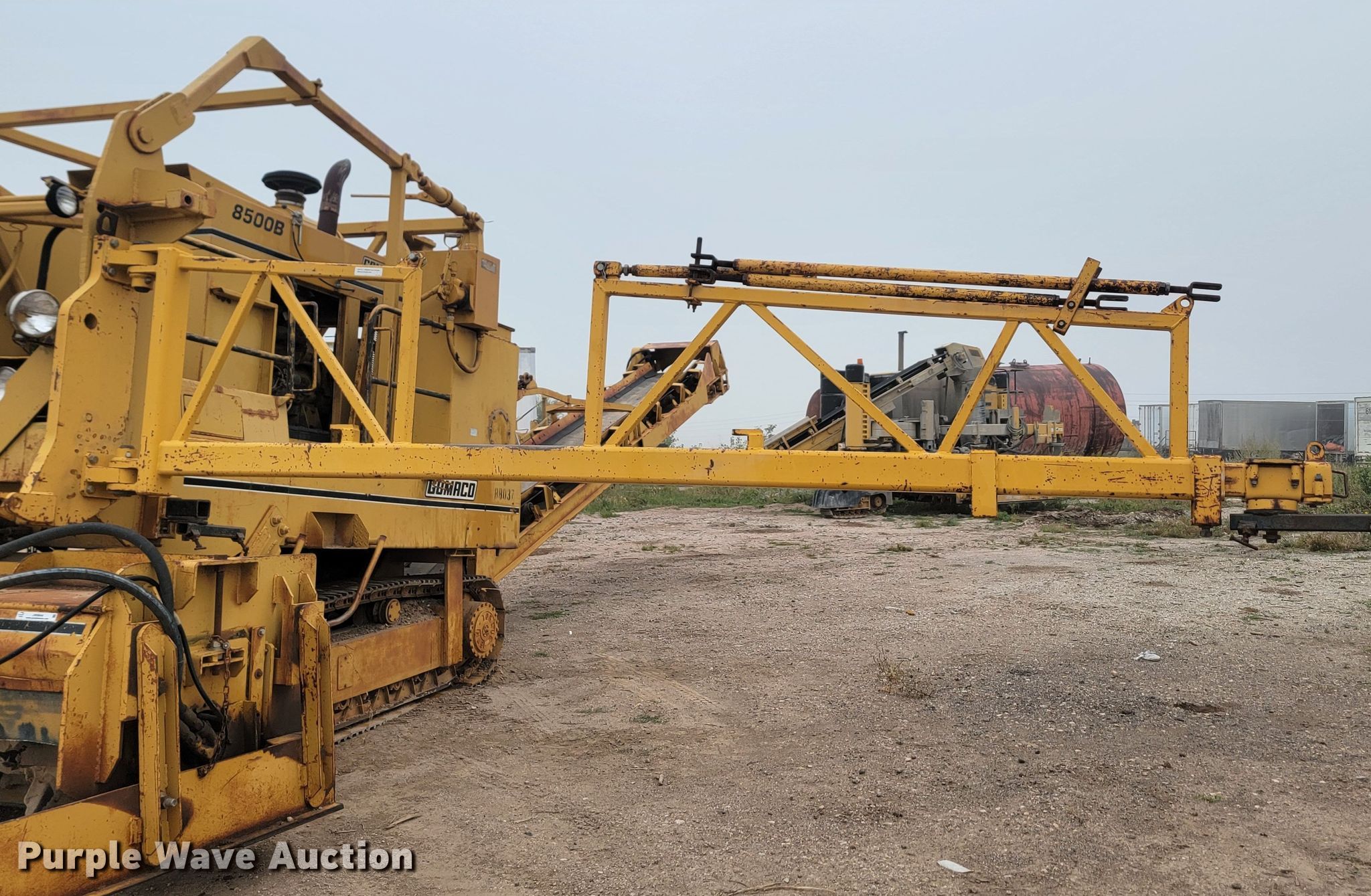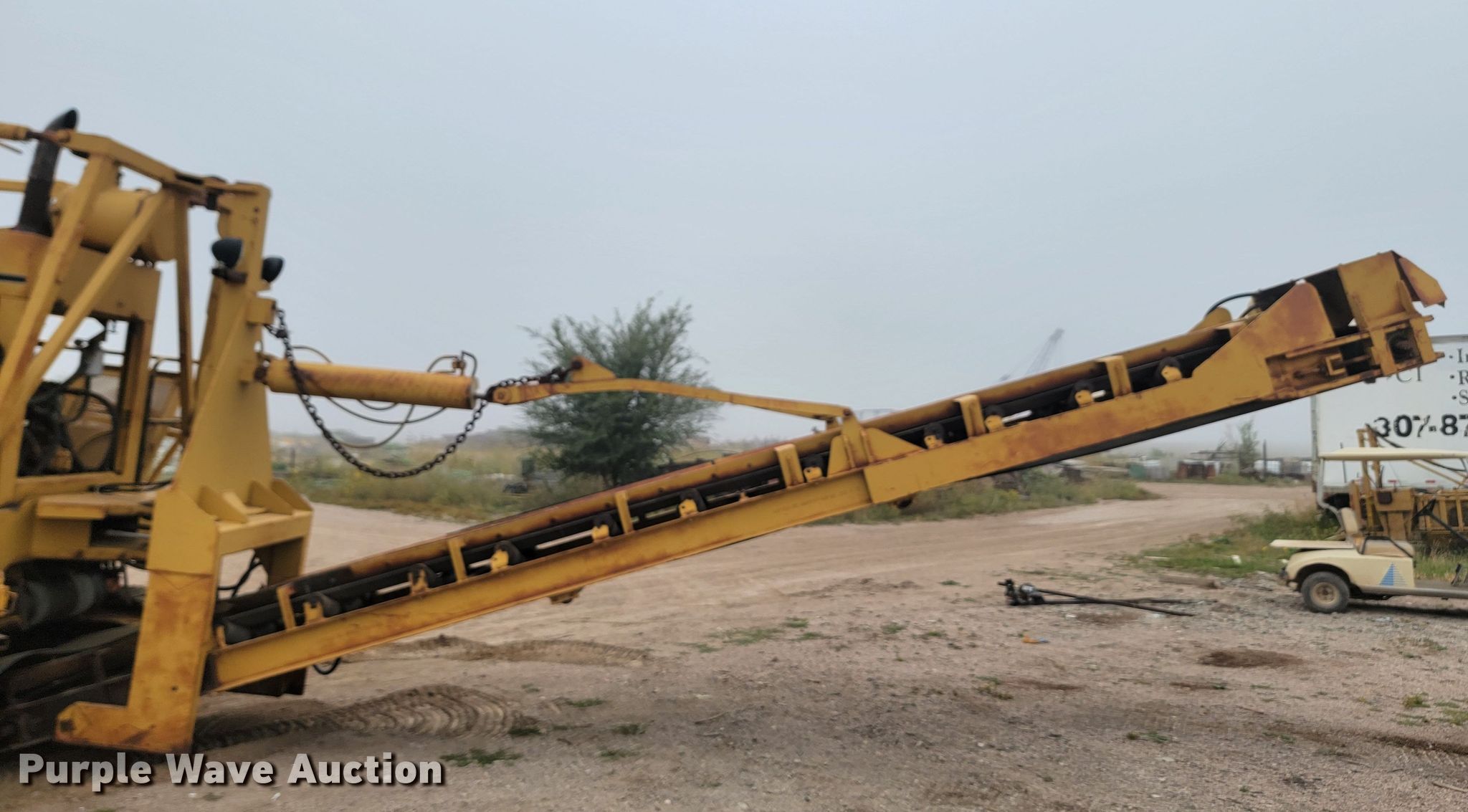 Gomaco 8500D trimmer. Hours: 3,846 on meter, Serial: MCI3255-28. Engine Detroit Diesel B671, Cylinders: 6, Fuel type: Diesel. Transmission Hydrostatic. Features 25' L conveyor, 30" W belt, Hydraulic lift and swing, 15' W Head, (3) sensors and cables. Tracks Width: 13", Steel. Notes Additional 11' W head, Head engage and disengage cable broken. Heavy Construction. 4101 Deadwood Avenue North. Rapid City, SD 57709