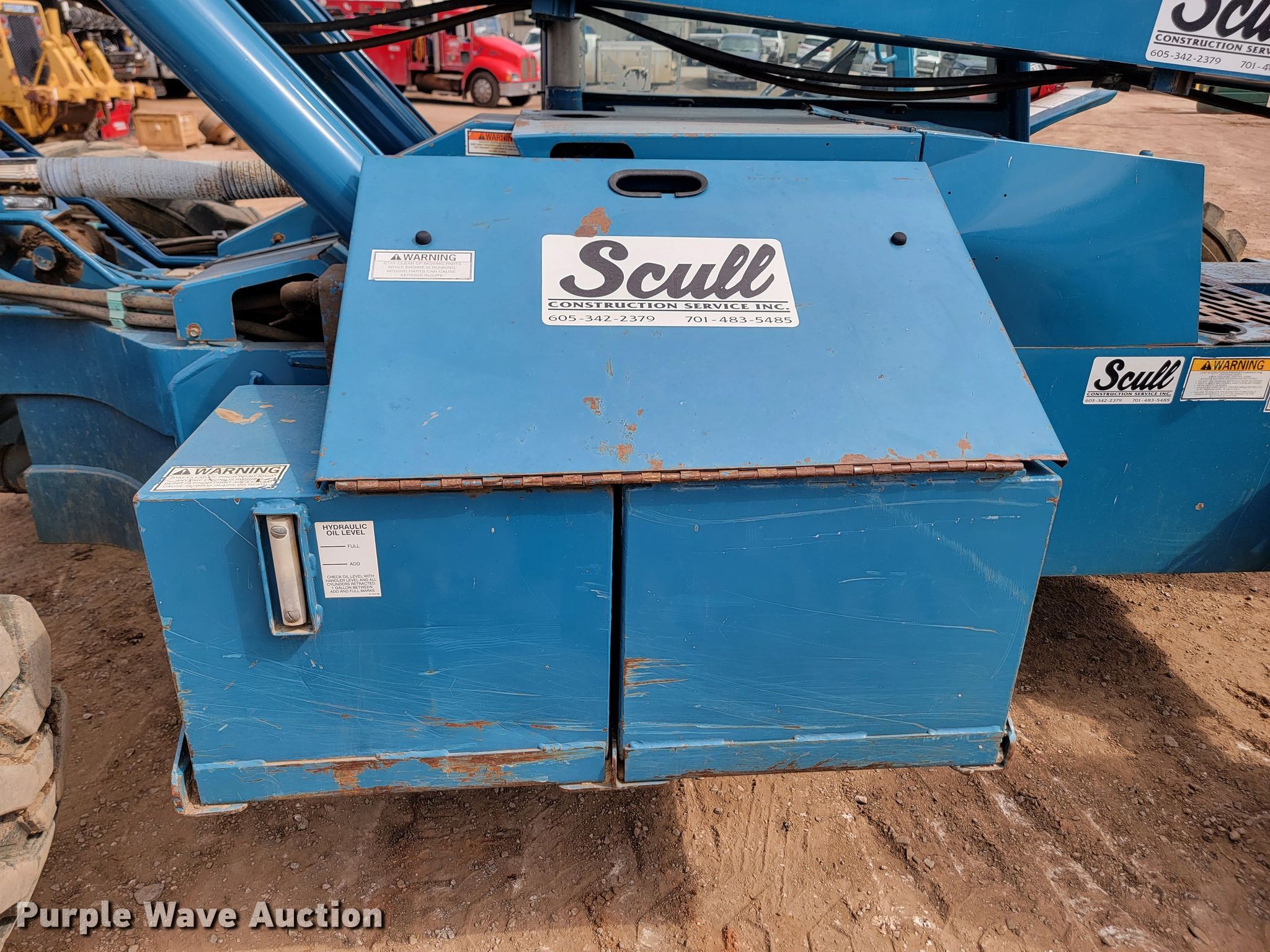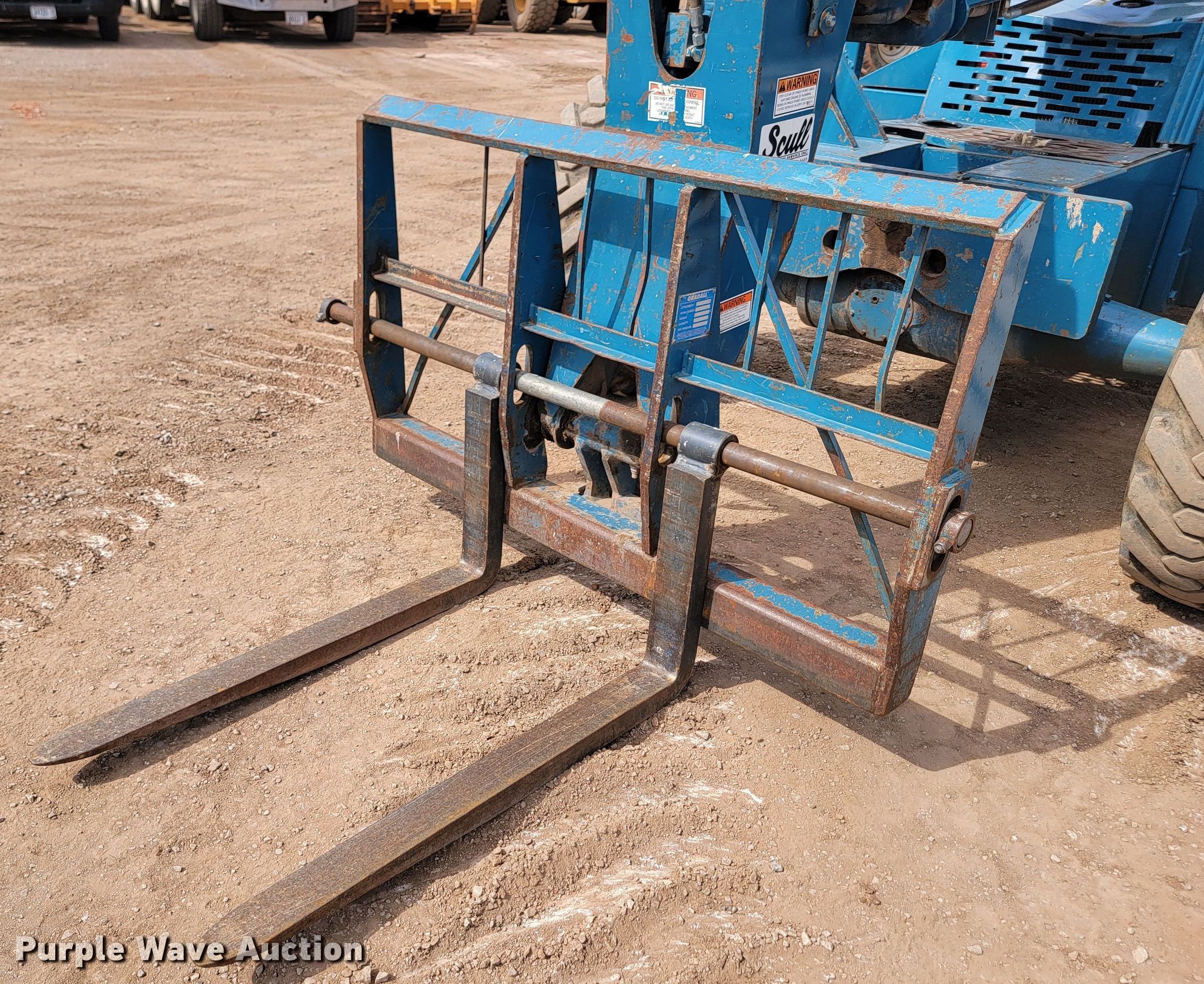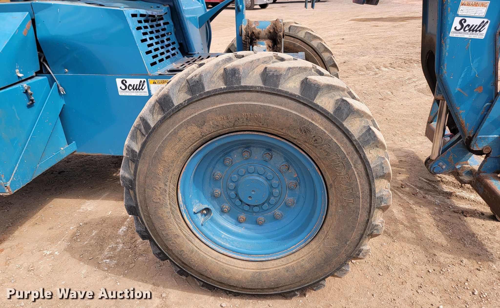 1999 Gradall 534D-9 telehandler. Hours: 5,368 on meter, Serial: 0544604, Unit #: SE96. Engine Cylinders: 4, Fuel type: Diesel. Transmission Hydrostatic, Four wheel drive. Operators station Canopy. Features Maximum lift capacity: 9,000 lbs, Maximum lift height: 40', Boom stages: 3, Fork length: 48", Hydraulic leveling, Quick attach: Manual. Tires Size: 13.00-24, Foam filled. Scull Construction. 803 Industrial Avenue. Rapid City, SD 57702