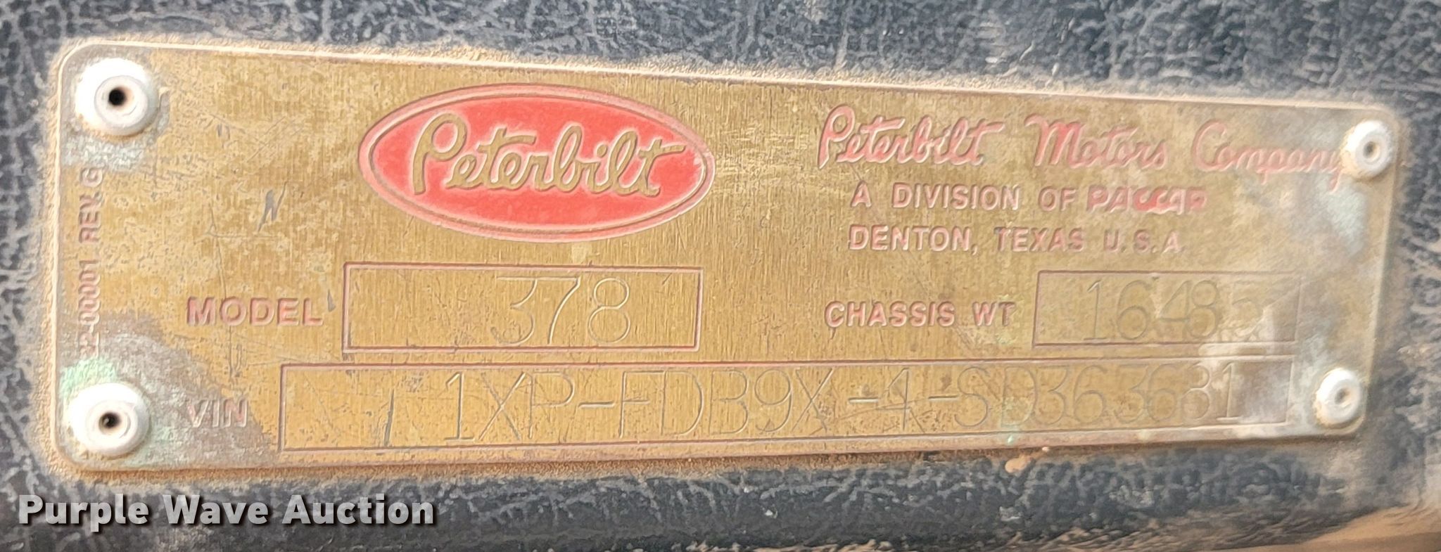 Purple Wave is selling a used Truck Tractor in South Dakota. This item is a 1995 Peterbilt 378 semi truck with the following: Miles: 1,103,898 on odometer, VIN: 1XPFDB9X4SD363681, Unit #: 902-17