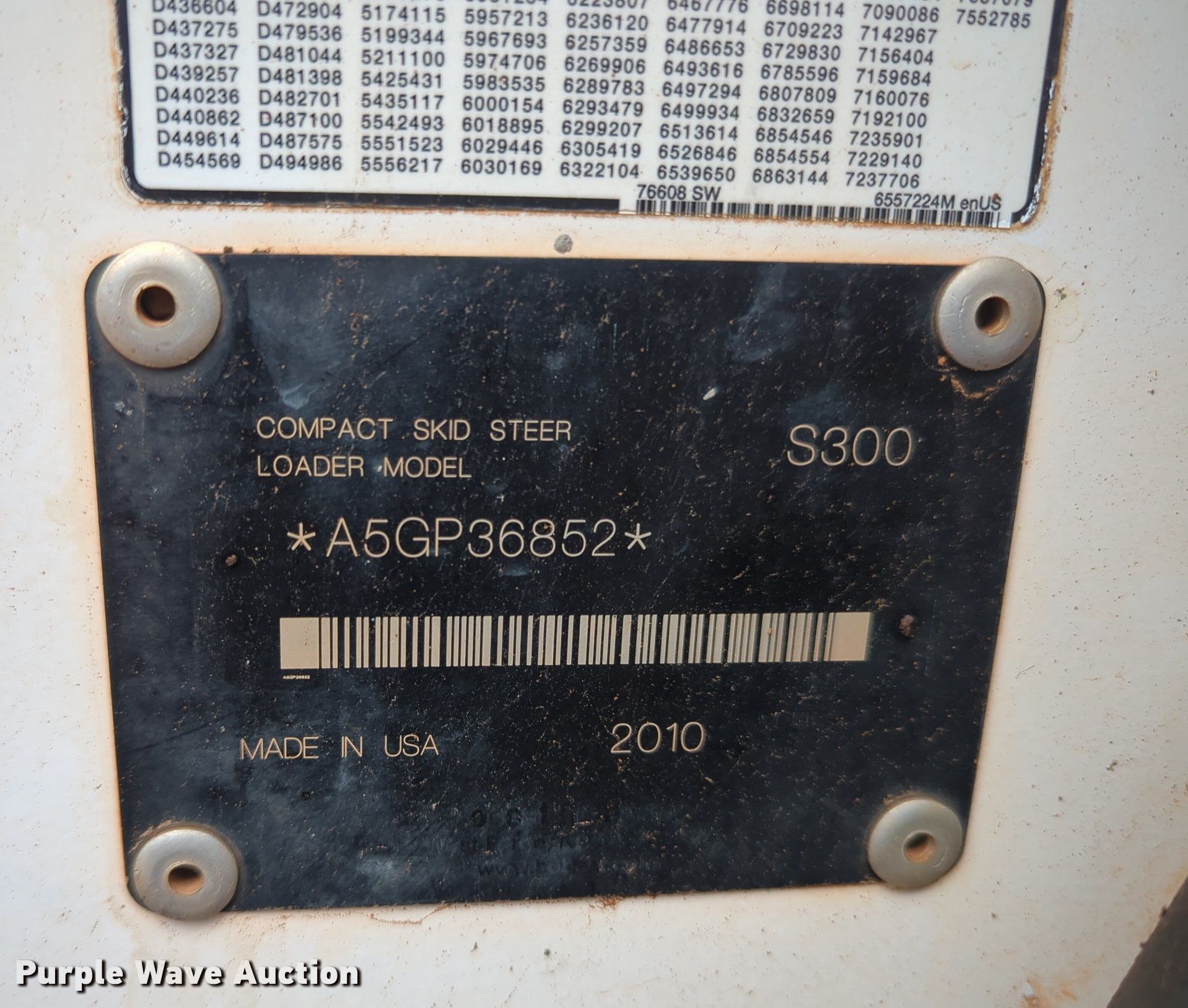 Purple Wave is selling a used Skid Steer Loader in Oklahoma. This item is a 2010 Bobcat S300 skid steer loader with the following: Hours: 5,252 on meter, Serial: A5GP36852